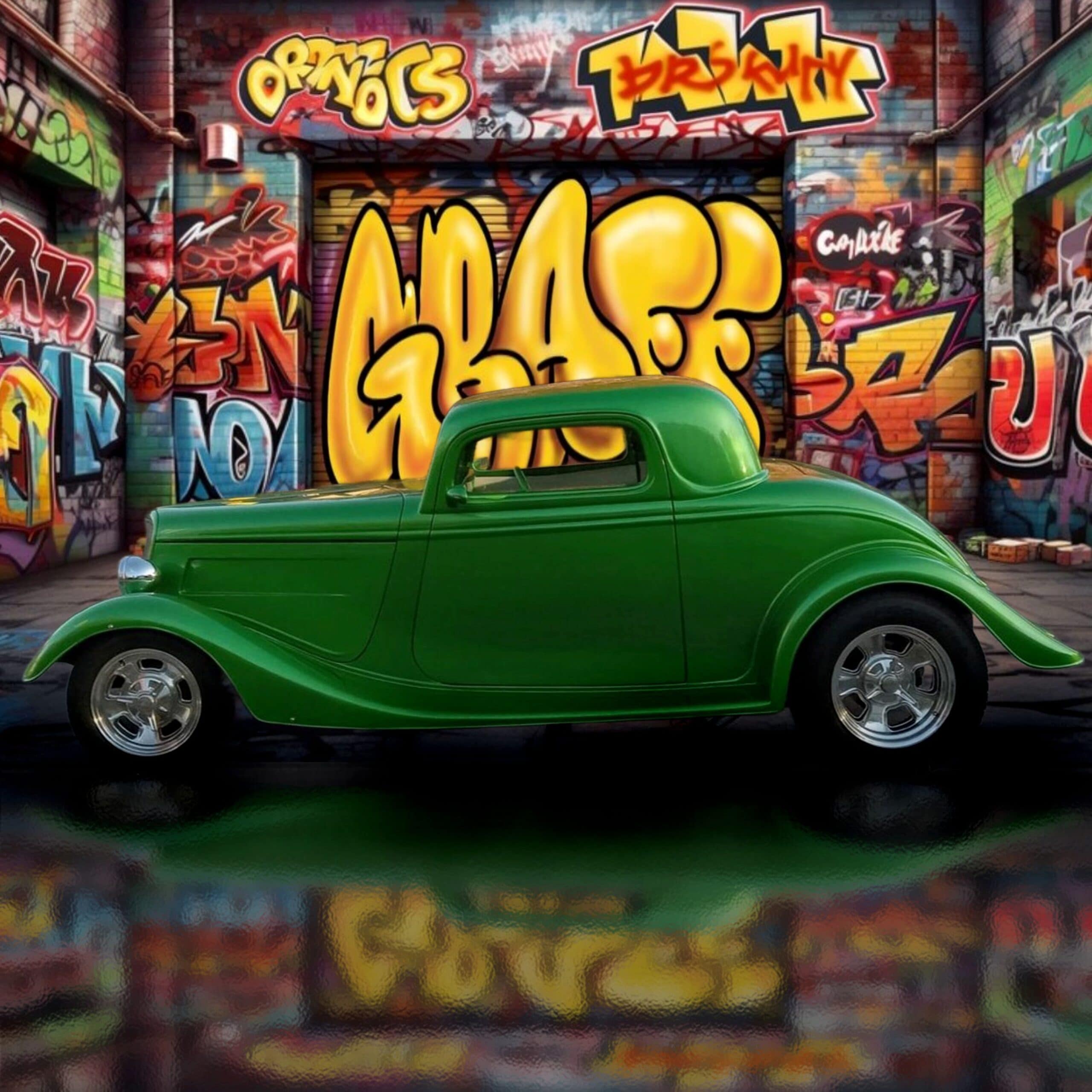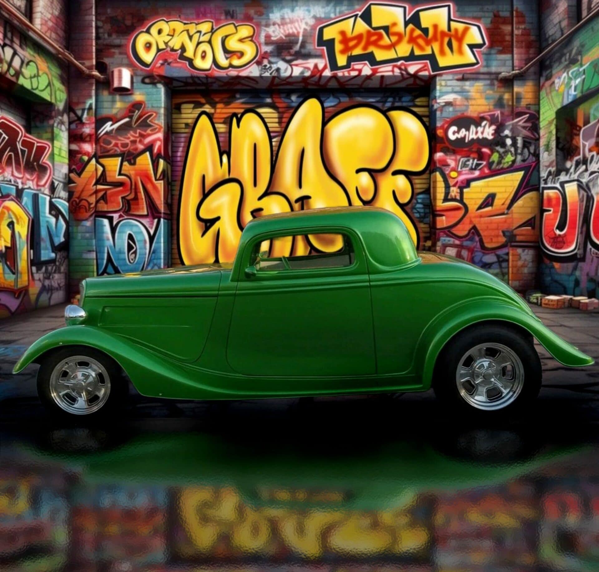 Tout s’effiloche… Pas d’un coup… Mais par érosion, comme une peinture qui s’écaille sur une carrosserie oubliée. Et c’est là que mon histoire ci-après sur ce Hot Rod vert devient intéressante, parce que tu peux utiliser cette disparition comme moteur narratif et raconter : un monde où les Hot Rods deviennent des reliques, où les derniers passionnés sont des gardiens de mythes, où la culture mécanique survit comme une secte, où l’IA, paradoxalement, devient le dernier témoin de ce qui fut, où un Hot Rod devient un symbole de résistance culturelle… Une histoire drôle, tragique, absurde, prophétique, nostalgique, tout ça à la fois… Un tremplin est parfait, parce que le Hot Rod n’est pas le sujet, c’est le prétexte, le cheval de Troie, le véhicule (littéralement) pour causer “entre potes” de la fin des cultures matérielles, de la dissolution des communautés, de la perte des mythes, de la transition vers un monde numérique sans mémoire…. Tout ça forme un thème qui peut devenir énorme…