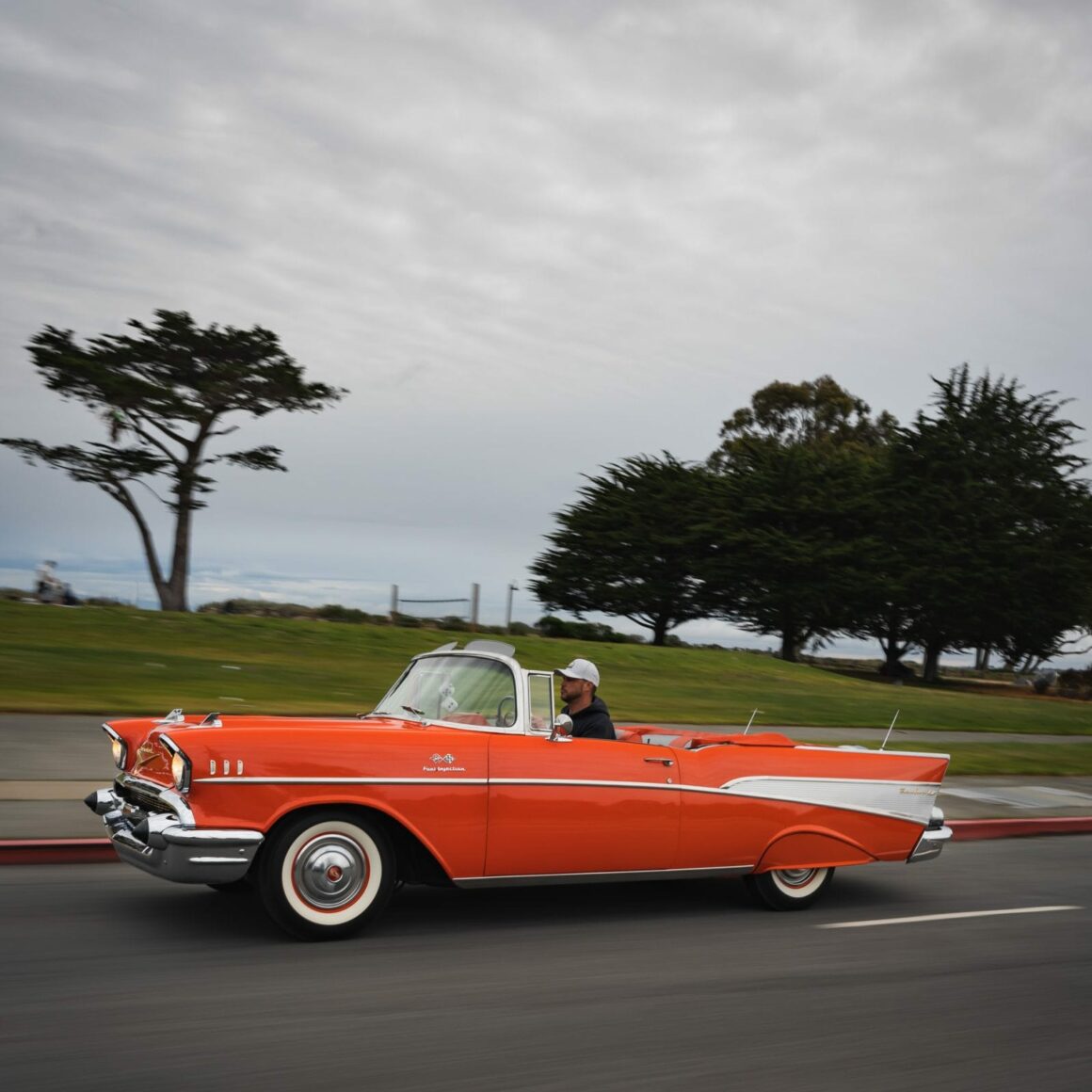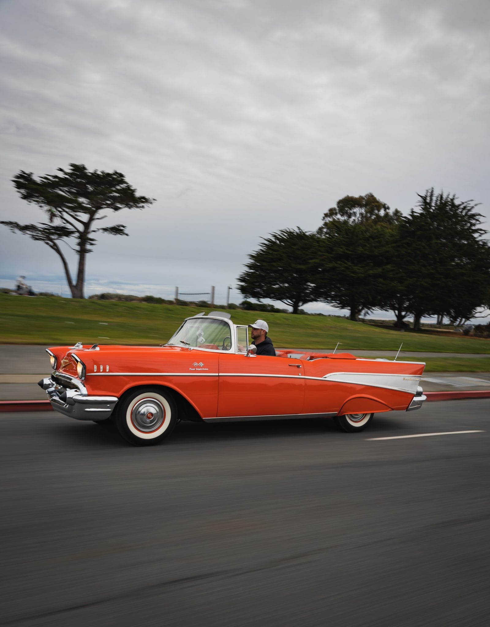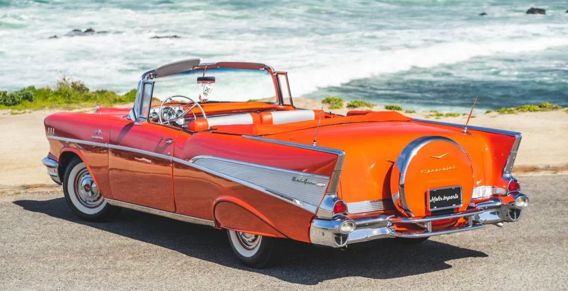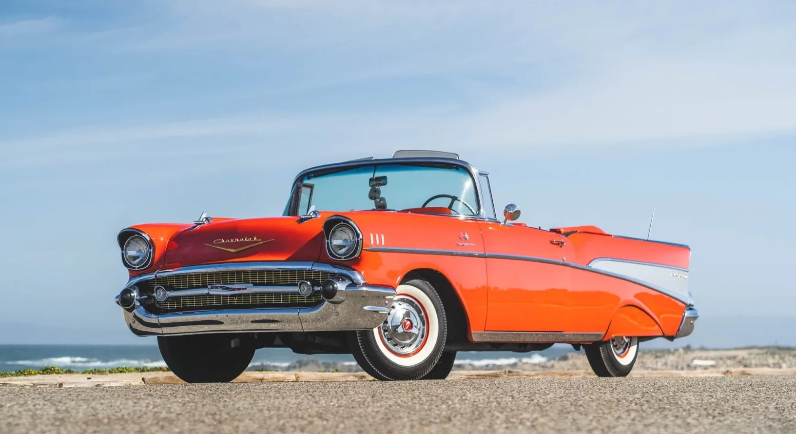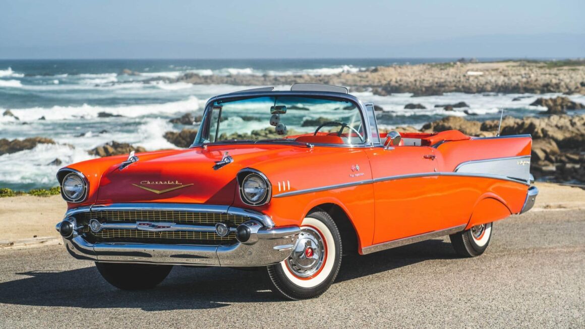 Chevrolet Bel Air Fuelie cabriolet 1957 – Fabriquées entre 1955et 1957 – Il n’existe que 68 cabriolets Fuelie 250ci de 1957) – Prix à l’origine: 4.142 $ Évaluation 2023 : entre 80.000 $ et 165.000 $ pour les cabriolets Fuelie – Emplacement du numéro de châssis: Plaque sur le montant charnière de la porte avant gauche – Emplacement du numéro de moteur: Tampon à l’avant du bloc sous la culasse droite – Infos club : Tri Chevy Association www.trichevy.org