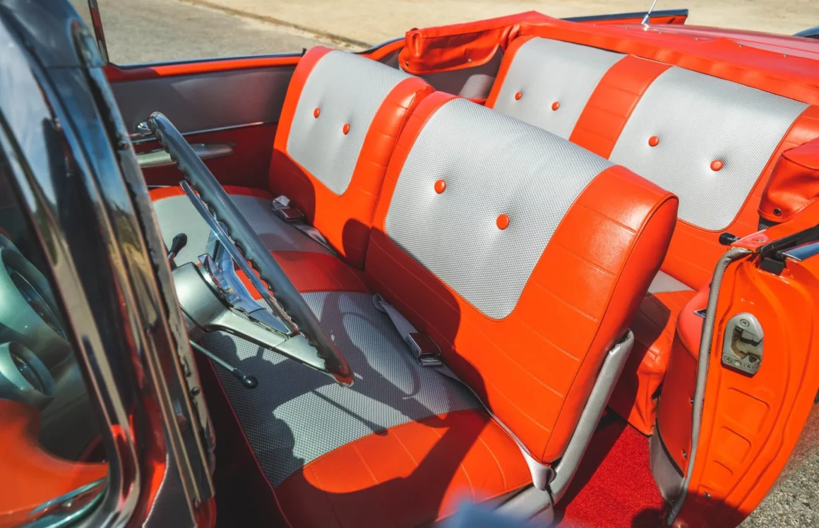 Inutile de vous écrire que l’un des deux à fait une très mauvaise affaire, quoiqu’il avait besoin de 10.000 $ cash. Lorsqu’on demande à Bill Jones comment il se sent après avoir conclu une telle affaire, il répond : “Je ne me souviens plus des détails, mais j’avais peur qu’il change d’avis. Je regardais sans cesse dans le rétroviseur croyant qu’il allait me poursuivre pour annuler, j’étais incrédule d’avoir enfin une Bel Air Cabrio de 1957”. Diverses options rares dans cette Chevy comprenaient un cendrier qui se vide automatiquement, deux antennes électriques, les sièges réglables électriques et aussi les options catalogue pour 1957.