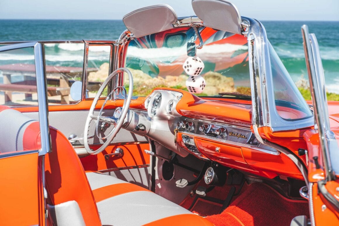 Les autres caractéristiques comprennent la direction assistée, la capote électrique, un distributeur de mouchoirs (et le cendrier qui se vide tout seul), une horloge incrustée dans le tableau de bord et la radio… Sur les 1.530 Chevrolet ’57 à injection, seulement 68 cabriolets Bel Air de 250cv ont été construits. Cette Bel Air est donc une machine rare, même si ce n’est pas l’exemple le plus performant de son époque. Cette voiture est purement Americana, c’est une icône de la culture automobile américaine. ayant une grande valeur en collection.