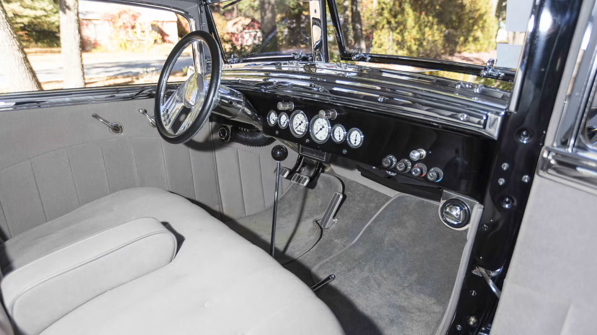 Les garnitures et des commandes sont en acier inoxydable poli, les vitres électriques, il y a la climatisation et un système audio au plafond. Cette Gatsby Street Rod Gangsta Imperial’3 est totalement unique dans son style Vintage de grand luxe.