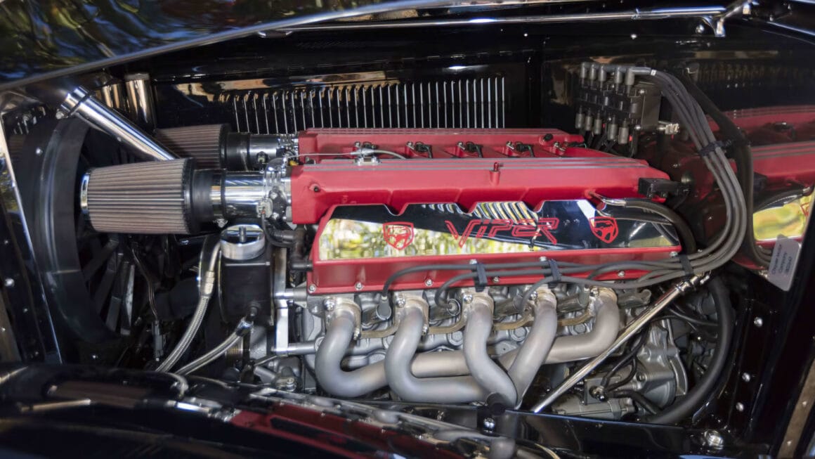 HIGHLIGHTS : 1931 Chrysler Imperial Formal Sedan believed to be only six left in existence, and only one Hot Rod – 8.0/540 HP Viper V-10 engine – 6-speed Viper transmission – Chrome and polished stainless underside – Fatman independent front end _-Mark Williams Pro Stock rear end – Disc brakes – Polished stainless brake lines and fuel lines – Stainless fuel tank – 3 inch chopped roof – Original 145 wheelbase, not stretched – Power windows – Air conditioning – Overhead stereo and much much more…
