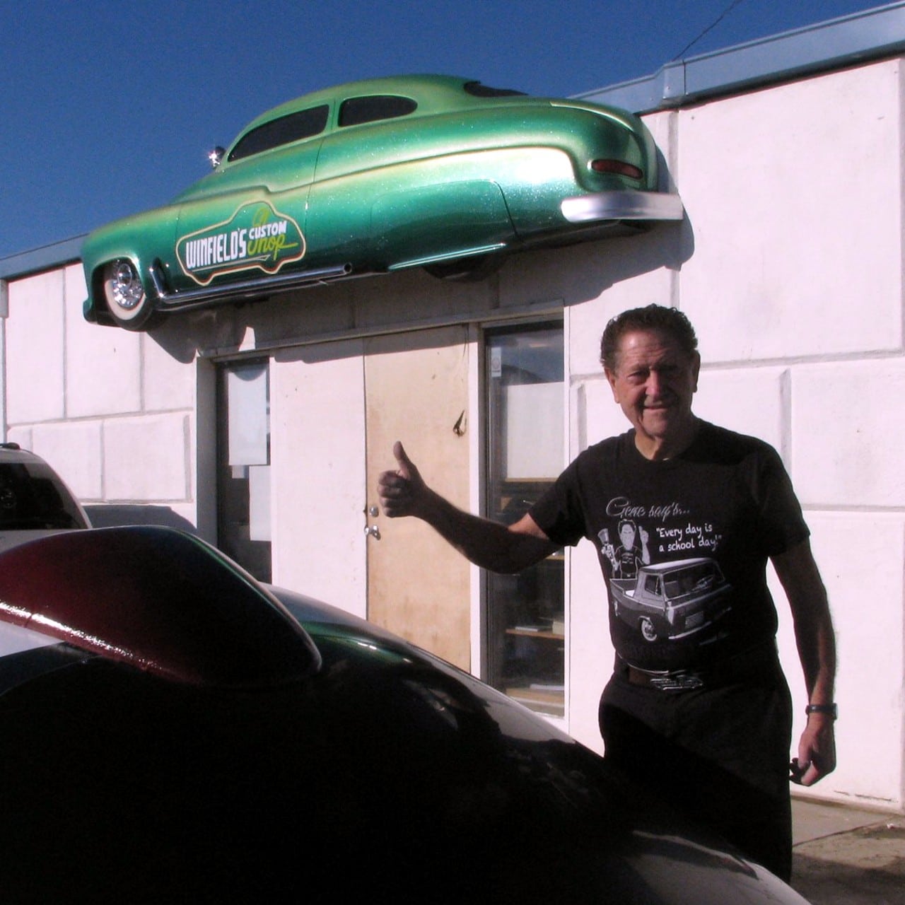 Pour découvrir Gene Winfield, qui jusqu’à ce 4 mars 2025 était le dernier survivant de la grande époque du Kustom, il vous fallait aller en Californie dans une oasis perdue, balayée sans cesse par le vent, située au centre d’une zone pourrie et déglinguée à environ 90 miles au nord d’Hollywood, le long d’un tronçon de l’ancienne Sierra Highway, juste au-delà de la ville poussiéreuse de Rosamond. On s’arrêtait lorsqu’on voyait son atelier automobile presque effondré, en stuc battu par le soleil entouré d’une clôture en acier destinée à éloigner les coyotes.