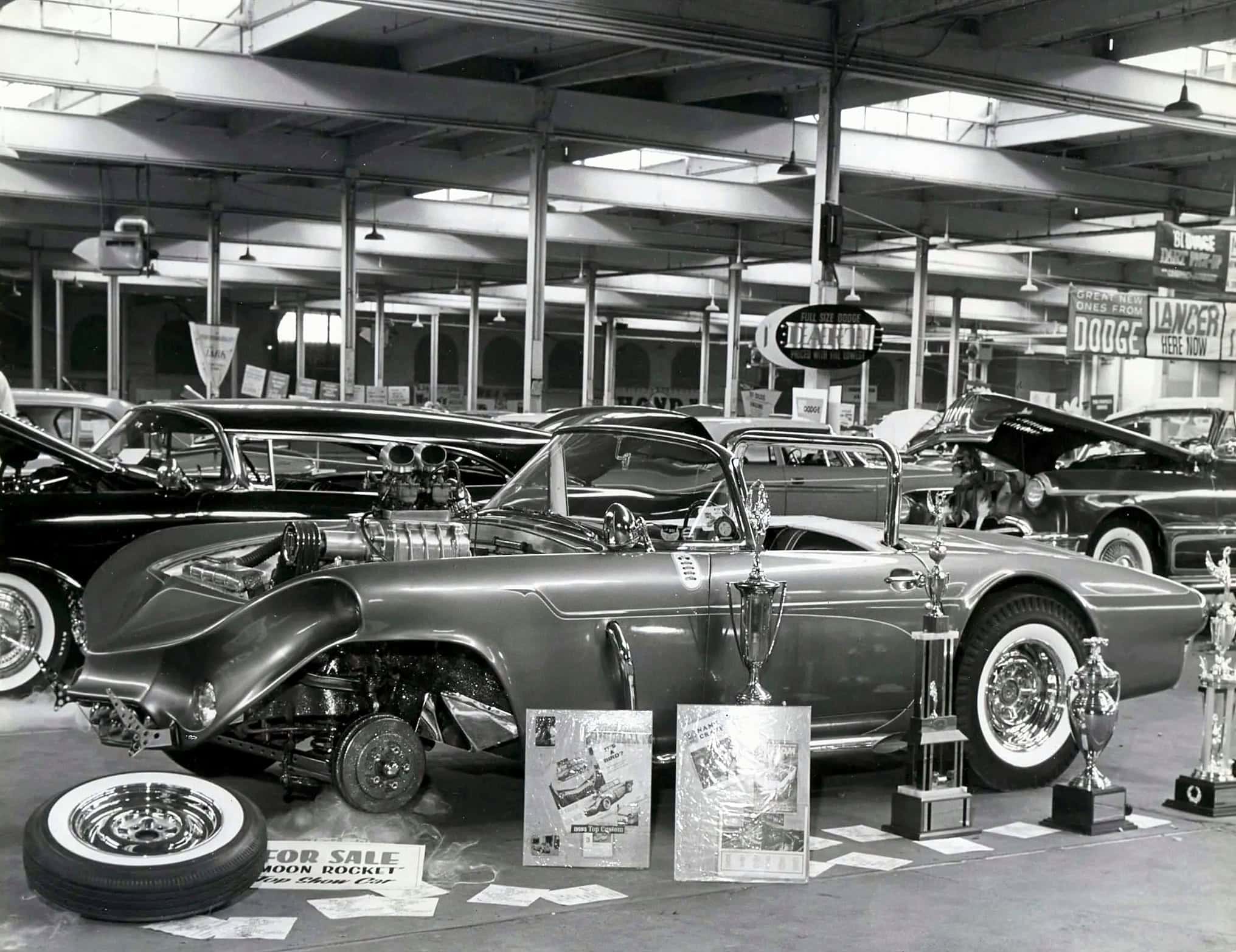 Cette Ford Thunderbird de 1955 “Moon Rocket” a été achetée neuve par Jerry Anolik, préparateur de Hot Rod’s basé à San Francisco, et modifiée par lui et Georges Barris. Elle a remporté le Grand-Prix du public au Oakland Roadster Show de janvier 1957 et elle a été re-présentée en 1959 où elle a de nouveau remporté le Grand-Prix du public.