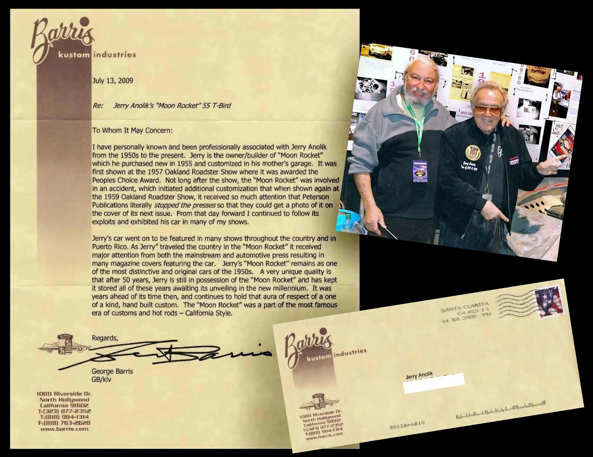 Une lettre de juillet 2009 de George Barris à Jerry Anolik, dans laquelle il partage ses souvenirs de “Moon Rocket”, est présentée ci-dessous. La galerie présente une collection de photos d’époque, de coupures de presse, d’affiches et de trophées de salons automobiles, ainsi que le profil de la voiture… Le prix est susceptible d’évoluer rapidement au delà des 150.000$ compte-tenu du nom de Georges Barris associé à la construction.