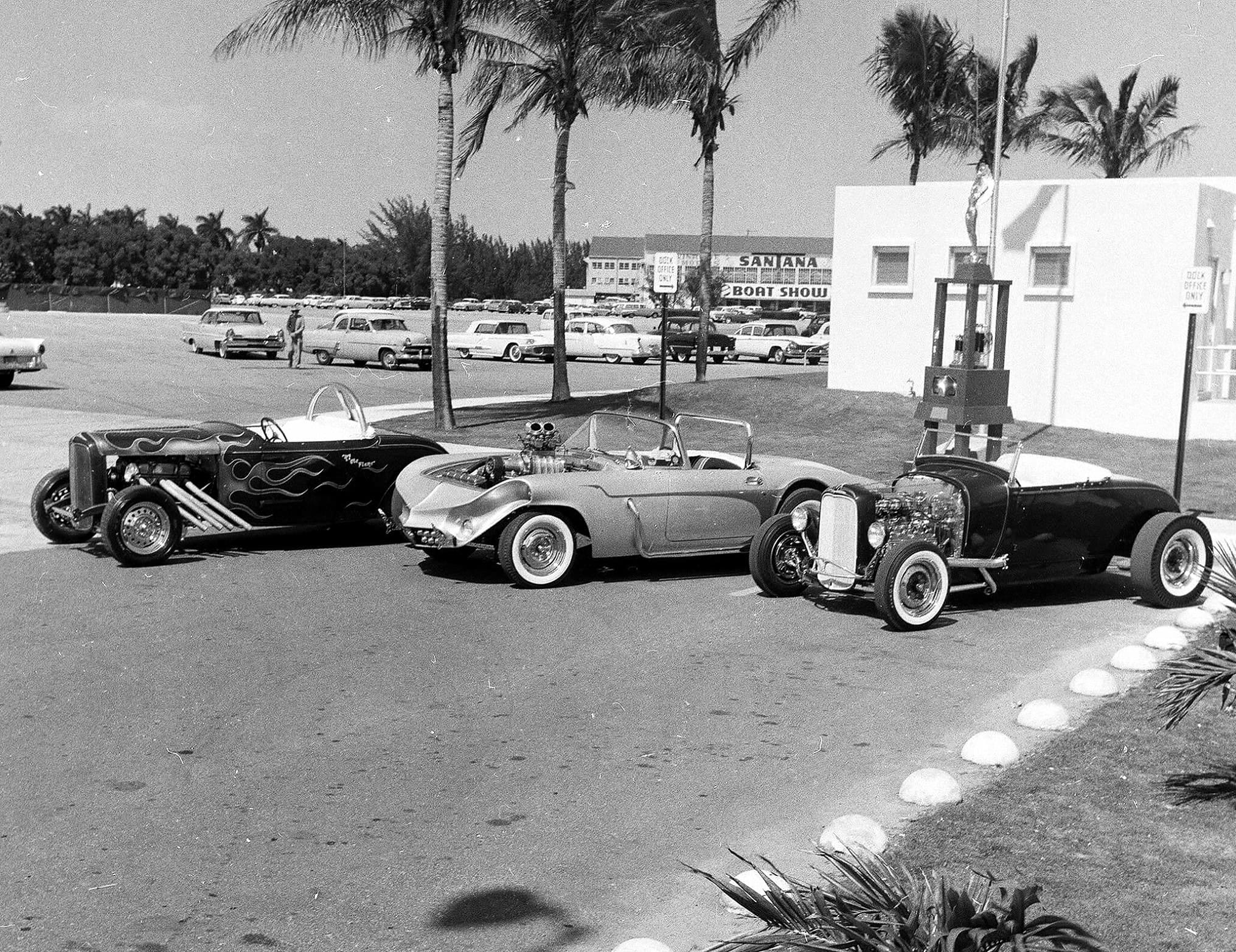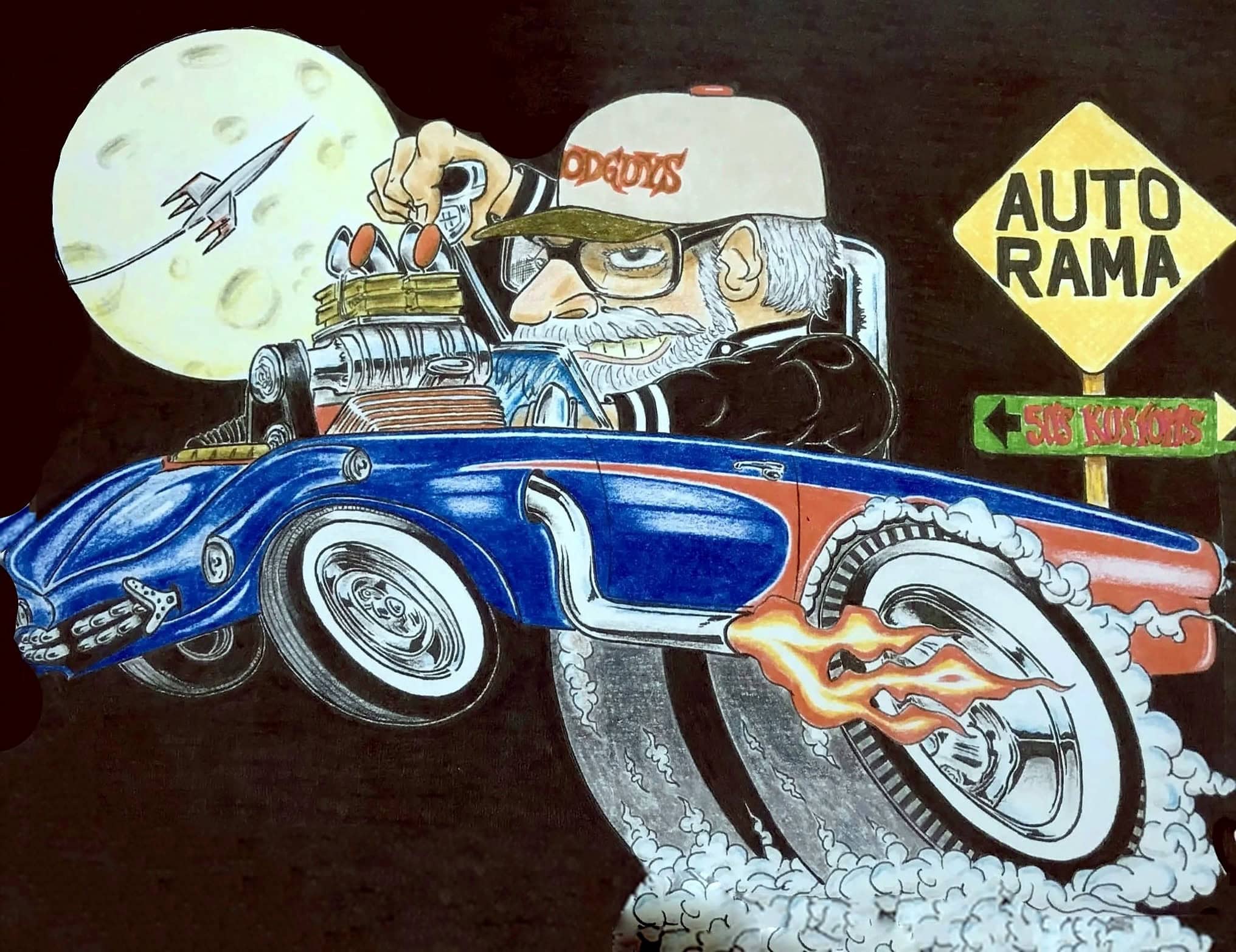 Une autre époque, peu après l’aube des Hot Rod’s et Kustom’car’s… Mais cette Thunderbird Moon Rocket à ces débuts durant les fifties avait été co-fabriquée/créée par Georges Barris et Jerry Anolik, ce qui lui donne une valeur inestimable pour les fanatiques et ce quoique son design est totalement en marge des Hot Rod’s actuels…