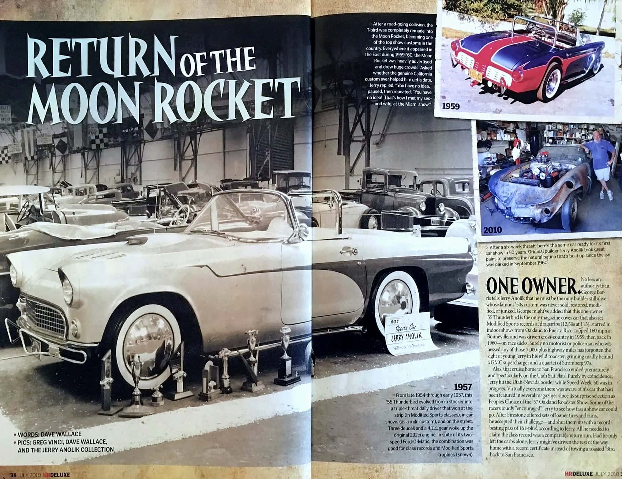 Un article du magazine Hot Rod d’époque indique que cette rareté a en réalité été reconstruite à trois reprises entre fin 1954 et début 1959, à la demande de Hot Wheels qui offrit à Jerry Anolik 5.000 $ plus les frais (pour l’époque c’était l’équivalent de 50.000 actuels) pour la repeindre et la conduire à 3 mêmes salons annuels de Hot Rod’s à Springfield, dans le Massachusetts, sa couleur passant de l’argent au bleu.