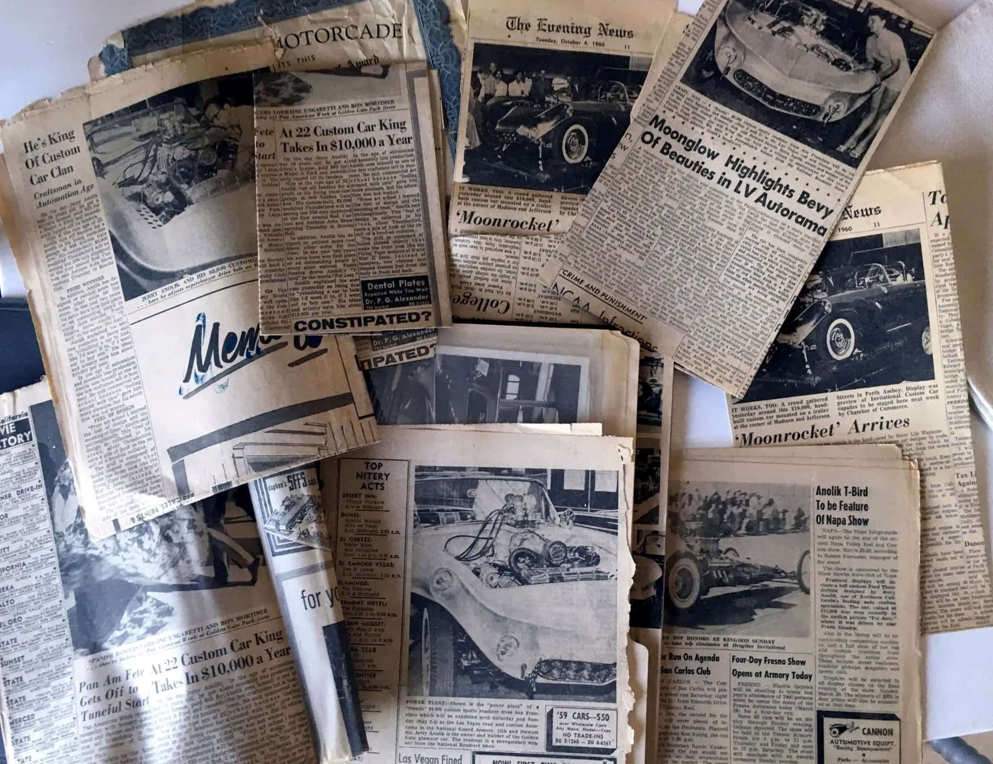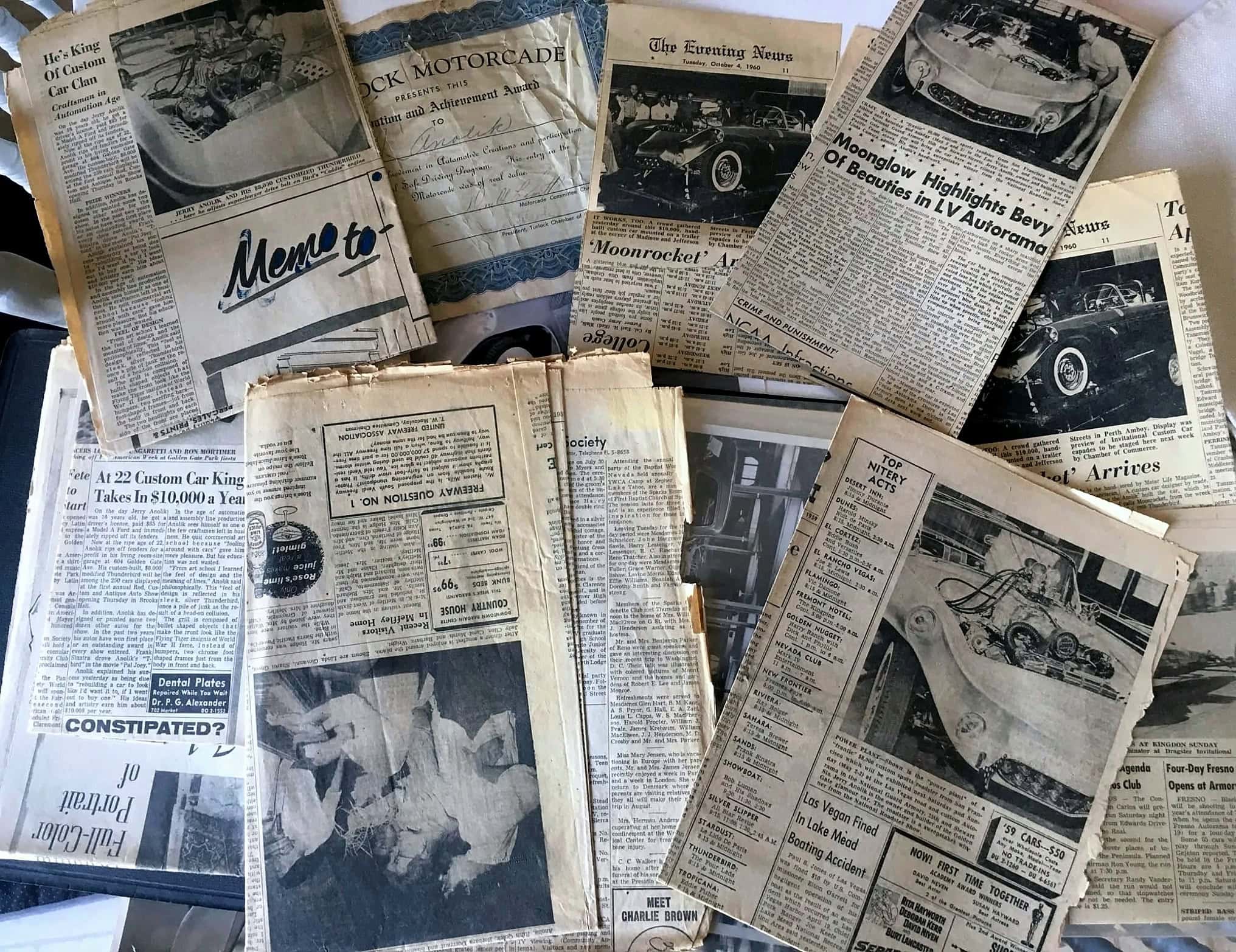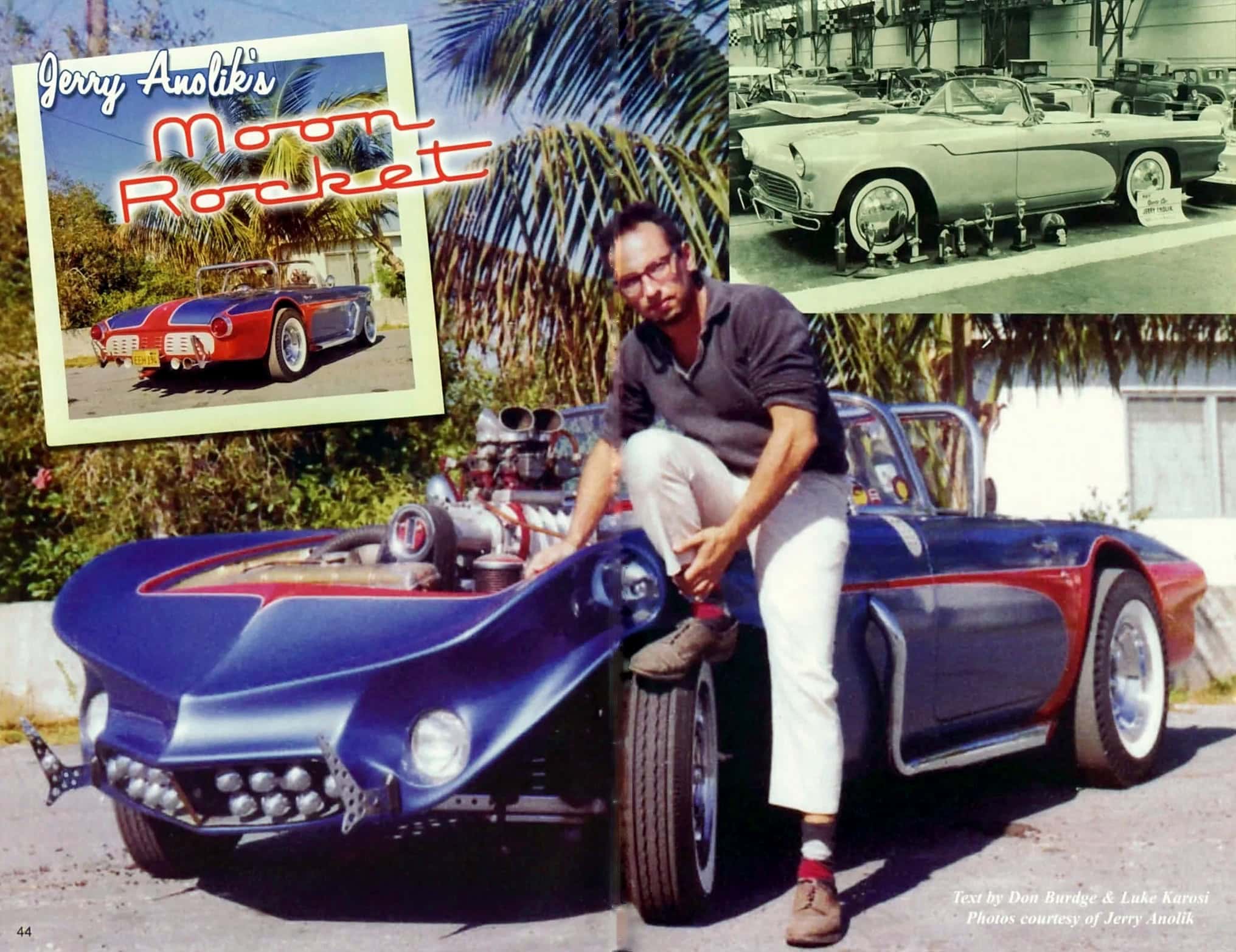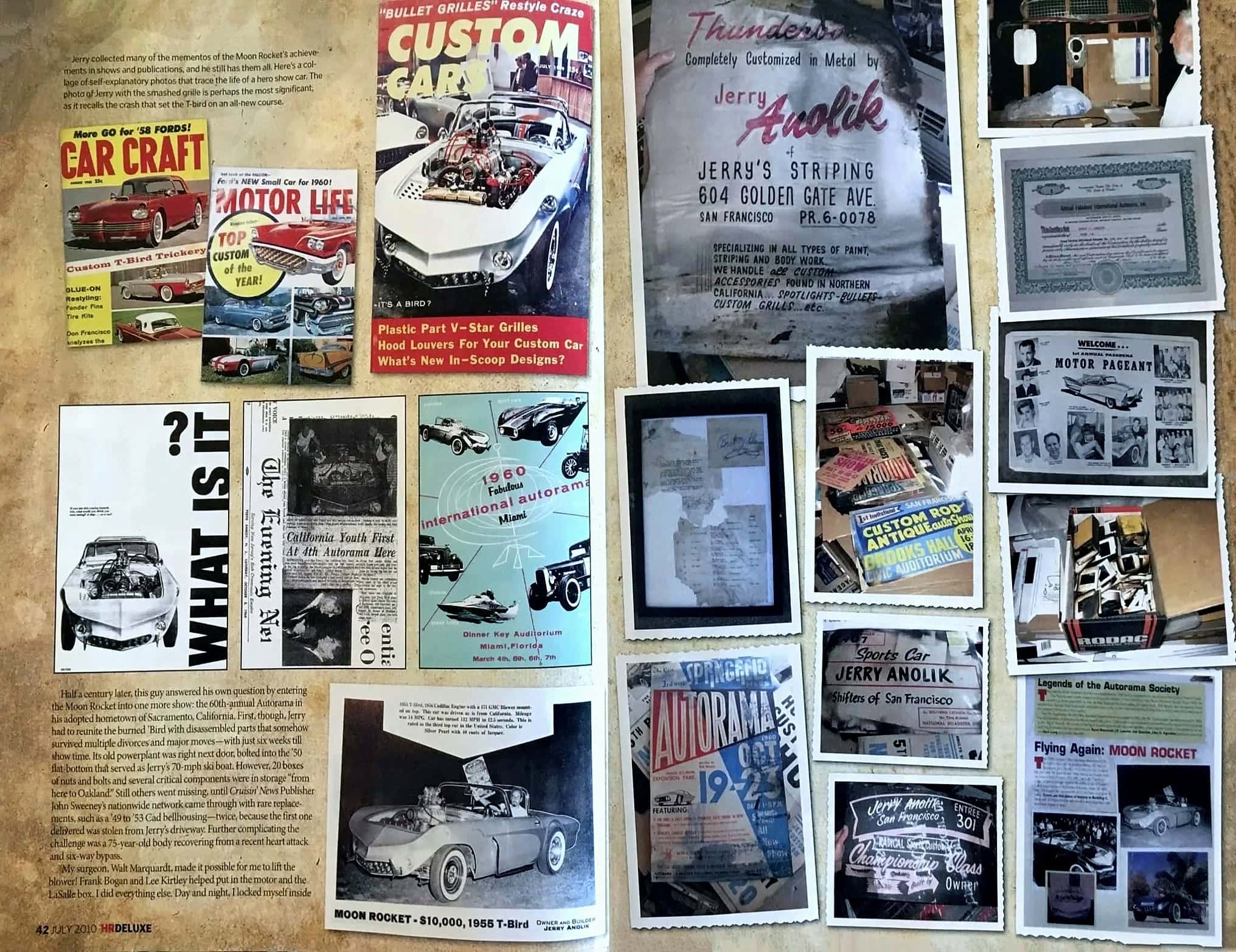La voiture a ensuite parcouru les États-Unis ou elle a été exposée quasiment dans un show par week-end, remportant près de 50 premiers prix dans l’année 1959 et faisant l’objet d’articles dans des centaines de publications de l’époque ainsi que dans des émissions TV… Jerry Anolik s’est ensuite risqué a participer à différentes courses de la NHRA.