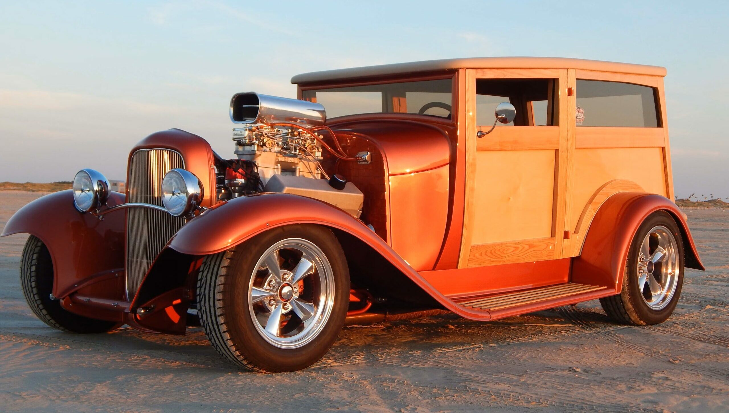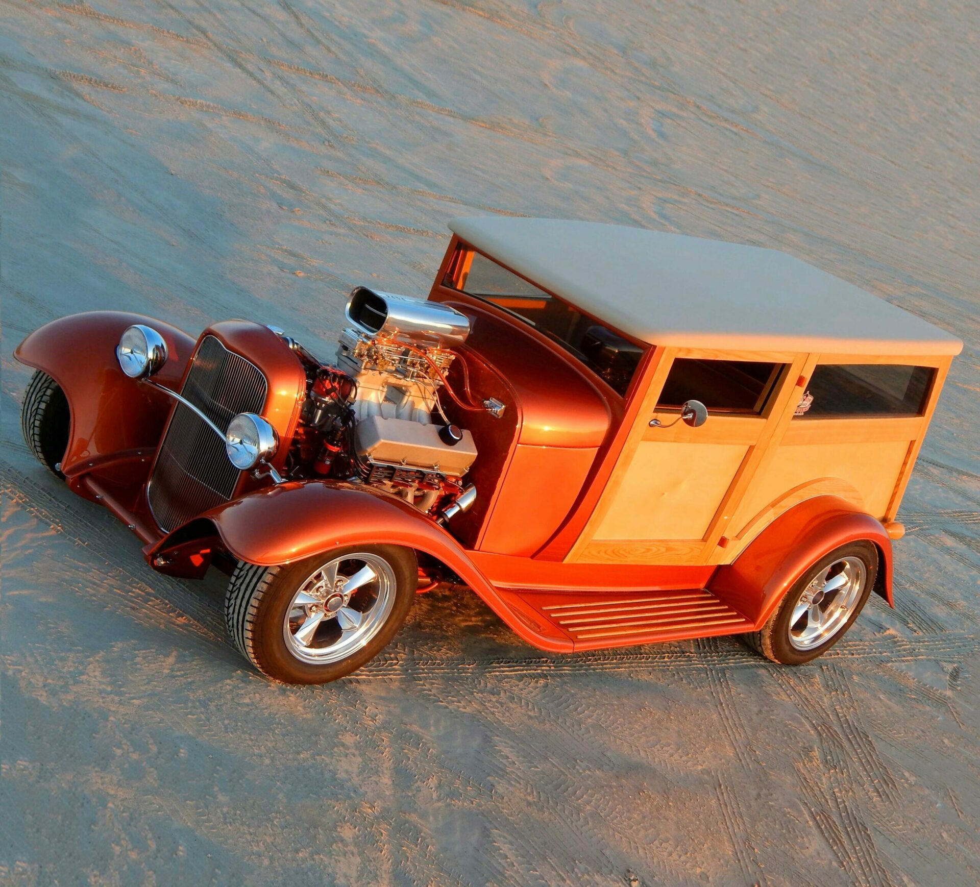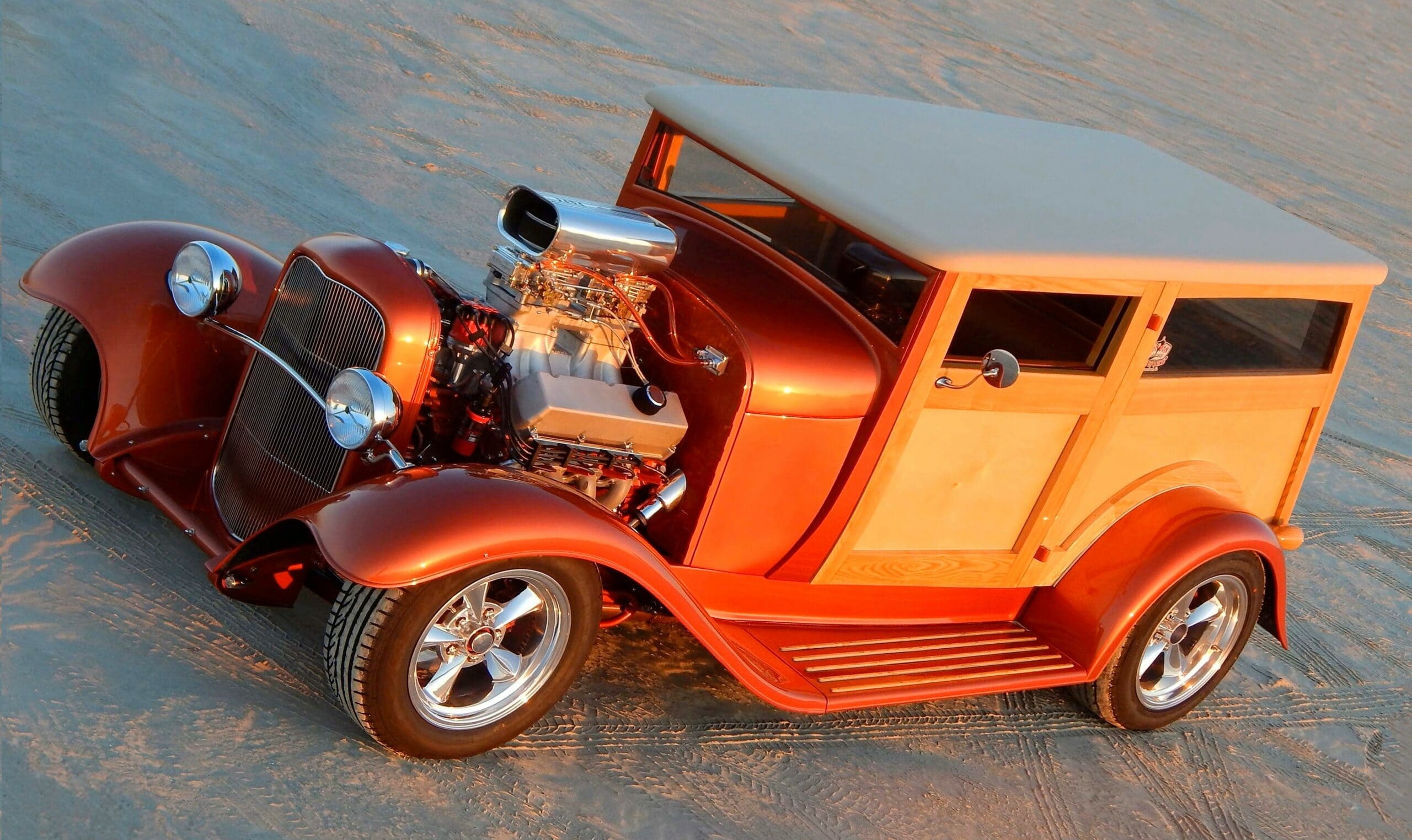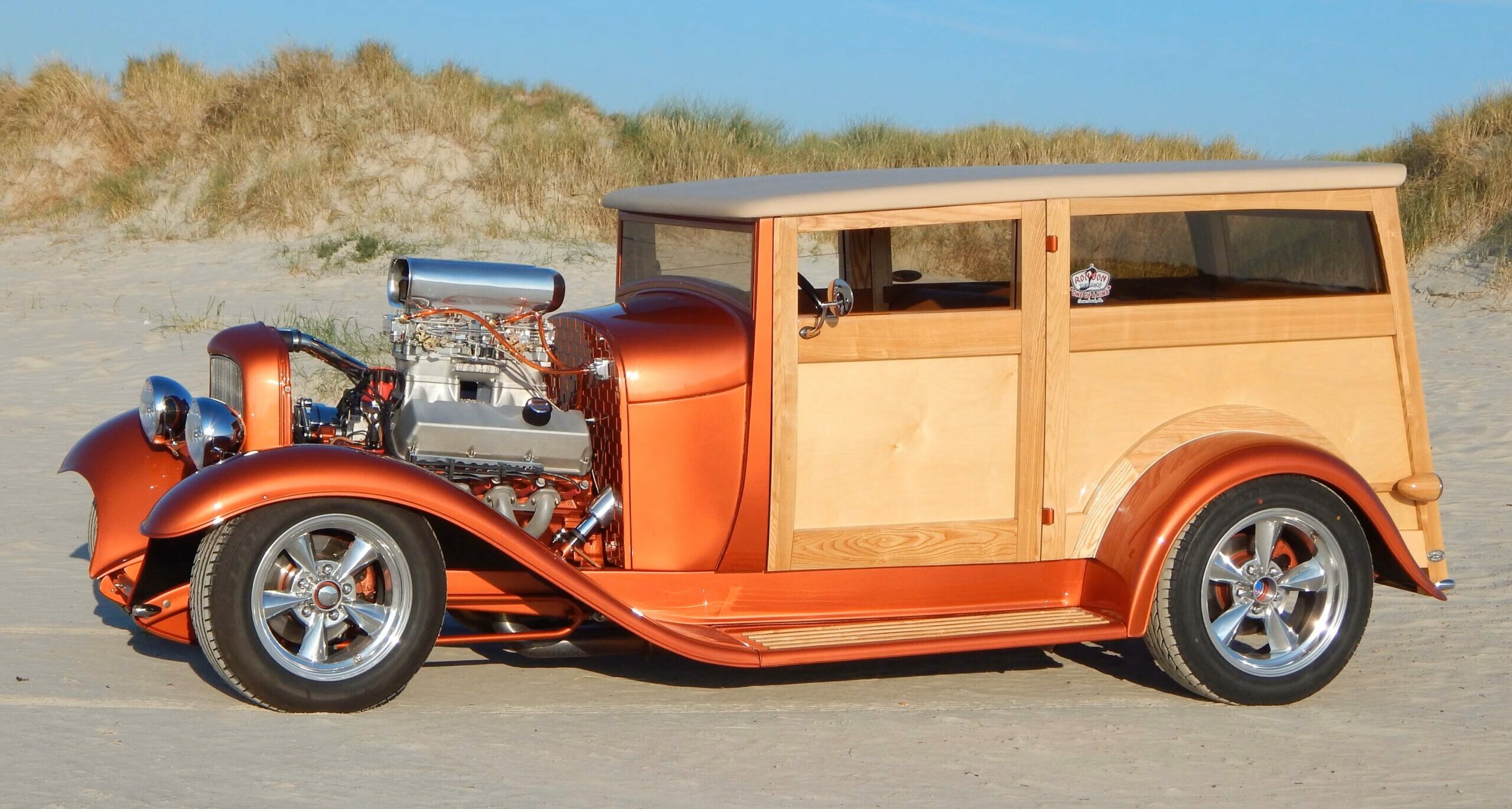 Les sièges ont été professionnellement rembourrés en cuir brun clair. Les panneaux de porte et de flancs, ainsi que le toit, ont été recouverts de cuir d’une couleur correspondante. Lorsque la voiture a été achevée en 2014, l’objectif était de la présenter aux “European Chrom Und Flamen Street Rod” à Bernkastel-Kues. Un court trajet sur l’autoroute a donné la confiance nécessaire pour commencer le trajet de 650 km le lendemain. La voiture a rencontré un grand succès tout le week-end et a reçu un trophée de 1er prix parmi les cinq meilleures voitures participant au salon. Beaucoup de temps et d’argent ont été consacrés à la création du Woody, mais en conséquence, ce rêve issu de l’imagination de Uwe Grunzke, descendant du célèbre général de la Waffen SS Das Reich est devenu réalité. Les émetteurs et jauges de carburant devaient avoir des taux de résistance correspondants.