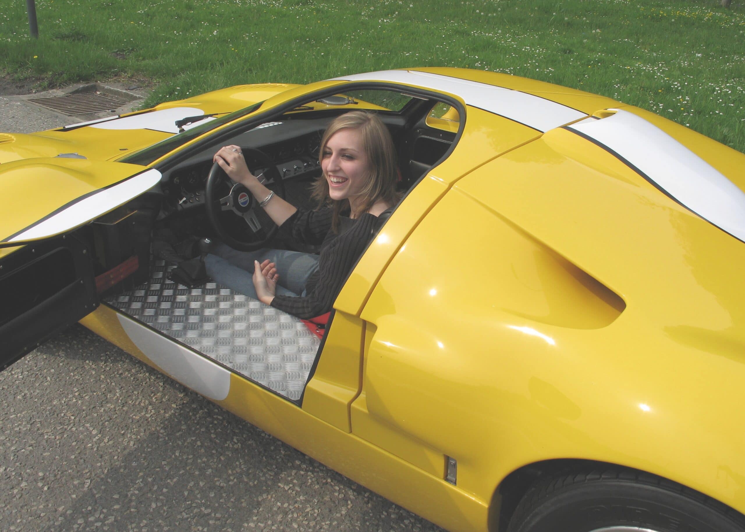 Elle a continué : “J’ai ralenti à 320. Non pas parce que le compteur atteint sa limite, mais parce que l’arrière devient dangereusement léger. Mais on pourrait certainement aller plus vite, c’est sûr. Je suis convaincue qu’elle pourrait atteindre 335” Après un peu plus d’une demi-heure, Ella ralentit et se gara à nouveau à la station-service. Voulant la remercier, l’homme proposa de payer l’essence. “Gardez votre argent. Papa paie”… Ils se serrèrent la main, il sortit de la voiture et la GTD40 démarra en trombe, avec seulement la moitié du réservoir plein. Waouwwwww ! Comme j’ai écrit (on me voit sur les photos le dire) : “La conduite de cette GT40, c’est du bonheur en plusieurs couches, pour celui qui la conduit et aussi pour celui (ou celle), qui s’y fait conduire. Partout ou j’ai déambulé à son volant, des quidams regardaient l’engin avec des airs béats de consternation interrogative… et sitôt parqué, des centaines de gens, des sympas et des beaufs, s’agglutinaient alentours et collaient leurs nez contre les plexiglas…