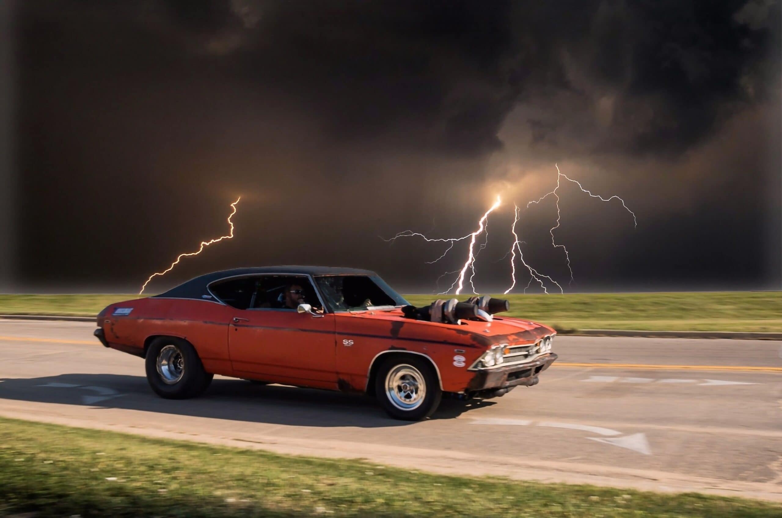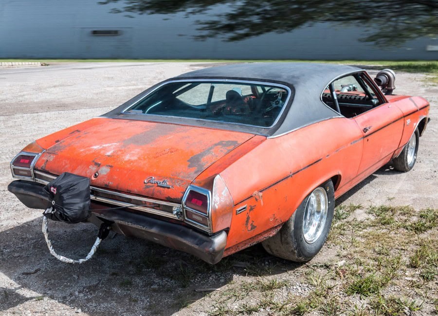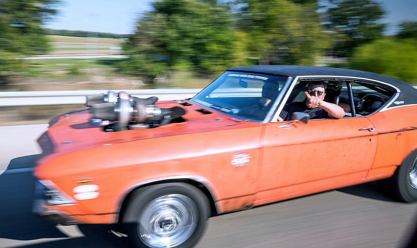 Ils avaient prévu de courir avec elle dans la Drag Week 2015. Le moteur 396ci fatigué s’est mis à siffler et fumer avec de l’essence de térébenthine dans le réservoir, Harry avait chaussé la voiture avec du caoutchouc frais, et bien qu’il se déchirait par endroit ils ont fait la piste en 14 secondes. À un moment donné, ils ont réparé un problème avec un boulon de fixation de ceinture de sécurité qu’ils ont volé dans l’habitacle d’une autre bagnole.