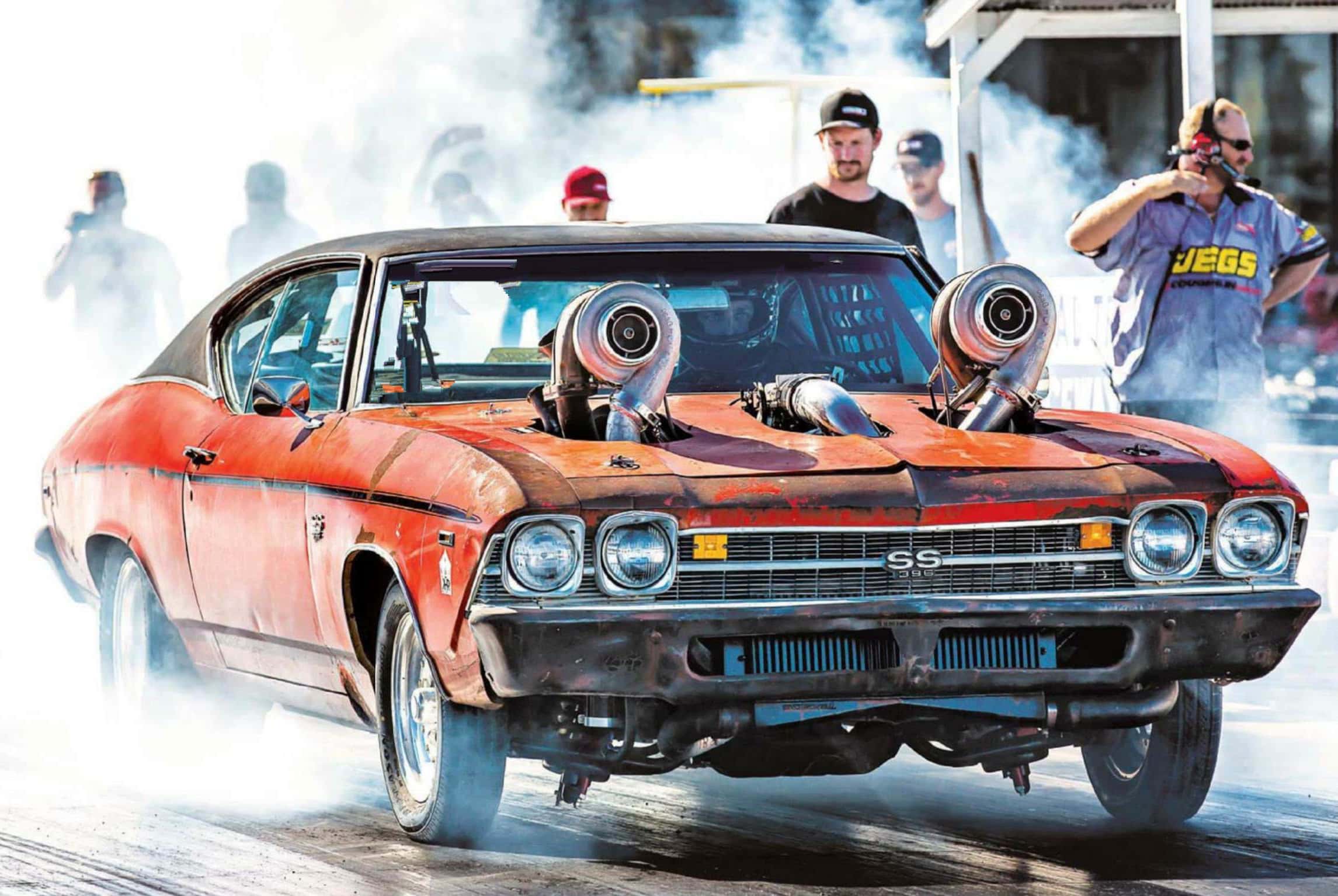 Harry Haig et Andrew Baumgartner, au volant de la Chevelle-BiTurbo “RatsterDrag”, vedette de cet article, sont partis définitivement en enfer… Mes confrères de la presse du cinquième continent, dédiée aux “Dragsteromanes” et aux fous du volant Australiens (le pays des Koalas et Kangourous dont les colons anglais ont génocidé les natifs et natives), venaient à peine de titrer en grand et large que ce duo venait de remporter la “Hot Rod Drag Week 2024″…