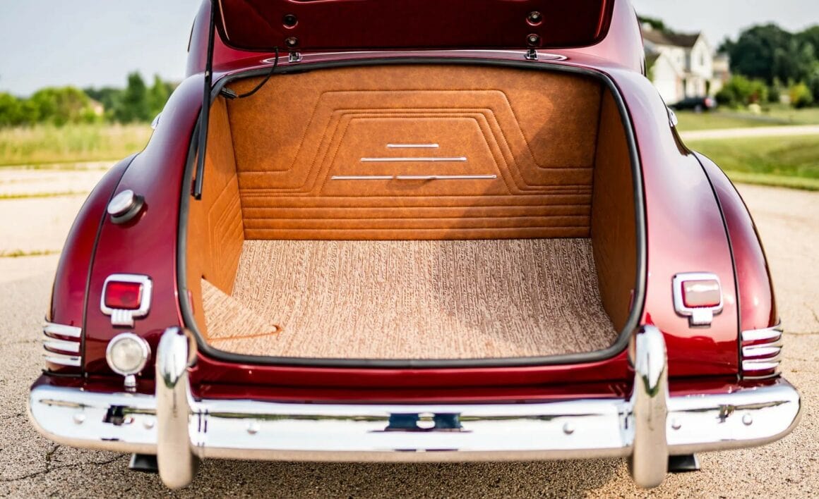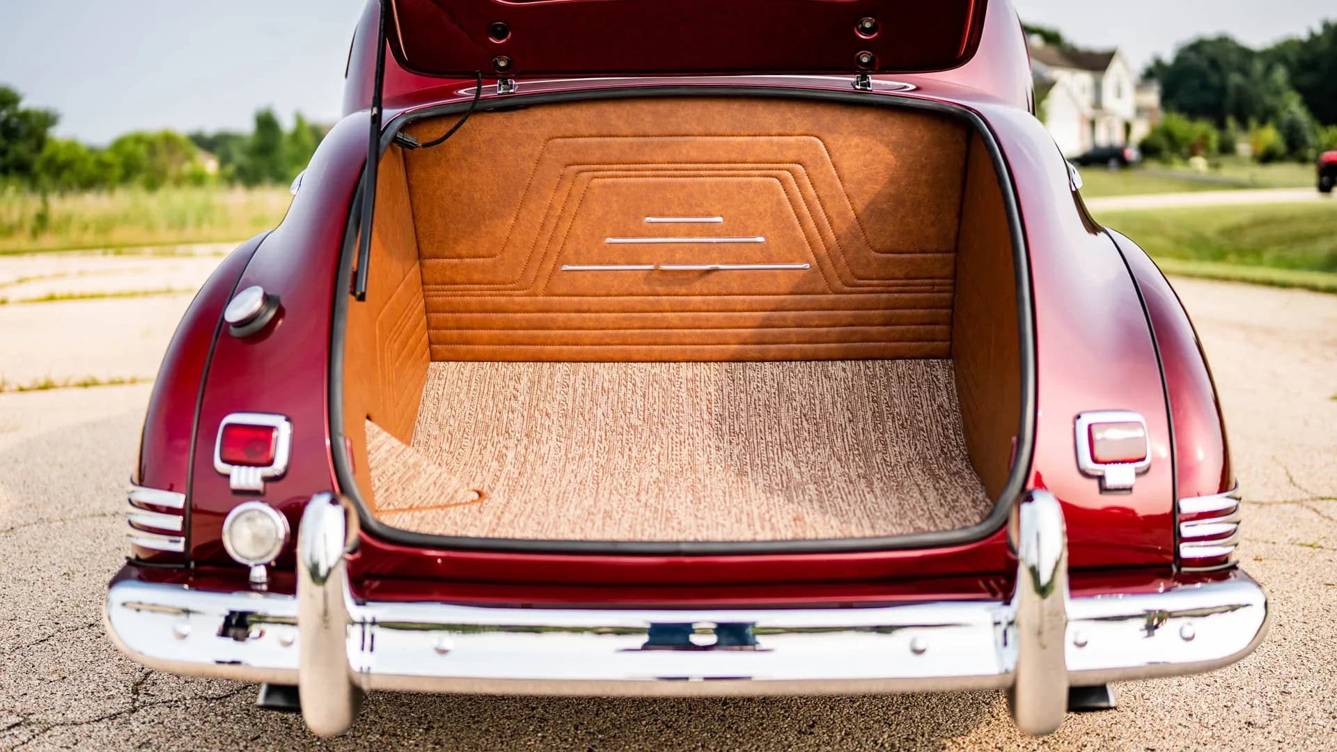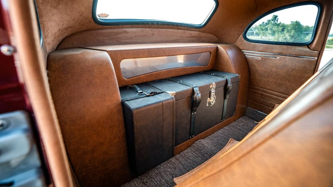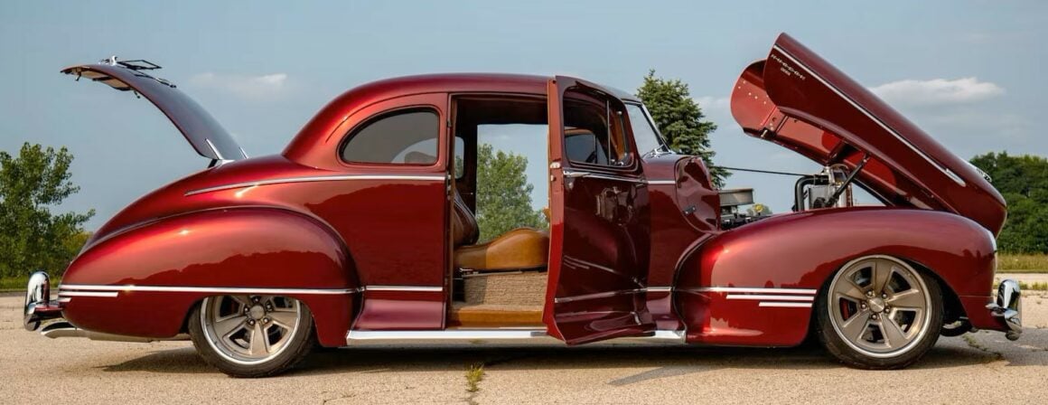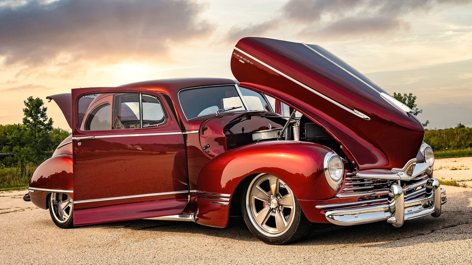 Ce fut une fabrication qui reste difficile à repérer sur la voiture finie. Un pare-feu personnalisé, un plancher, des ailes intérieures et des mini-baignoires uniques ont tous dû être terminés avant que la peinture marron puisse être posée. Un temps considérable a également été consacré à l’installation à la main de tous les chromes et travaux brillants d’origine sur la voiture. L’objectif était de conserver l’ambiance vintage de l’intérieur de l’Hudson tout en mettant à jour toute l’électronique et en lui donnant le confort moderne auquel nous sommes tous habitués de nos jours. Une colonne d’inclinaison “Flaming River” maintient l’Hudson pointée dans la bonne direction, tandis qu’un système “Vintage Air Gen IV” maintient tout le monde à la température parfaite. Le tableau de bord a été entièrement retravaillé mais a toujours l’air d’appartenir à 1947. Du cuir personnalisé recouvre les sièges et le tableau de bord.
