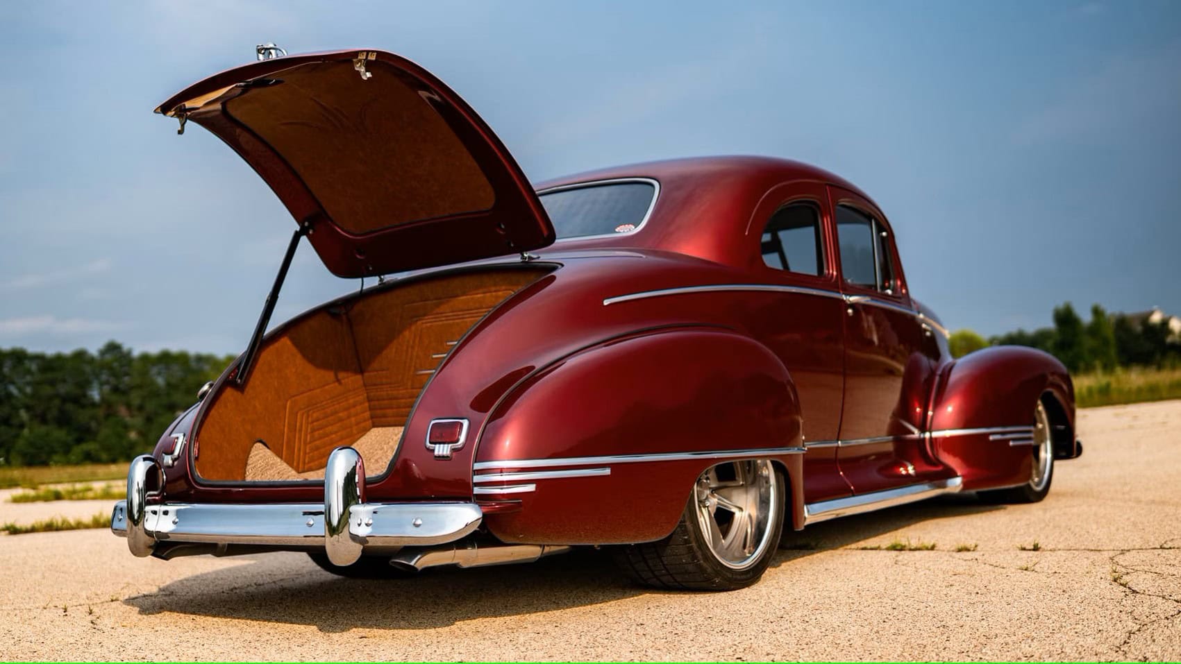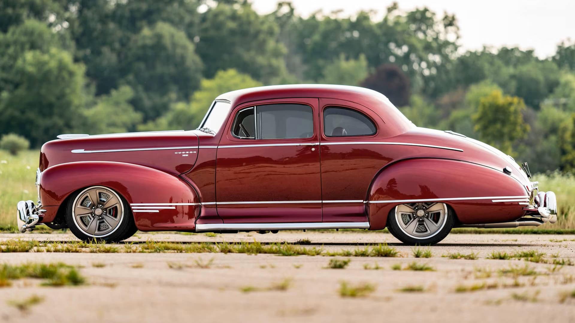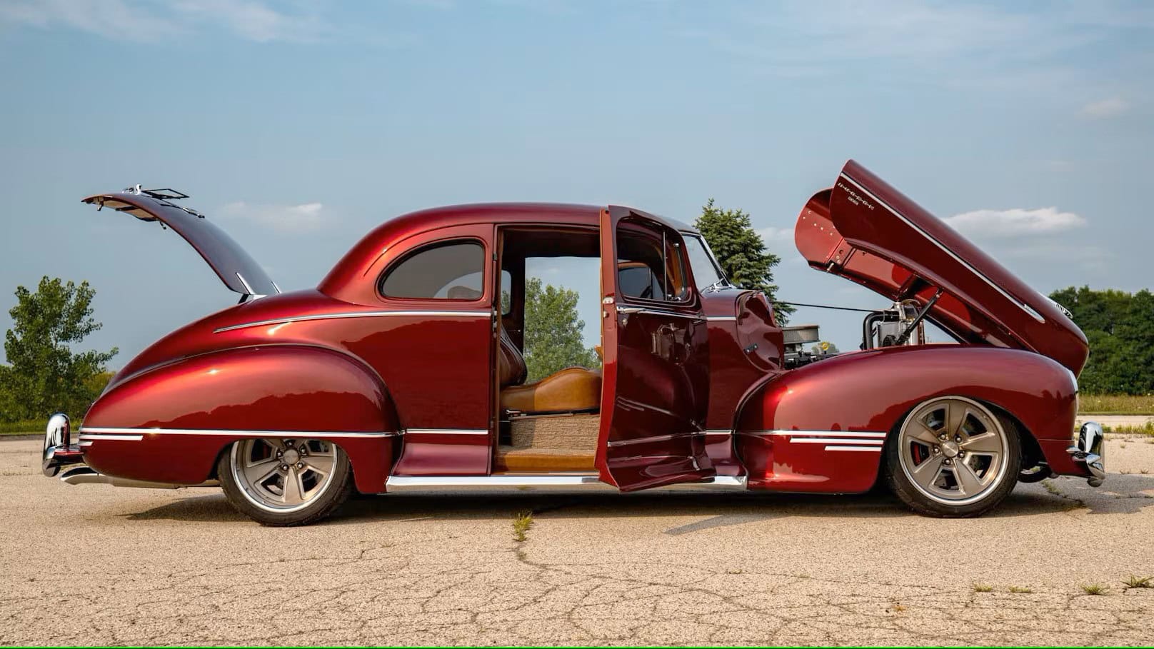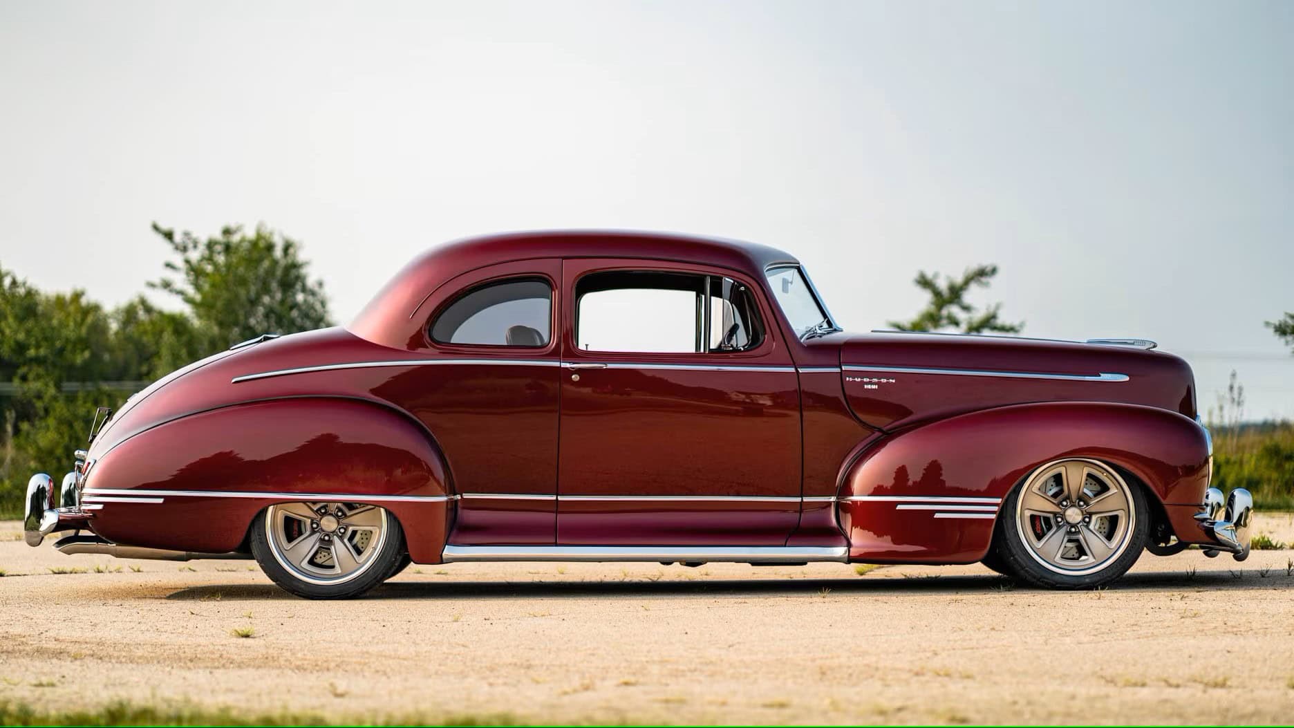 Ce fut une fabrication qui reste difficile à repérer sur la voiture finie. Un pare-feu personnalisé, un plancher, des ailes intérieures et des mini-baignoires uniques ont tous dû être terminés avant que la peinture marron puisse être posée. Un temps considérable a également été consacré à l’installation à la main de tous les chromes et travaux brillants d’origine sur la voiture. L’objectif était de conserver l’ambiance vintage de l’intérieur de l’Hudson tout en mettant à jour toute l’électronique et en lui donnant le confort moderne auquel nous sommes tous habitués de nos jours. Une colonne d’inclinaison “Flaming River” maintient l’Hudson pointée dans la bonne direction, tandis qu’un système “Vintage Air Gen IV” maintient tout le monde à la température parfaite. Le tableau de bord a été entièrement retravaillé mais a toujours l’air d’appartenir à 1947. Du cuir personnalisé recouvre les sièges et le tableau de bord.