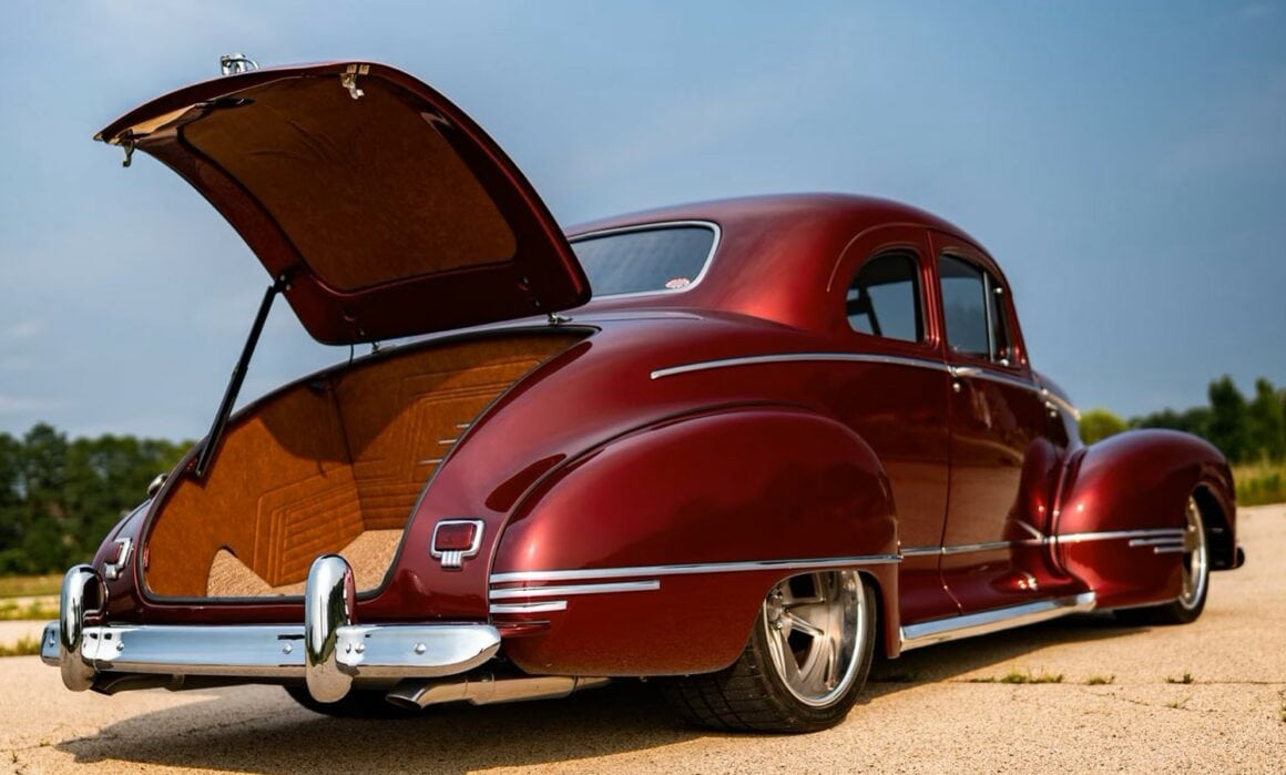 Le Gros bloc V8 expire à travers un ensemble de collecteurs à long tube en acier inoxydable “Schwartz” avec des primaires de 1,875po dans un système d’échappement double en acier inoxydable soudé TIG de 3po. Le moulin EFI moderne est soutenu par une transmission automatique GM 4L60E overdrive… Il renvoie la puissance à un intermédiaire électrique “Moser” de 9po avec des essieux à 31 cannelures et un système de moyeu “Baer” à flotteur complet. À l’intérieur du boîtier “Moser”, se trouve un “Currie”, un différentiel à glissement limité “Truetrac” et un ensemble d’engrenages en 3,70. Alliant style vintage et performances modernes, l’Hudson roule sur un ensemble de jantes “Forgeline J03C” de 18 x 9po AV et de 18 x 12po AR, enveloppés de pneus “BFG Rival S” en 275/35/18 AV et 335/30/18 AR.. Alors que le plan pour la carrosserie était de préserver l’apparence de l’Hudson, il y a eu une tonne de travail de plus…
