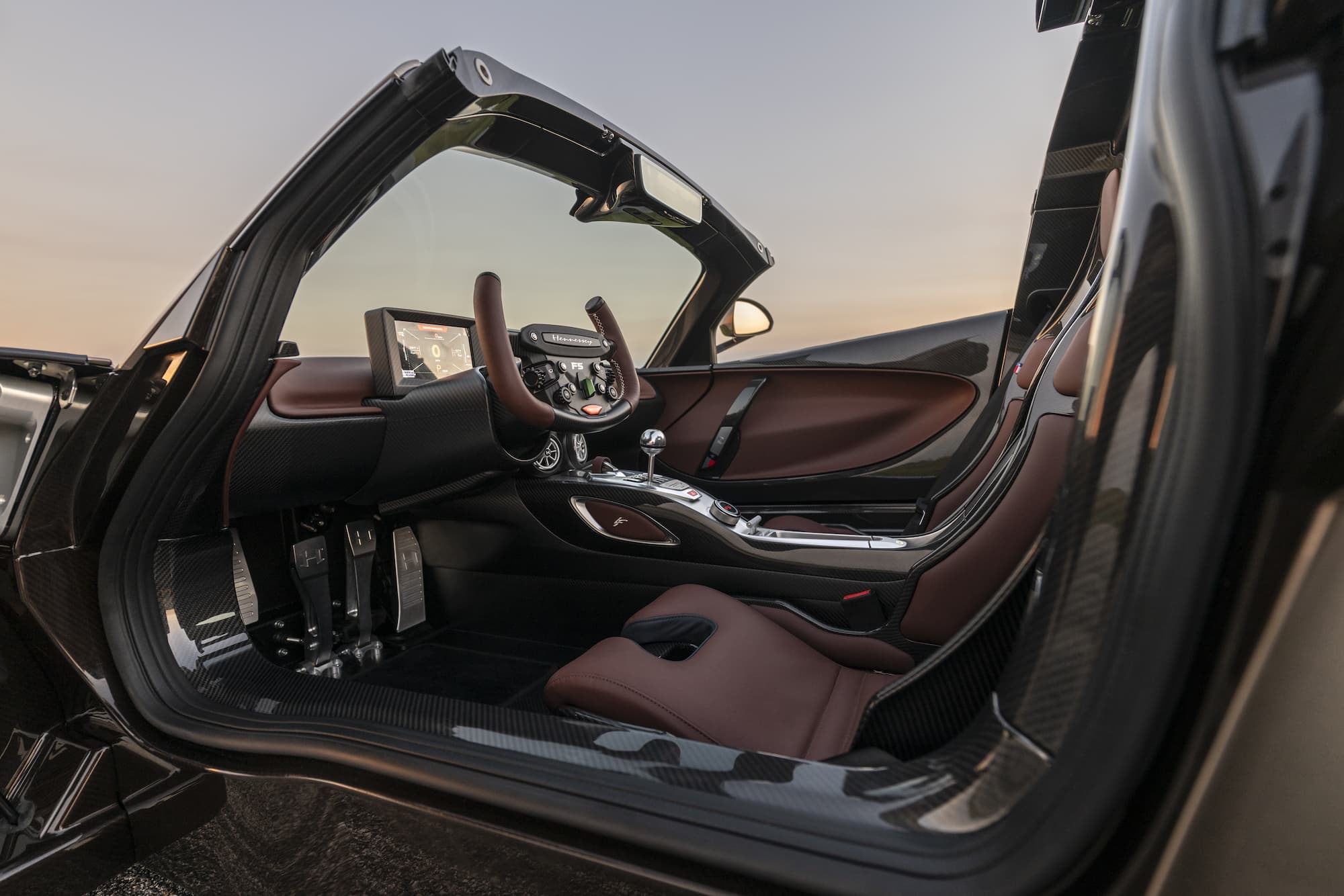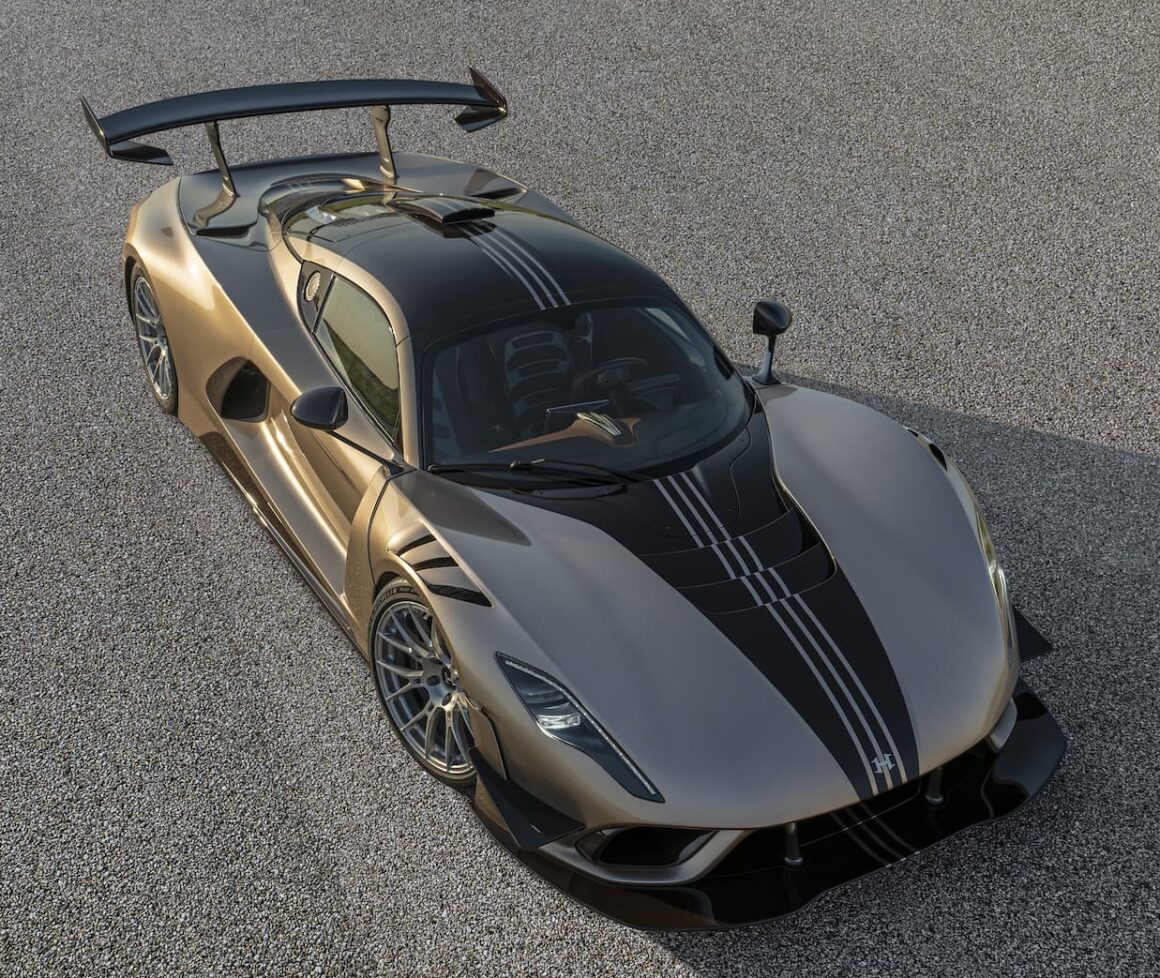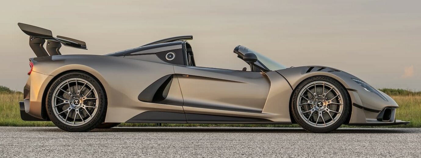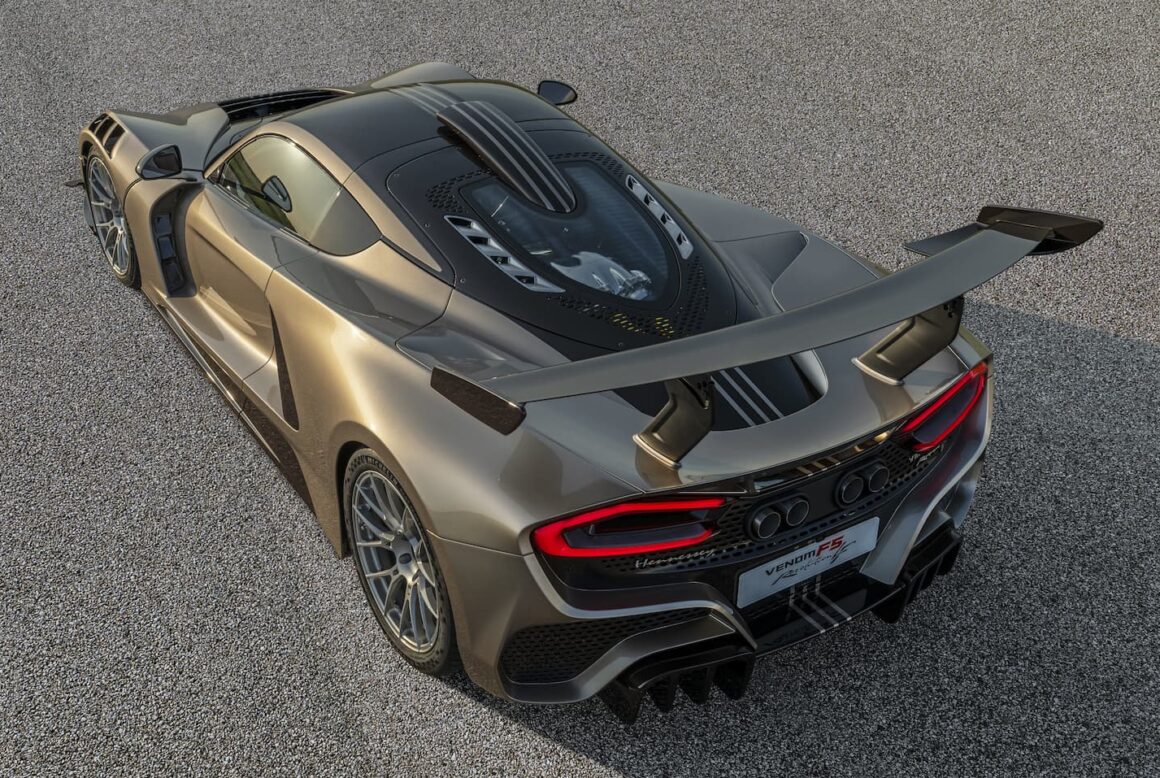 Ce n’est pas vraiment “grand chose”, mais ce fourbi associé à une nouvelle suspension et au nouveau moteur Hennessey V8 Fury biturbo de 6,6 litres développant 2.031cv, est sensé améliorer l’aérodynamisme général, selon Hennessey, assurant un super (sic !) équilibre à grande vitesse sur route et sur piste, et permettant des performances extrêmes avec le toit enlevé (Roadster) ou en place (Coupé). Ce n’est pas vraiment pratique pour des voyages “au long cours” mais les rares propriétaires ne s’en servent que pour des “rallyes d’auto-suffisances” entre milliardaires, pas comme “Daily-Driver”…