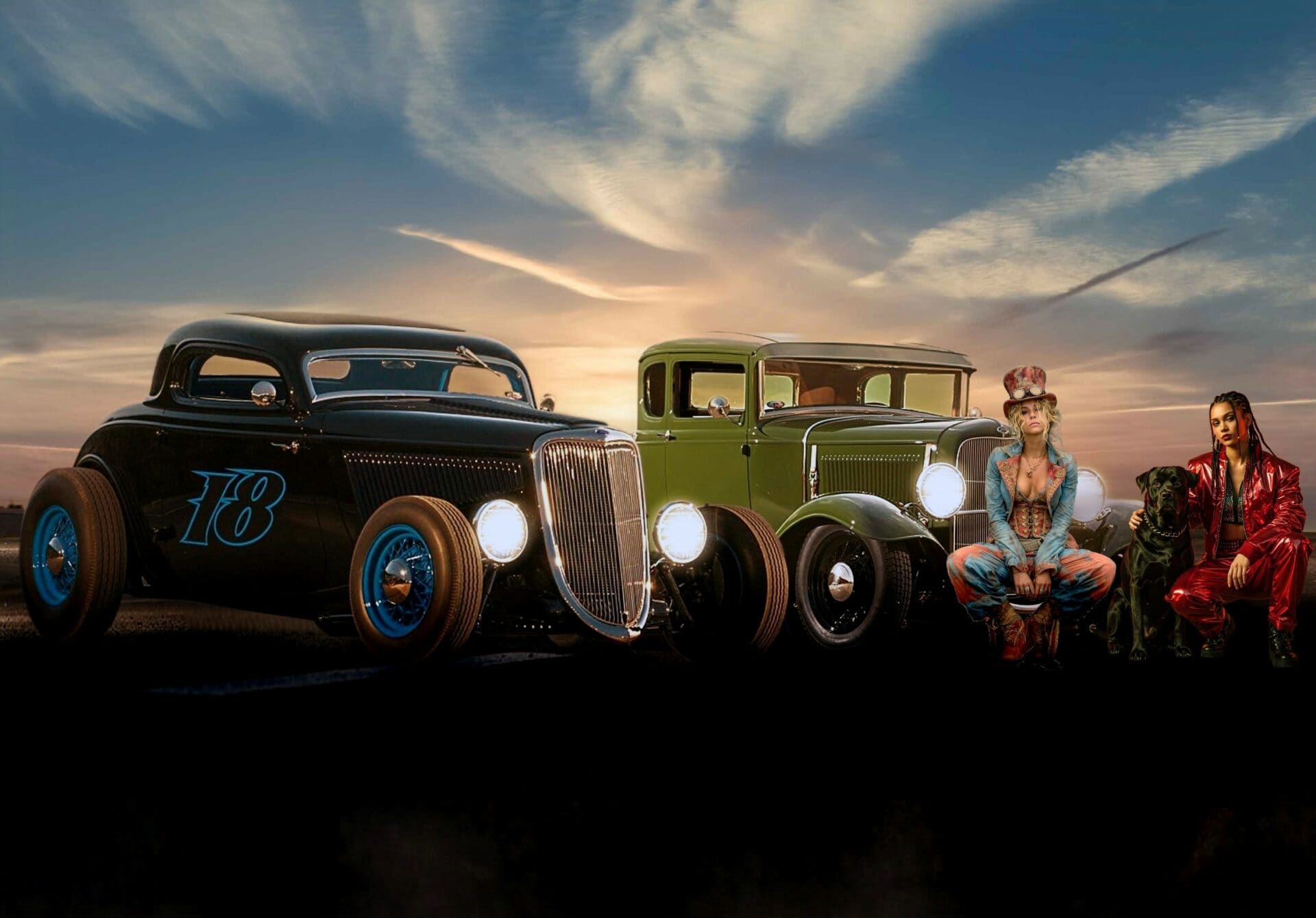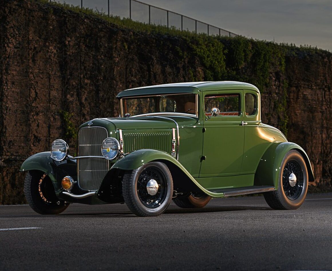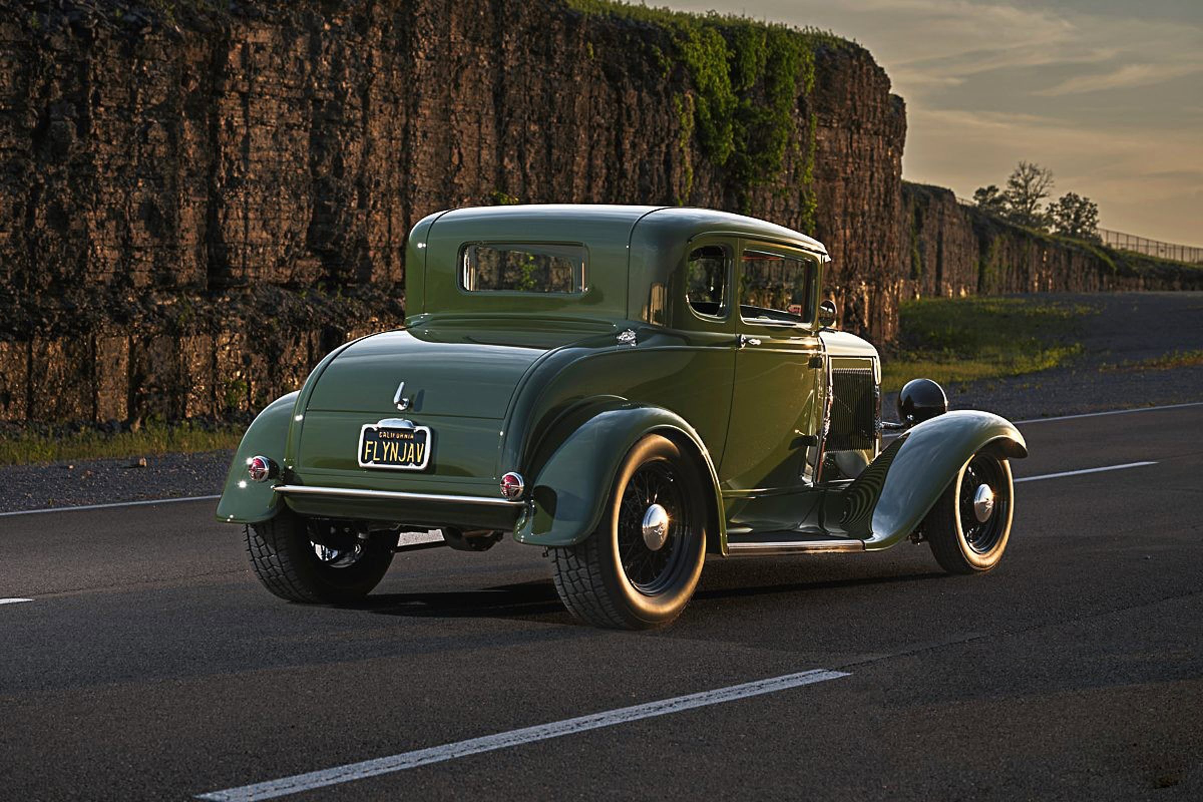 Un quadribras triangulé qui suspend l’arrière de style Banjo, et roule sur des jantes à rayons Wheelsmith de 15 et 16po chaussées de pneus Coker Excelsior, ont été montés tout autour. La puissance moderne se présente sous la forme d’un moteur LS3 et d’une transmission 4L65E, mais ils ont reçu un style vintage grâce à un système d’injection de carburant Borla 8-Stack, des couvercles de soupape Thunderbird avec des emblèmes personnalisés, des collecteurs d’échappement moulés et des détails bien pensés. La carrosserie du modèle A a été traitée avec un toit haché, qui a également été étiré pour accepter des portes de berline affleurantes. Le coupé a également été “mis à jour” avec une calandre, des ailes et des marchepieds Deuce.