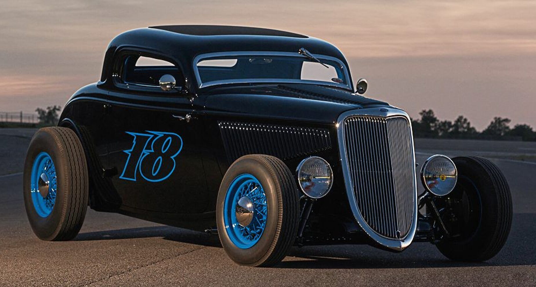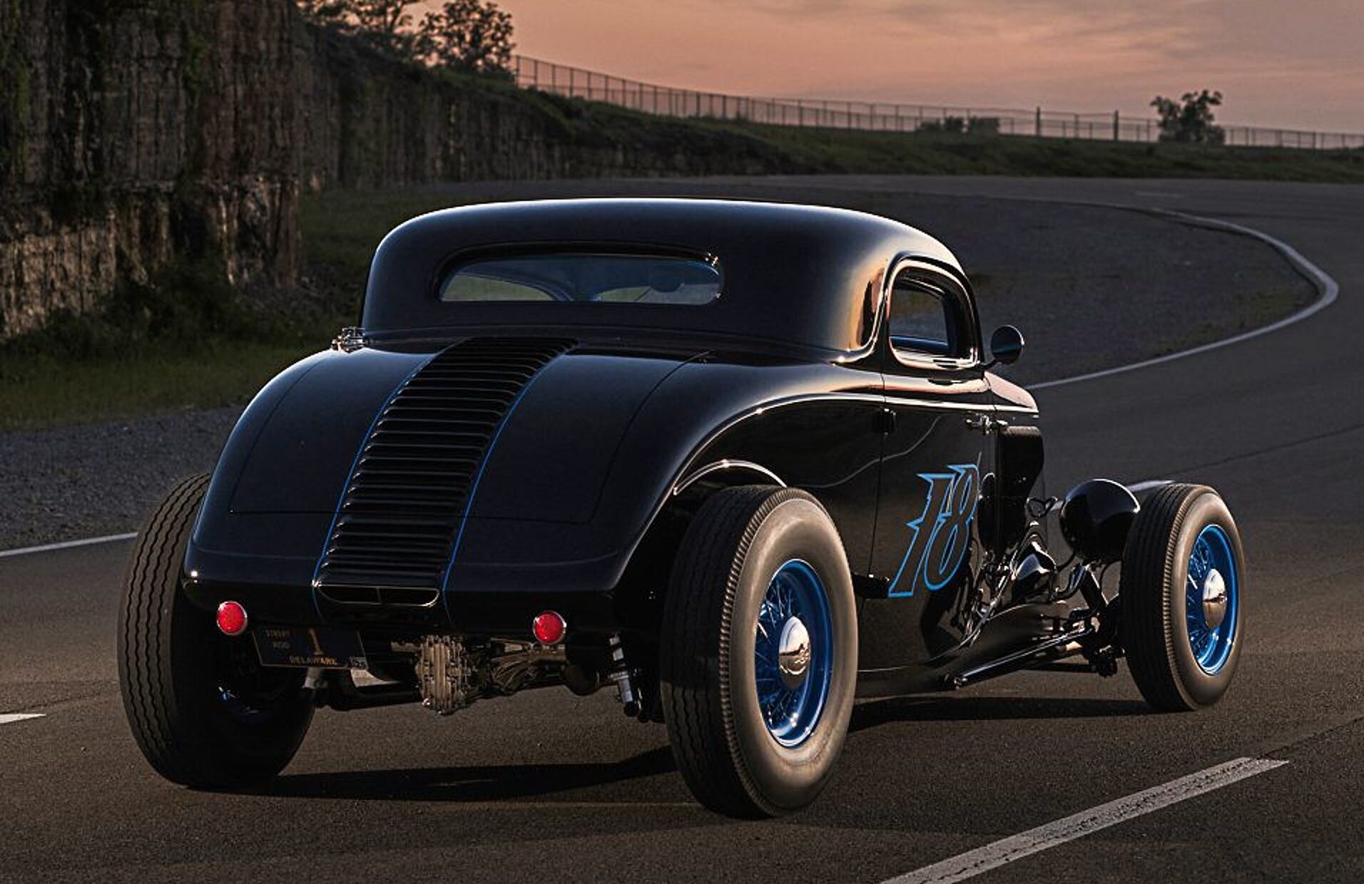 Joe avait confié un Hot Rod Coupé Ford’34 de ses débuts qui avait été restauré il y a longtemps, à l’équipe de “Dutchboys Hotrods” dans le Michigan pour une “simple” remise à jour. Cependant, alors qu’ils creusaient “hard” au dedans de la chose-voiture, des problèmes antérieurs avec des réparations douteuses ont fait surface, ce qui a retardé le projet. Pour aider à respecter le calendrier, Dutchboys a collaboré avec Henry Richards de “Steadfast Manufacturing” pour certains éléments clés de la construction à refaire de A à Z…. La carrosserie originale de la Ford’34 avait reçu un sérieux coup dans le toit et le Hot Rod en totalité a été reconstruit sur un châssis “Steadfast” personnalisé équipé d’un pont-différentiel (ils sont toujours à l’arrière) à changement rapide.