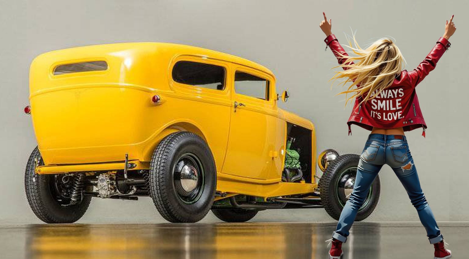 Comme vous le lisez dans le précédent article (le cinq millième), ChromesFlammes est maintenant le seul survivant de ce type de presse. Revoilà donc dans cet article numéro 5.001, le Hot Rod Ford B’32 Sedan des débuts, mais refait, remotorisé, amélioré, mais toujours jaune, sortant de restauration flambant neuf, réalisé sans lésiner sur les moyens ! Ce bijou incarne à la perfection le style Hot Rod des années Chromes ! Entièrement restauré par un passionné de Hot Rods de longue date ! La rumeur prétendra surement un tas de choses invérifiables.