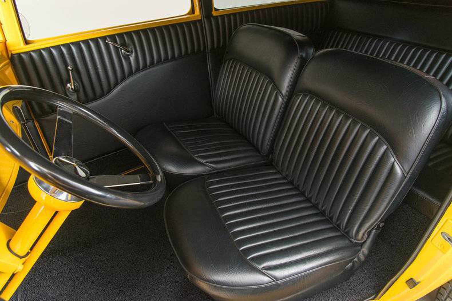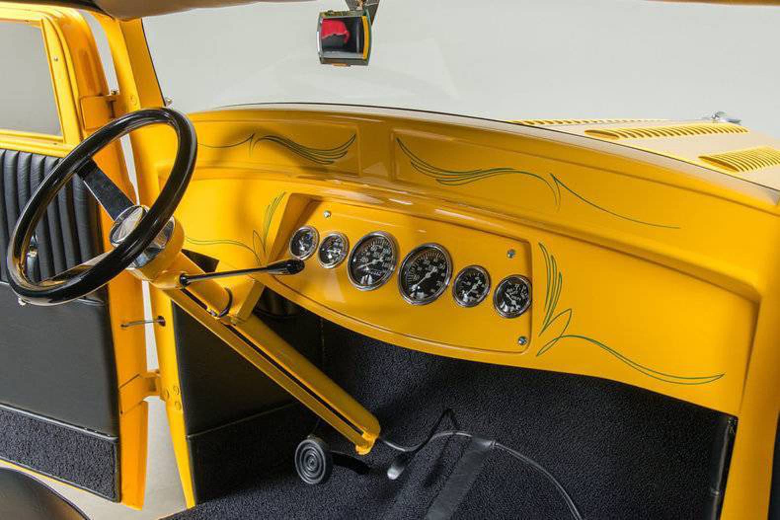 Quoi qu’il en soit, le style des années 70, le toit abaissé de 12,7 cm et d’autres éléments caractéristiques en avaient déjà fait un projet exceptionnel il y a 56 ans d’ici, qui a nécessité plusieurs années de recherche des pièces parfaites pour compléter et redonner vie à ce chef-d’œuvre. D’innombrables heures de travail ont été consacrées à s’assurer que tout était parfaitement droit et que tous les joints étaient parfaitement alignés. La finition est la même peinture jaune canari brillant de haute qualité, avec une base et un vernis transparent, qui sublime ce Hot Rod B’32 !