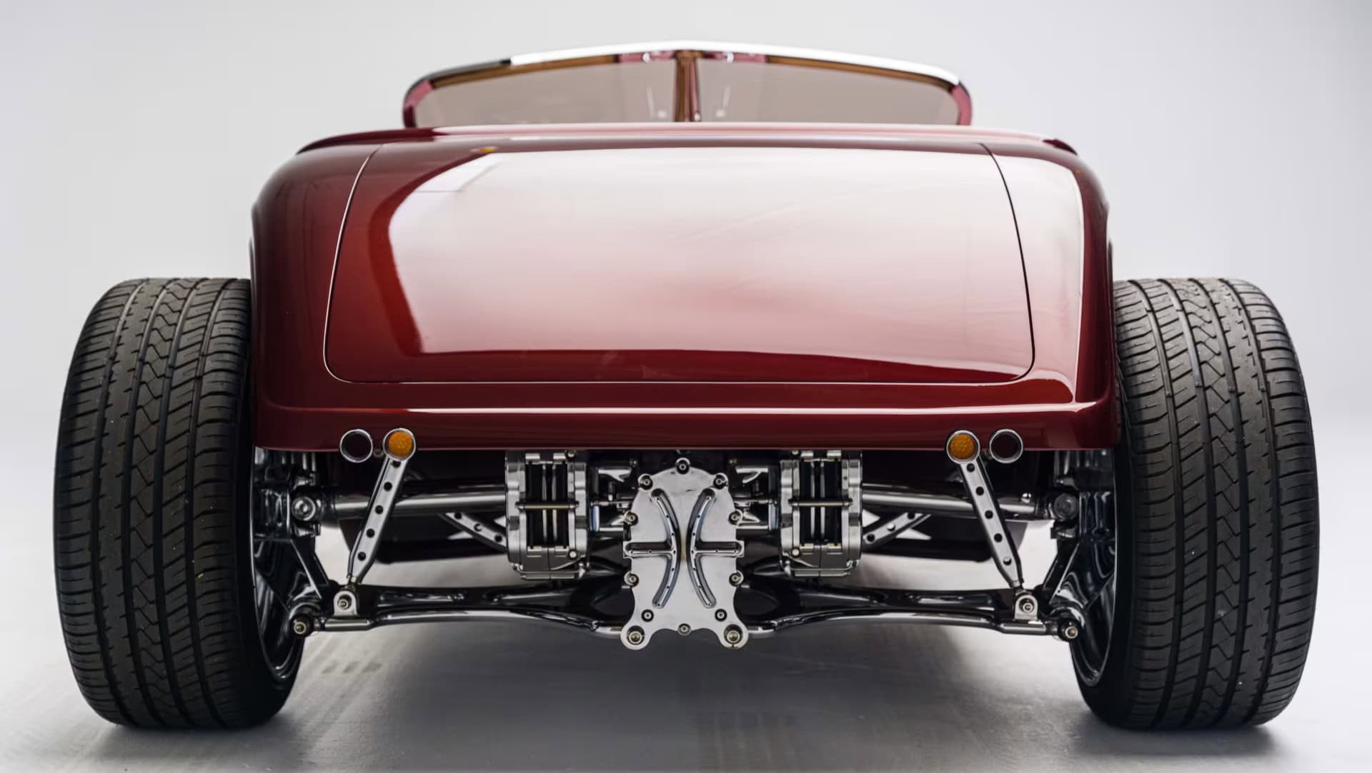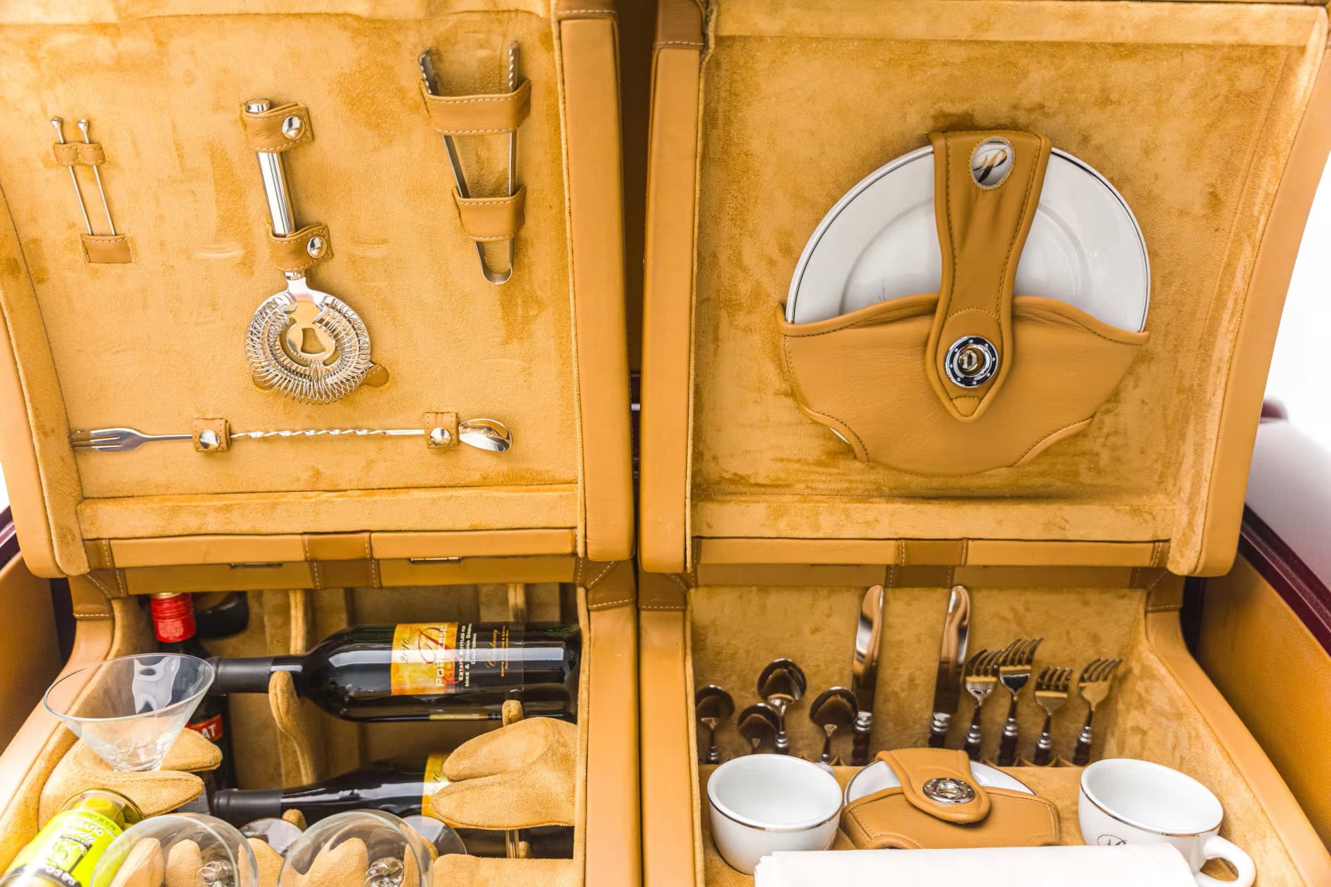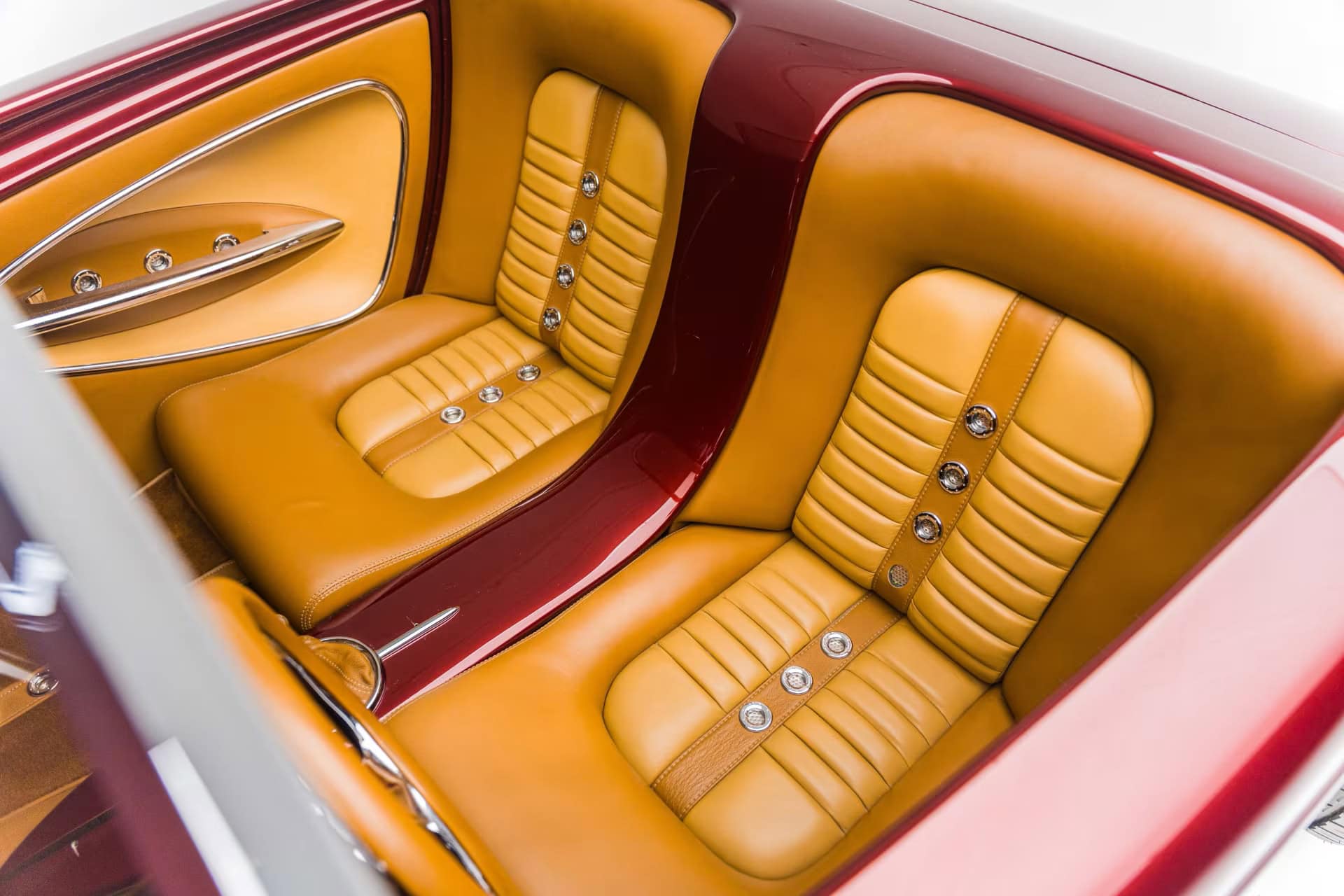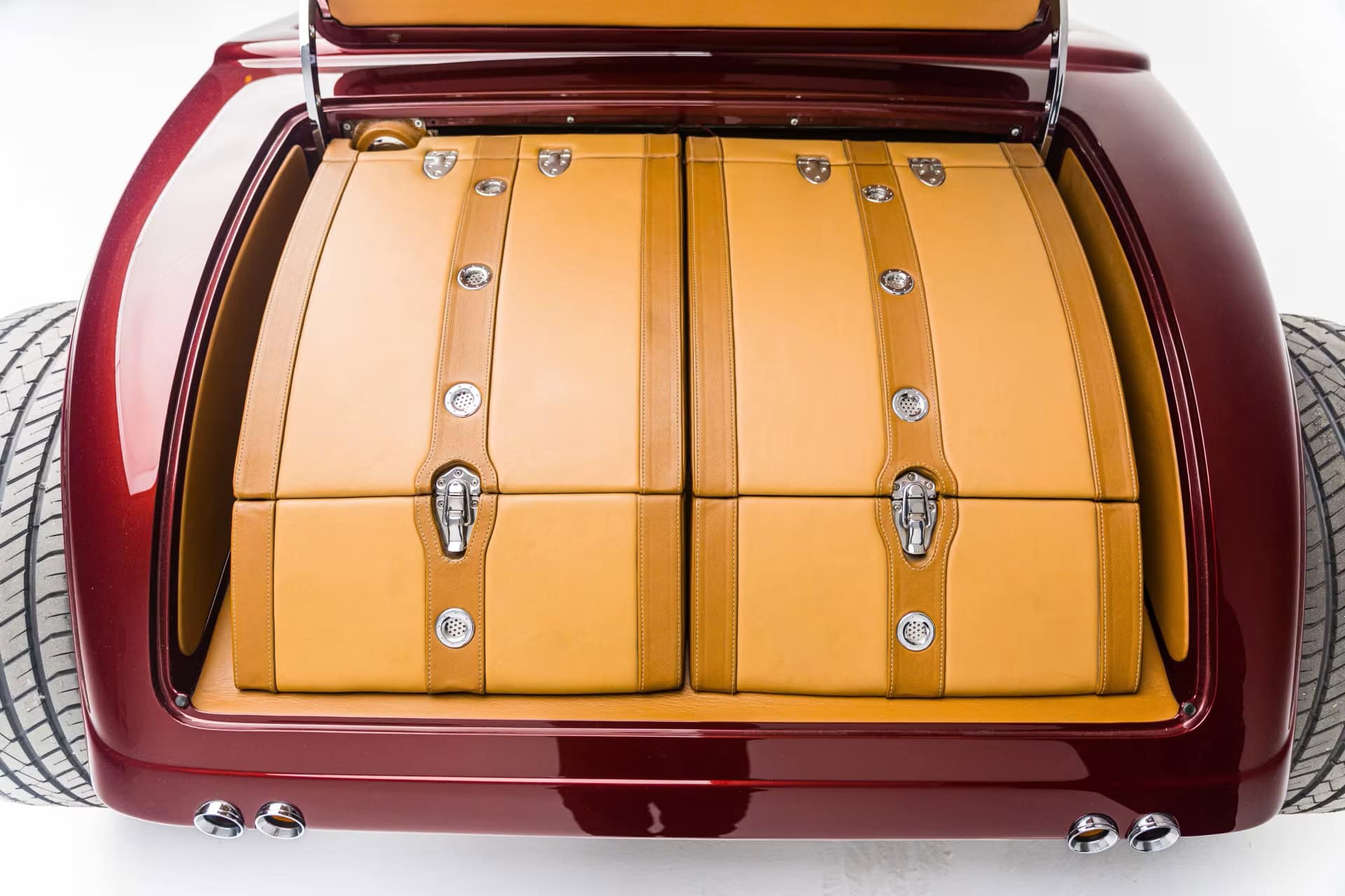 La peinture et la carrosserie ont été réalisées par “Palmer’s Custom Paint & Body” de Camarillo en Californie, et l’espace personnalisé super sympa à l’arrière, ne sert pas de coffre à bagages mais s’avère être un rangement pour “piqueniquer” avec “mini cave/bar à vin”, le tout conçu pour une harmonie haut de gamme décalée dans le temps et la fonction… À l’intérieur, la qualité “haut de gamme” se poursuit avec du sur mesure réalisé par les équipes de “Ron Mangus Custom Hot Rod Interiors” de Rialto, Californie, qui propose toutes sortes de touches sympas…