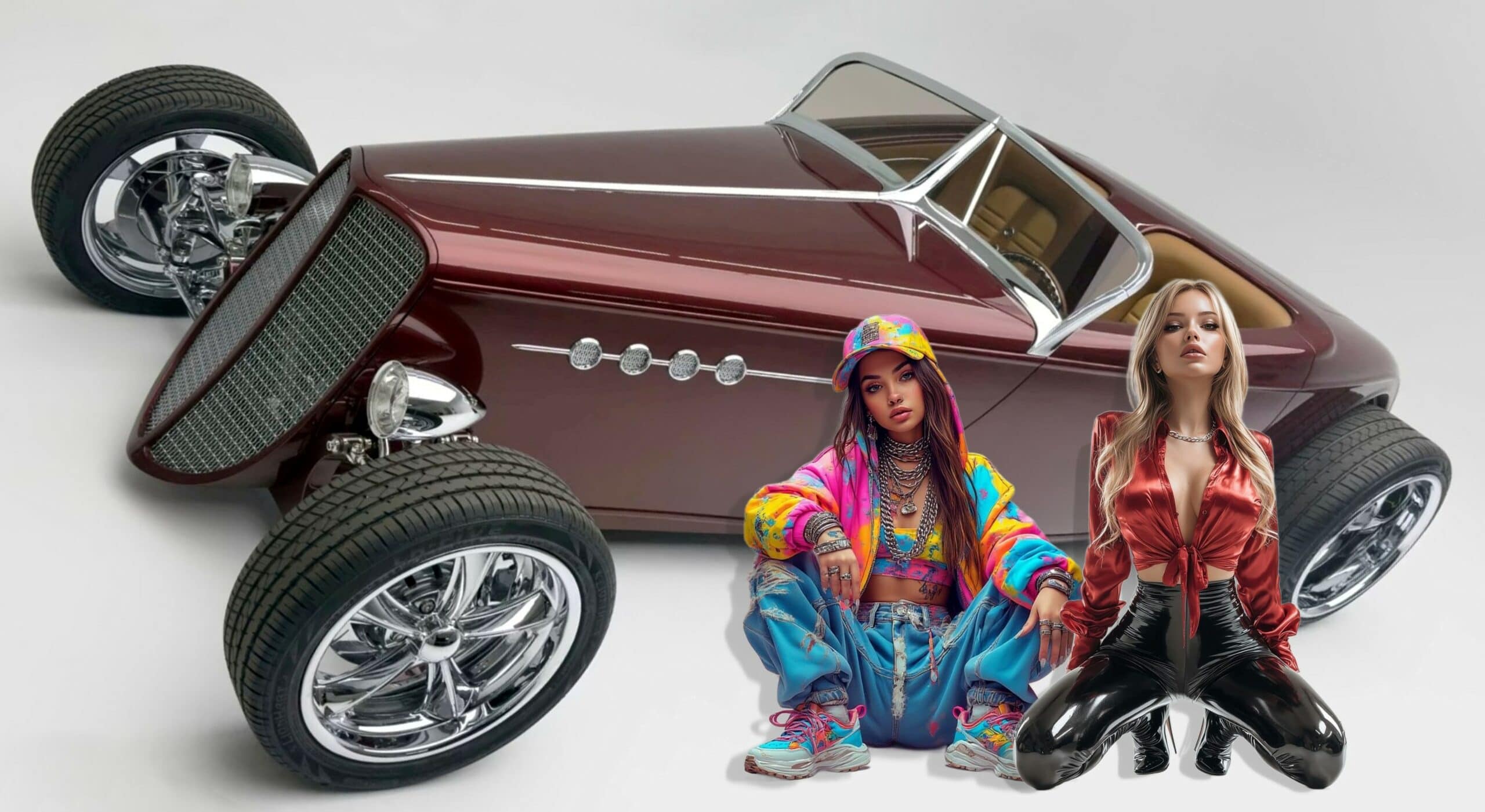 Le Hot Rod “Possessed” est un Hot Rod classieux plutôt que classique en termes d’apparence, qui se distingue du “Vulgum Pecus” formant “la masse” des Hot Rodder’s, par son capot trop allongé, ses jantes en aluminium usinées “uniques” et son ensemble de bagages pour “pique-nique” façon “First High Class”, conçu pour s’harmoniser avec le véhicule et ses occupants.. (si possible un couple “politiquement-correct” et pas de jeunes lesbiennes comme en illustration… Quoique d’autres photos-projets sexuellement dérangeants existent mais ont été rejetés par la direction de Ford soucieuse de son image ici pervertie.