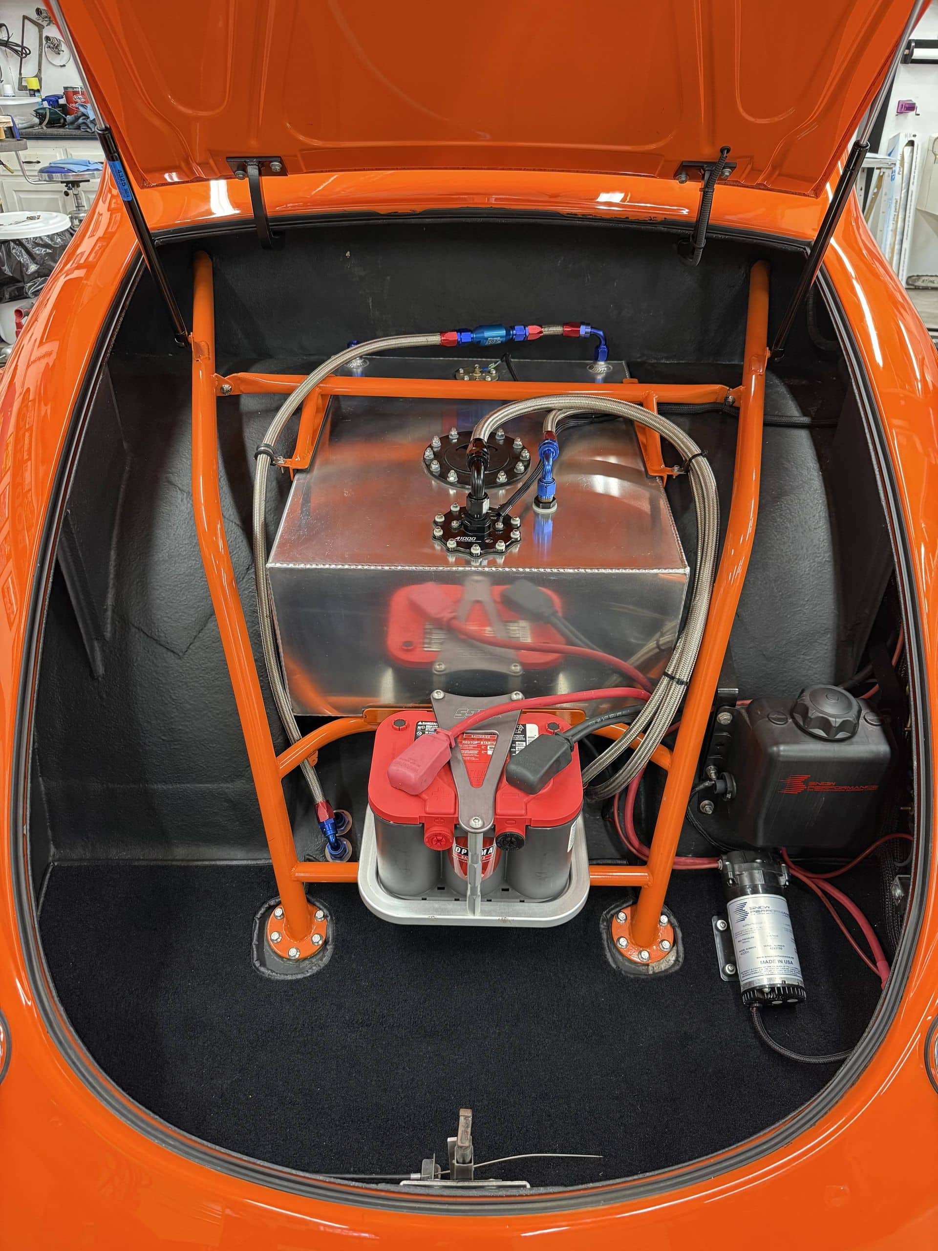 On the exterior, the fiberglass body was painted a House of Kolor metallic orange.