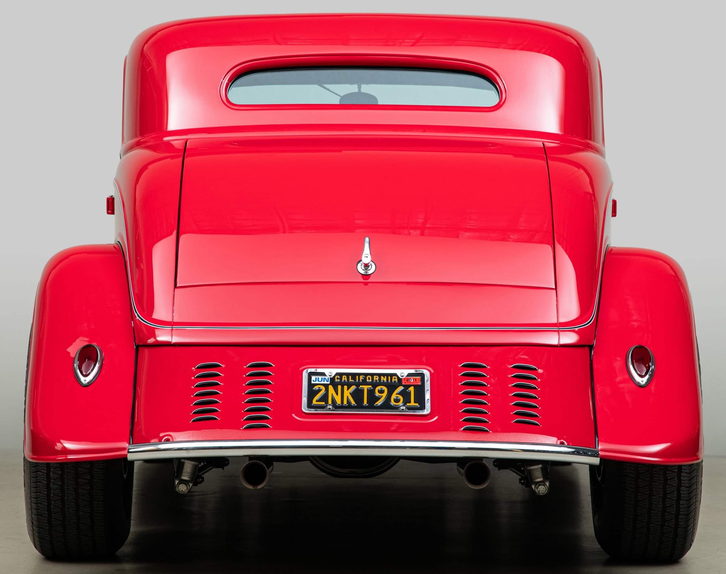Commandée comme une digne héritière de l’emblématique Hot Rod Ford’34 “California Kid”, construite par le légendaire Pete Chapouris chez SO-CAL Speed Shop. Carrosserie et châssis d’origine en acier, fabrication réalisée par Jimmy Shine préparateur senior chez So-CAL. Peinture rouge Murano avec liserés noirs et blancs contrastants réalisés par le “lisseur” Dennis Rickleffs. Essieu abaissé et suspensions à ressorts en épingle.