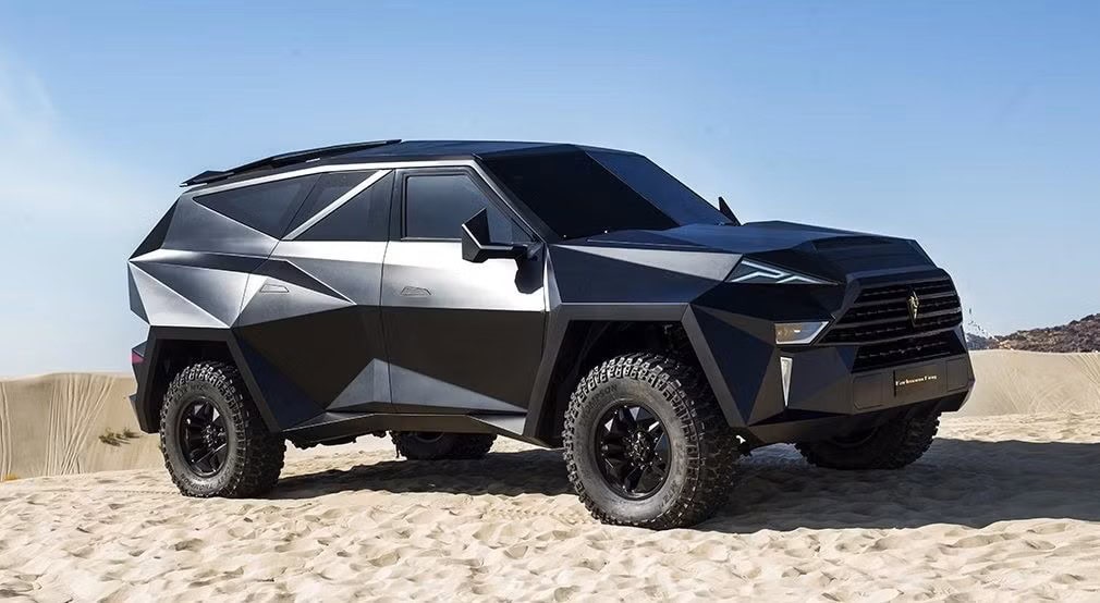 Contrairement aux modèles de luxe produits en série, ce prétendu chef-d’œuvre artisanal est conçu pour ceux qui exigent une exclusivité absolue. Conçu par une équipe européenne inconnue et fabriqué en nombre limité en Italie et aux États-Unis sans plus de précision, il s’agirait d’une fusion (quelque peu étrange) d’esthétique futuriste, de luxe inégalable et de sécurité blindée. Son design audacieux et anguleux ressemble à quelque chose tout droit sorti d’un ancien film de science-fiction caricatural et grotesque. La carrosserie est conçue avec une géométrie inspirée de la Tesla cubik et des avions furtifs, ce qui en fait l’un des SUV parmi les plus intimidants jamais construits. Alors que la version standard est livrée avec de la fibre de carbone renforcée et de l’acier, les clients peuvent opter pour une armure pare-balles complète, ajoutant une tonne et une autre couche de sécurité pour les acheteurs encore plus ultra-riches. Le prix stupéfiant du Karlmann King est dû à plusieurs facteurs dont l’alchimie n’a pas été communiquée. Personne ne sait combien ont déjà été fabriqués et vendus et livrés à des clients (inconnus), mais la dernière fois que nous avons entendu parler de Karlmann, c’était pour ânonner une connerie…