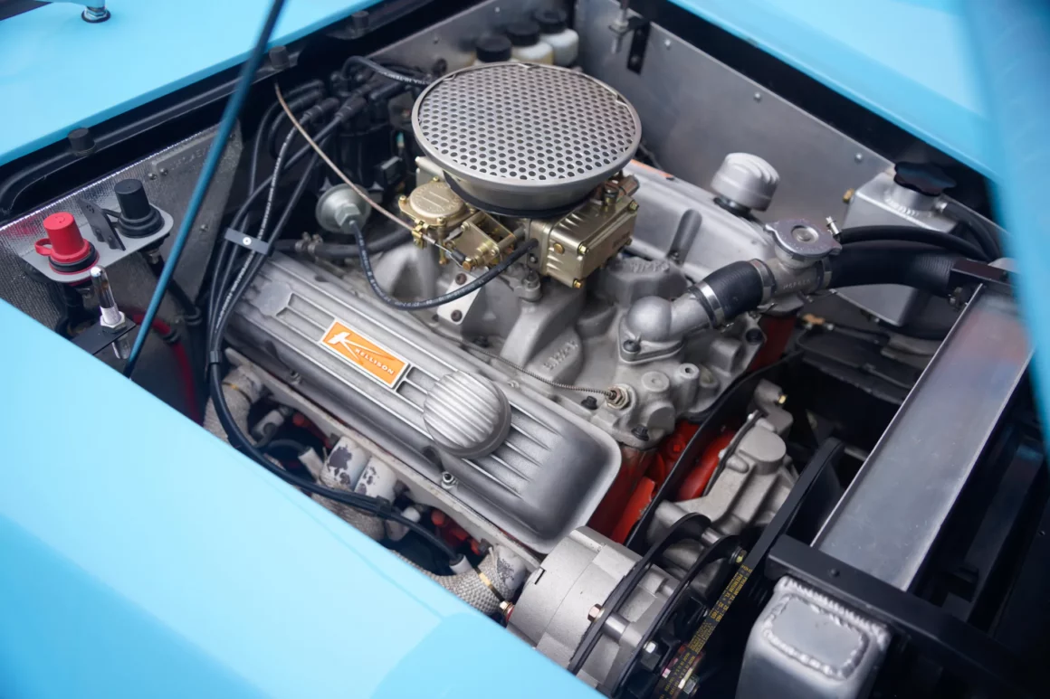 Certaines de ces sociétés ont également développé leurs propres conceptions de châssis, et au milieu des années 1950, Kellison était l’une d’entre elles. Jim Kellison passera le reste de sa vie en tant qu’entrepreneur dans le monde de l’automobile, réparant d’abord des voitures avant de se lancer lui-même dans la conception de voitures et vendant des kits de carrosserie en fibre de verre ainsi que des voitures complètes. Les voitures les plus célèbres construites par Jim sont les 6 véhicules de la série Kellison J, châssis J1 à J6 en production depuis la fin des années 1950 jusqu’à la fin des années 1960. Soit 10 ans pour 6 voitures… Leur style était remarquablement avancé pour l’époque. Simplifions les chiffres de production par une voiture tous les 2 ans… Mais, en plus, Jim Kellison construisait d’autres automobiles dont des voitures de Formule V, des bateaux, des buggy’s et plus encore… Cette Kellison J-4EX a été récemment remise en service, avec une nouvelle peinture extérieure Cotswold Blue et un nouvel intérieur fini à un niveau élevé.