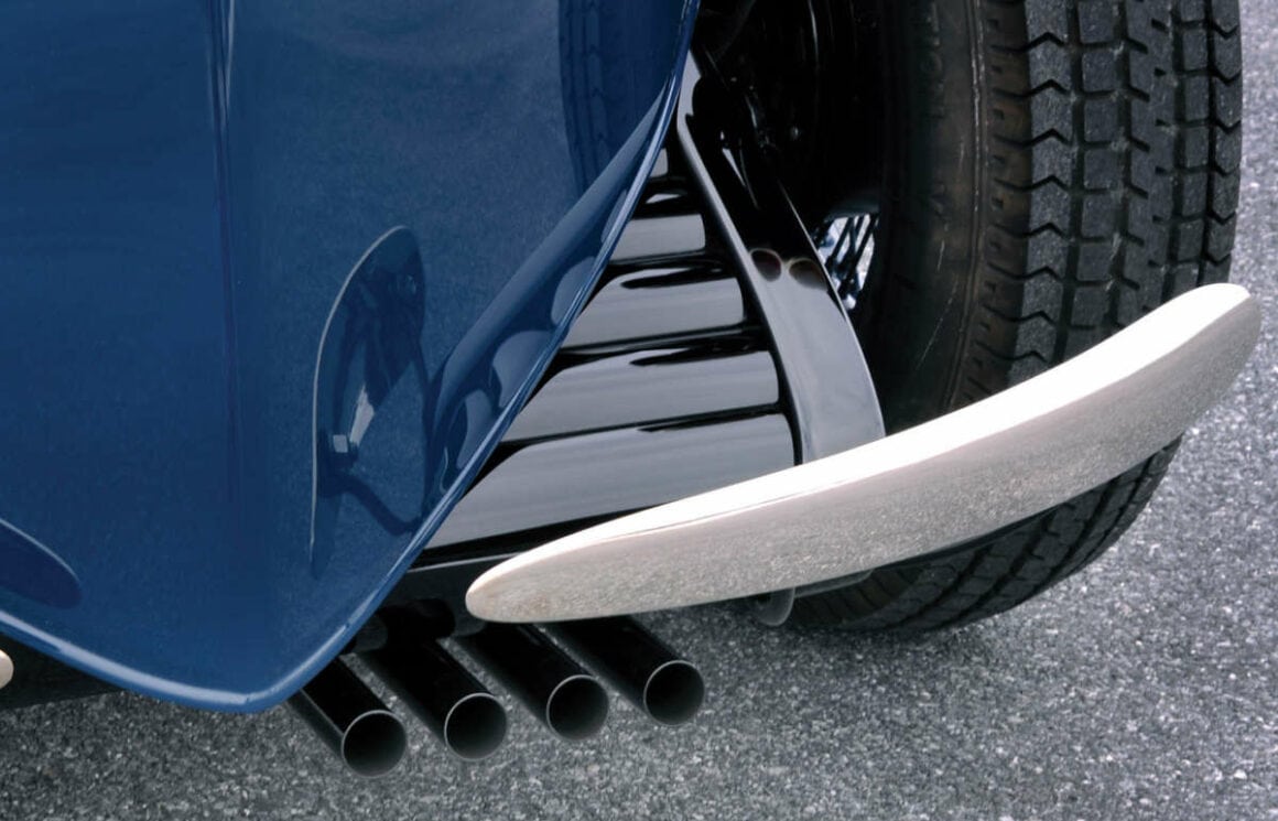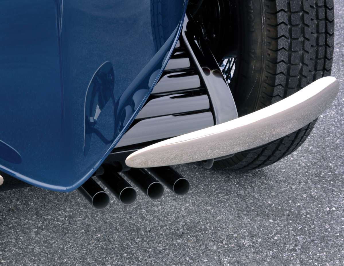 -Des marchepieds incurvés en trois parties sur mesure ont été fabriqués en aluminium tandis que les quatre ailes ont été fabriquées en acier. L’arrière est un traitement en forme de queue de bateau inspiré des voitures de course et de sport construites par des entraîneurs des années 1920 et 30, mais avec une configuration complètement différente en dessous. Donc, tout compte fait, c’est comme les Beach Boys chantaient : “Vous ne savez pas ce que j’ai. C’est mon coupé Euroliner”…