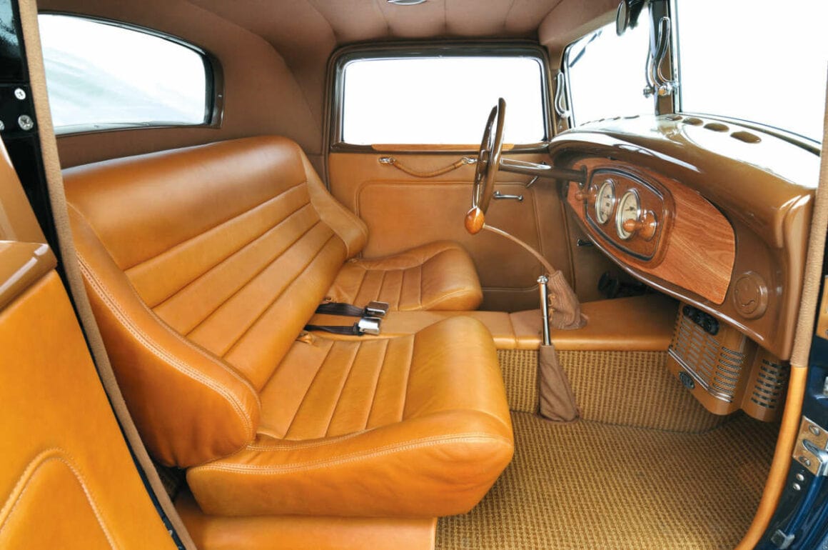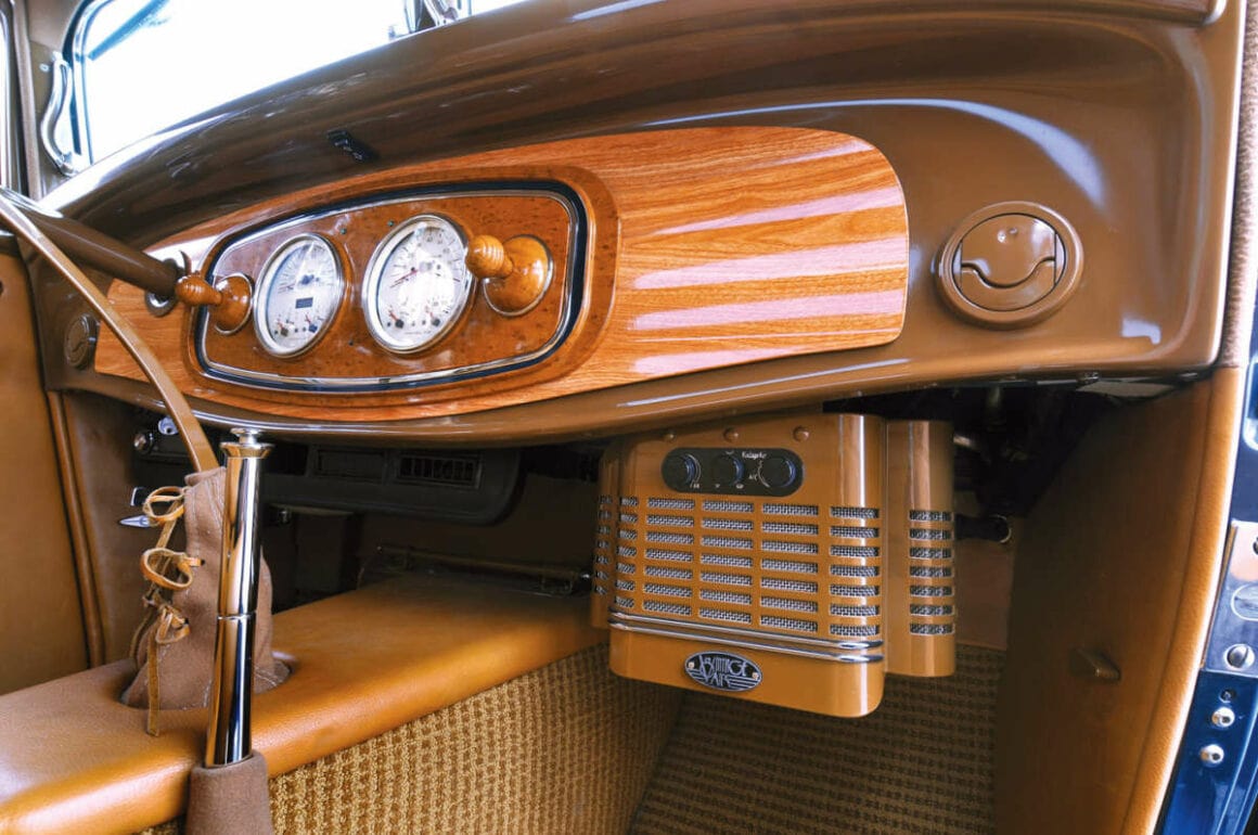 -Je me f… totalement de votre introduction, aux USA tout le monde s’en f… Les Hot-Rodders vont s’en f… Même vos lecteus vont s’en f… Ils retiendront MA version qui est un hommage aux carrosseries européennes… Paf dans la gueule ! Rien à f… Ce qui m’importe c’est d’avoir un article dans GatsbyOnline sans rien payer. Point. L’avant repose sur les ressorts Super Slide “Posies” et un essieu Super Bell “I-beam”. Un Tableau de bord personnalisé dissimule le système moderne d’air conditionné “Vintage Air HVAC”. Le sens des nervures et du grain des boiseries a été appliqué de manière experte façon “Posies” sur le tableau de bord. Si ce n’est pas indiqué dans l’article, il n’y a pas d’article. Donc c’est du donnant-donnant. Voilà, c’est simple et cool.