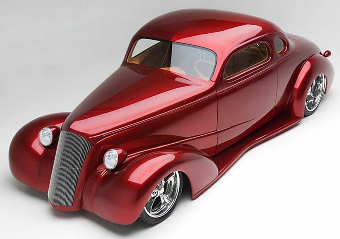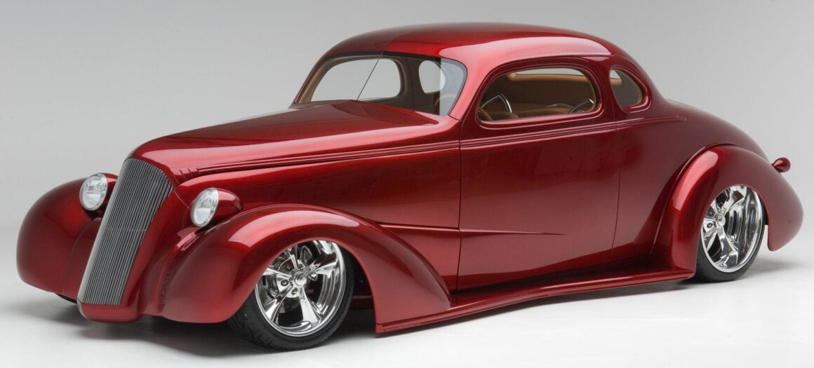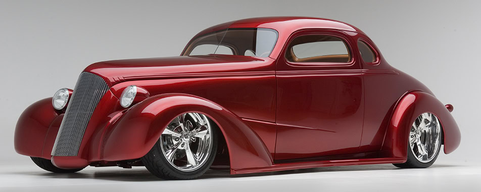 Bien… On passe “enfin” à cette Chevrolet Coupe “Cavallo Rossa” vintage de 1937 construite sur mesure avec une élégante coloration bordeaux, qui est publiée ici pour vous “changer les idées”... Un peu de rêve pouvant vous apporter du bonheur pourrait toutefois s’avérer déprimant de ne pas pouvoir ni l’acheter, ni savoir faire la même auto et pire, dans les deux cas, se heurter à une quasi impossibilité de l’immatriculer en Europe… Cette “Cavallo Rossa” est une Chevrolet 1937 reconstruite sur mesure et donc largement modifiée pour créer un Kustom-Hot-Rod unique et accrocheur. L’abaissement de la ligne de toit lui donne une apparence plus élégante et plus agressive. Le nom “Cavallo Rossa” se traduit par “Cheval rouge” en italien.
