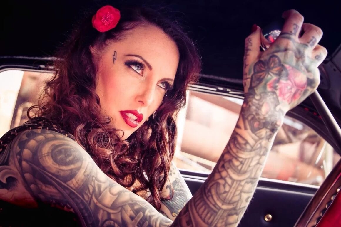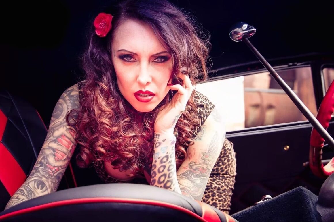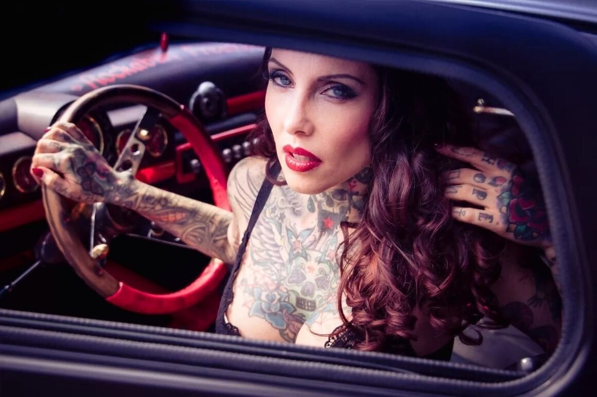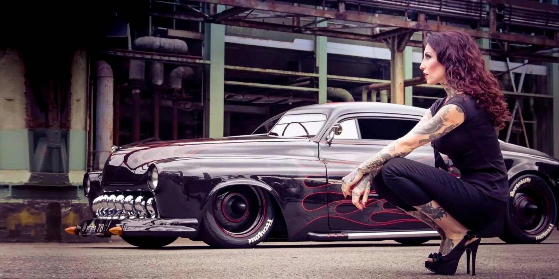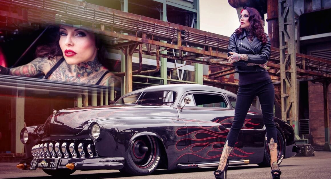 C’est tout un pan de l’histoire du Rockabilly et de la Kustom Kulture populaire américaine, qui est étalé dans cet article richement illustré. C’est comme une gerbe d’indigestion qui slache avec moultes éclaboussures devant vos yeux ébahis : du bruit, de la fureur, de la fumée et de la testostérone aussi… Béééérk ! On s’intéresse également à Makani Terror et ses tatoo’s en particulier, c’est bien plus qu’une mode, c’est un art de vivre ! Pour revivre pareille affaire, prenez une vieille guimbarde, genre vieille américaine Mercury coupé d’avant des années ’50 ’60, boostez-la : Pneus XXL, moteur gonflé, châssis et “suspensifs” surbaissés, look tapageur, vous y êtes ! Vous avez votre Kustom Rockabilly ! Il ne vous reste plus que la tenue, mi-voyou, mi-garagiste old school, mi-guitareux-gratteur de zizique rockabilly des origines, bien rageur et tatoué partouze !