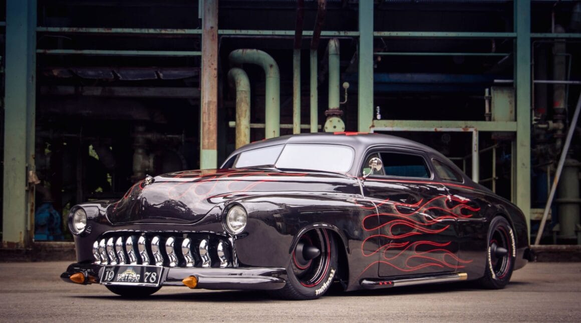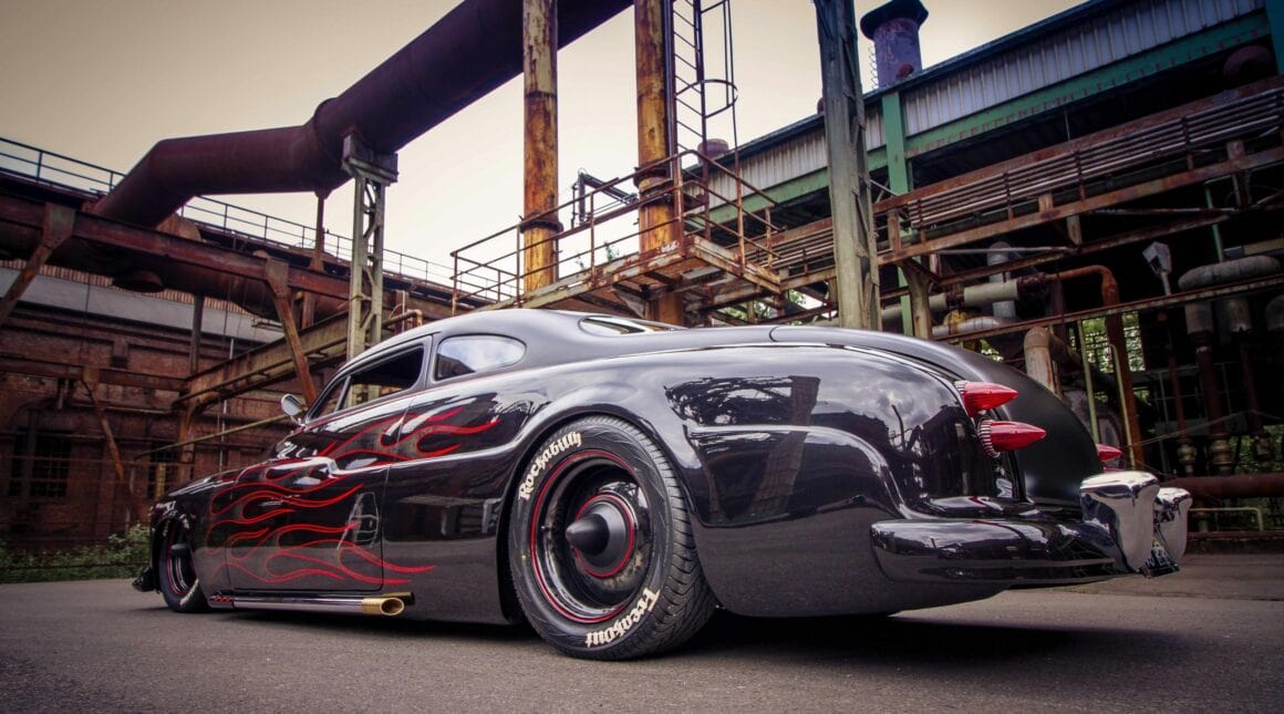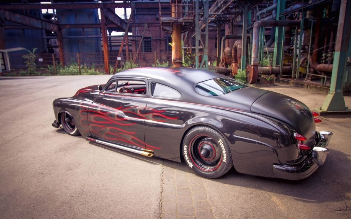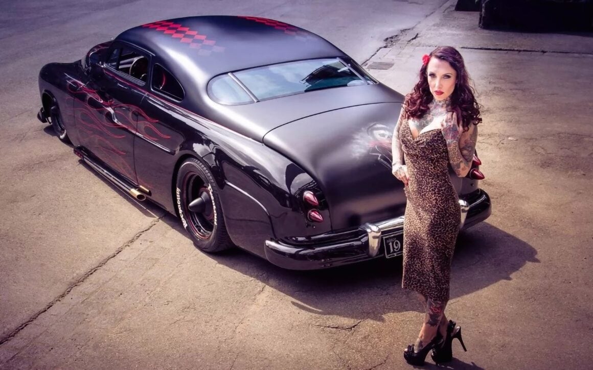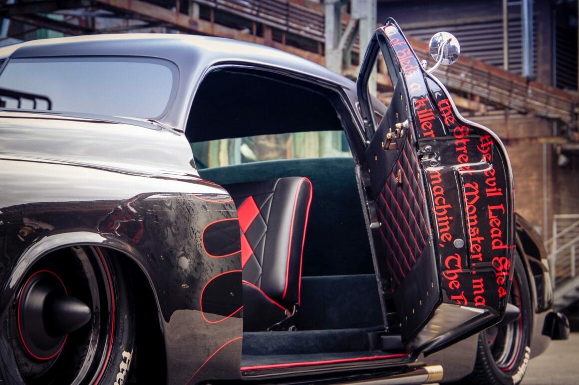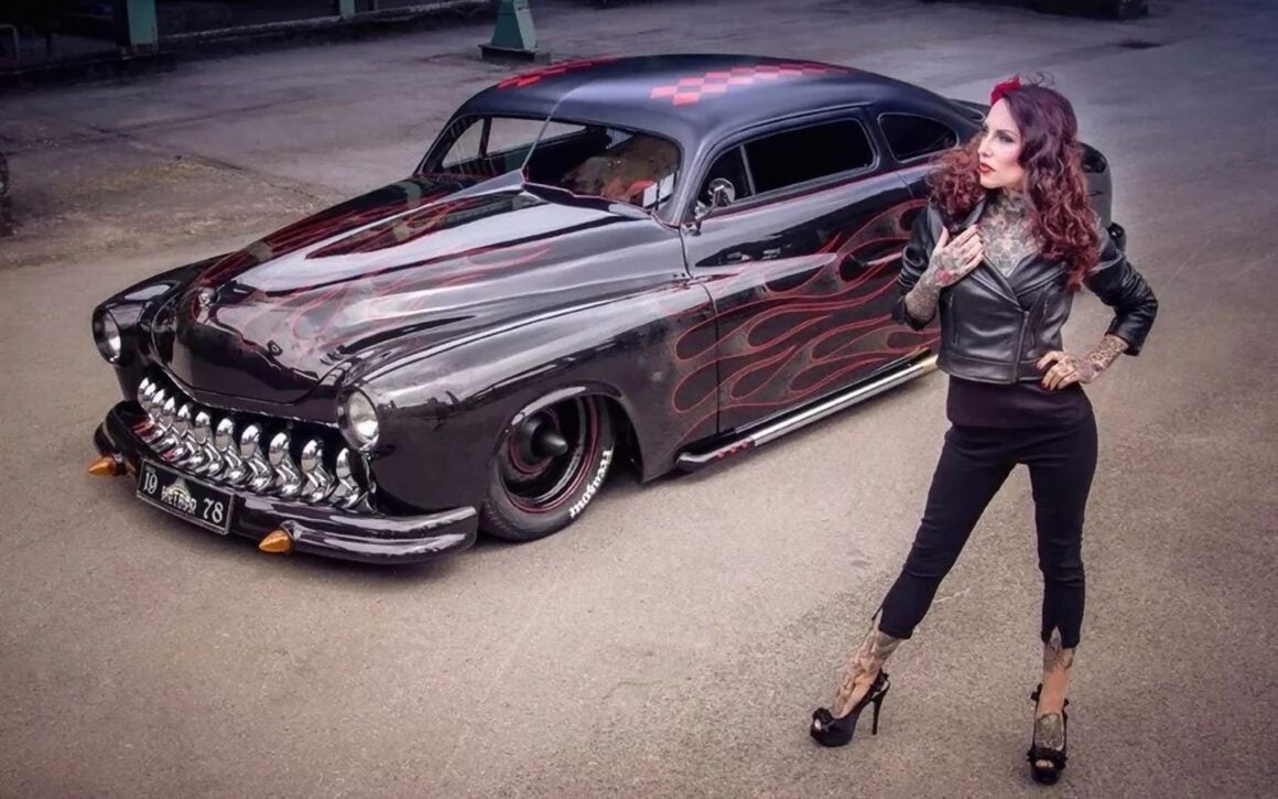 J’en reviens donc à l’histoire de la Mercury vedette de cet article qui est devenue épique en 1957, lorsqu’un Greaser a acheté une 49’Mercury avec son premier argent auto-gagné dans sa phase de tempête et d’envie, également appelé “Shuffle” en Autriche… Le chariot était semblable à un tas d’ordures assez délabré, mais le Greaser était déterminé un jour à en construire un kustom vraiment gros. Mais cela prendrait un certain temps, car c’était un jeune rockeur sans charbon, qui n’avait en tête que de la musique rockabilly, les filles suceuses chaudasses, de la pommade grasse pour les cheveux et des idées “Kool” dans sa tête. Après une nuit de danses dans une spéléologie grassement couillue, il s’est battu avec d’autres rockabillies, renversant un gars avant qu’il ne puisse l’achever lui-même.