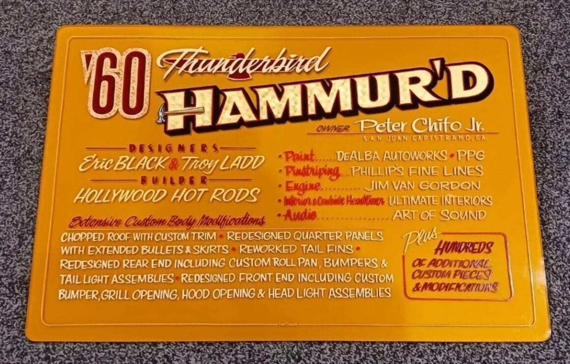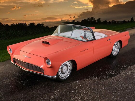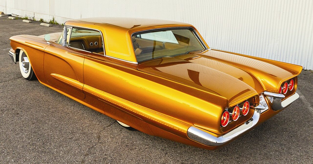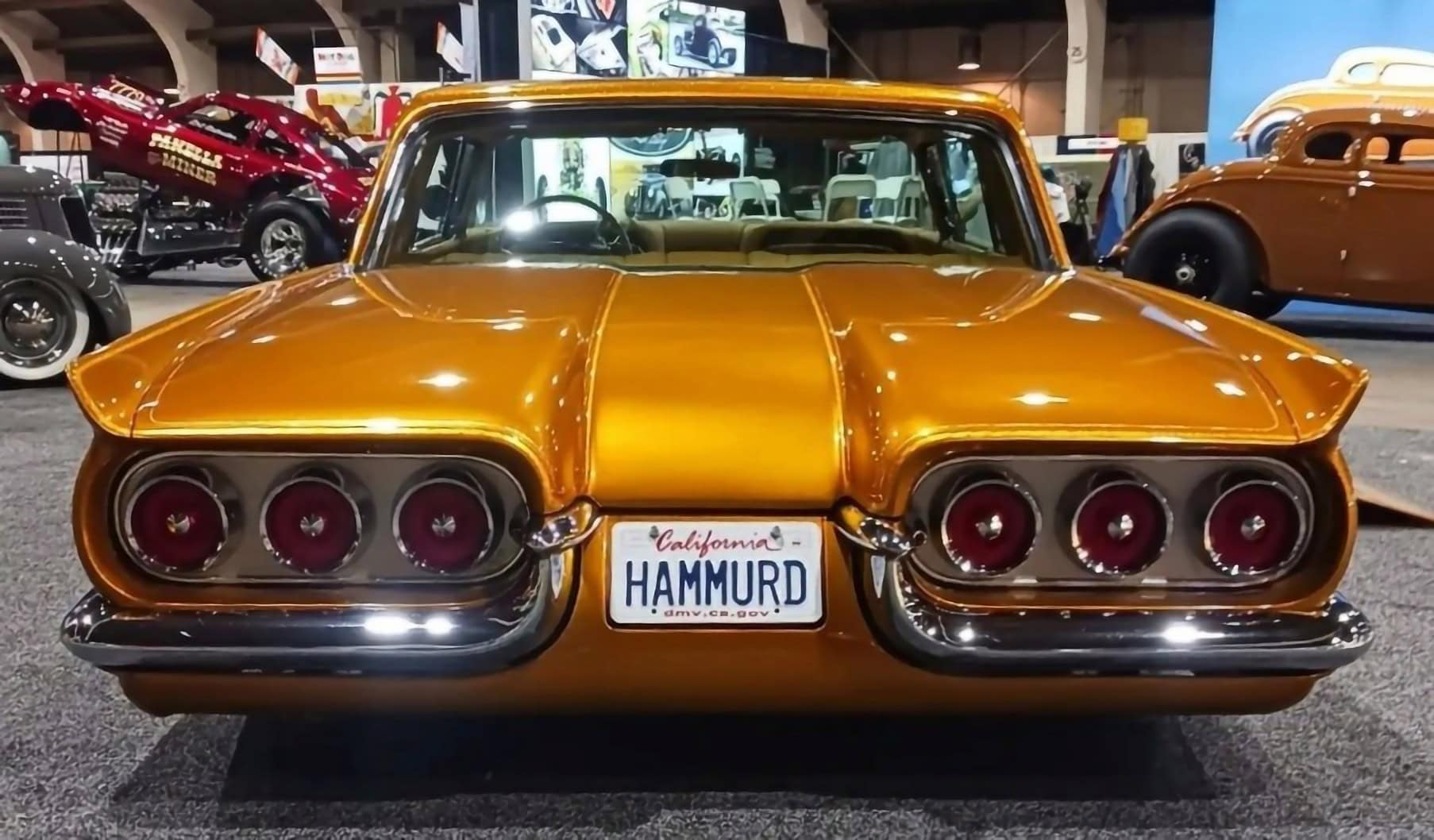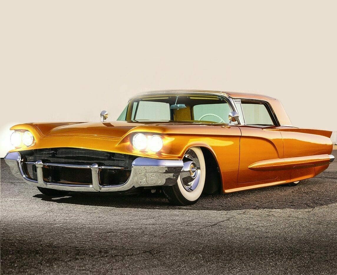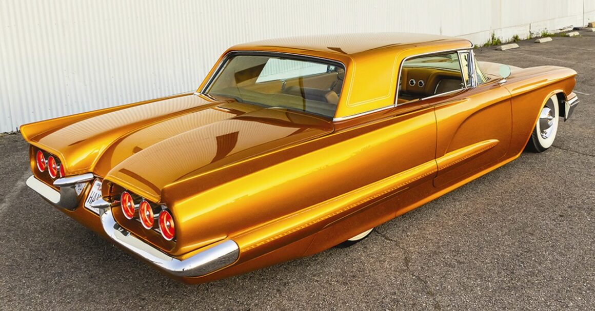 L’œuvre comprend une paire de baquets avant Ford d’origine, la garniture de toit est teinte en cuir de vachette doré pour correspondre aux sièges. La T-bird personnalisée a fait sa première sortie au Grand National Roadster Show 2024 où elle a remporté plusieurs prix haut de gamme, en premier dans la classe Radical Hardtop/Sedan et le “George Barris Memorial Kustom D’Elegance”. Voilà, c’est terminé… On… En fait “moi” pour vous en avons “fait le tour” en photos. Je suis le premier à déplorer un manque d’unicité créant une impossibilité de réaliser une mise en page “clean”, “soft”, “pro”, plus léchée et attrayante, quoi que, vous conviendrez que tout n’est qu’illusion, preuve en est par les photos du Sema show qui n’a manifestement pas le standing imaginé… Illusions…