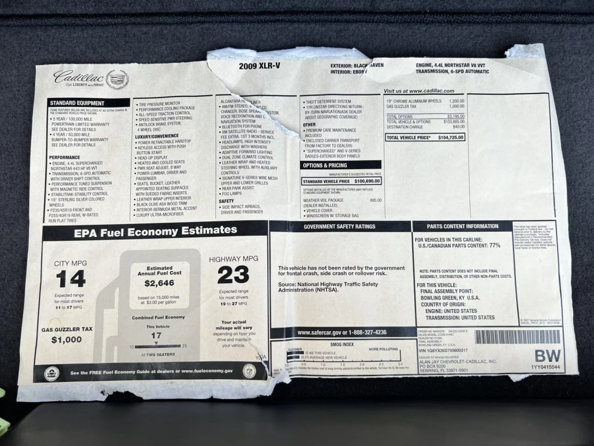 Comme c’était désormais la mode chez ses rivales directes (Aston-Martin et Mercedes-AMG), les V8 compressés des XLR-V étaient assemblés par un seul technicien et ensuite tous testés sur un banc. Un gage de sérieux et de qualité selon les constructeurs. ‘était avant tout de la communication marketing, tant chaque moteur est testé pour toute auto avant d’être livré au client final… Malgré ses 1,7 tonnes, un poids presque raisonnable en comparaison des 2 tonnes d’une SL55 AMG avec un peu d’options, le V8 n’est pas à la peine sous la capot de la “Cad” et lui offre outre une sonorité envoûtante !