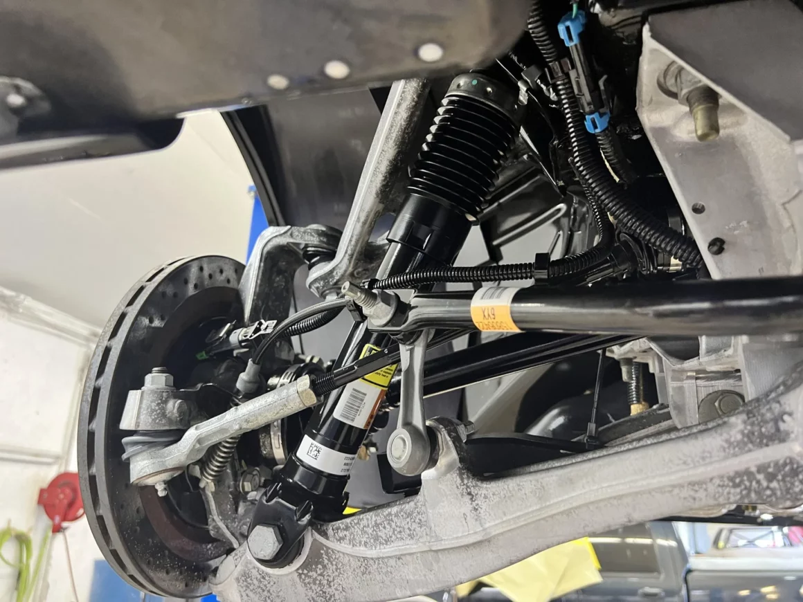 Les tapis de sol sont en moquette de luxe avec logos “XLR-V” brodés, roues en alliage d’aluminium de qualité supérieure et garnitures intérieures en bois. La suspension adaptative en vedette de la Cadillac XLR-V se nourrit d’ un liquide d’amortisseur magnéto-rhéologique pour un meilleur contrôle de la conduite stupéfiant les masses ahuries. Le système utilise quatre capteurs de déplacement roues-carrosserie pour en mesurer le mouvement sur la surface de la route et réagit en ajustant l’amortissement des chocs presque instantanément.