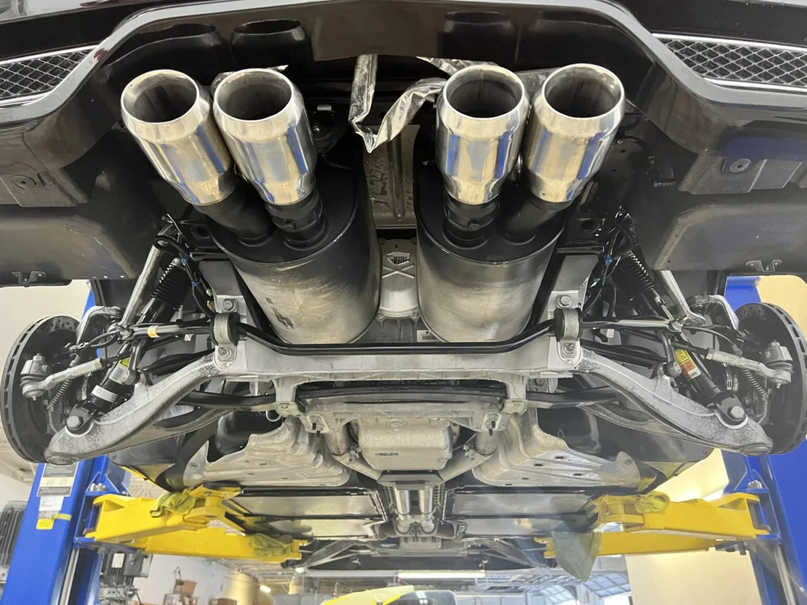 Mais les 129cv supplémentaires gagnés par rapport à la variante atmosphérique ne sont pas à mettre au seul crédit de cet appendice mécanique. Le V8 a été revu entièrement dans ses entrailles afin de pouvoir encaisser cette puissance coquette de 443 chevaux à 6.400 tr/mn et un couple de 57,2 mkg à 3.900 tr/mn. Il est à noter que 90% du couple maxi est disponible dès 2.500 tr/mn. Inutile donc d’ajouter que ce V8 goulu à souhait est puissant mais également très souple. Une souplesse à laquelle participe activement la boîte automatique à six rapports contre cinq sur la version atmosphérique.
