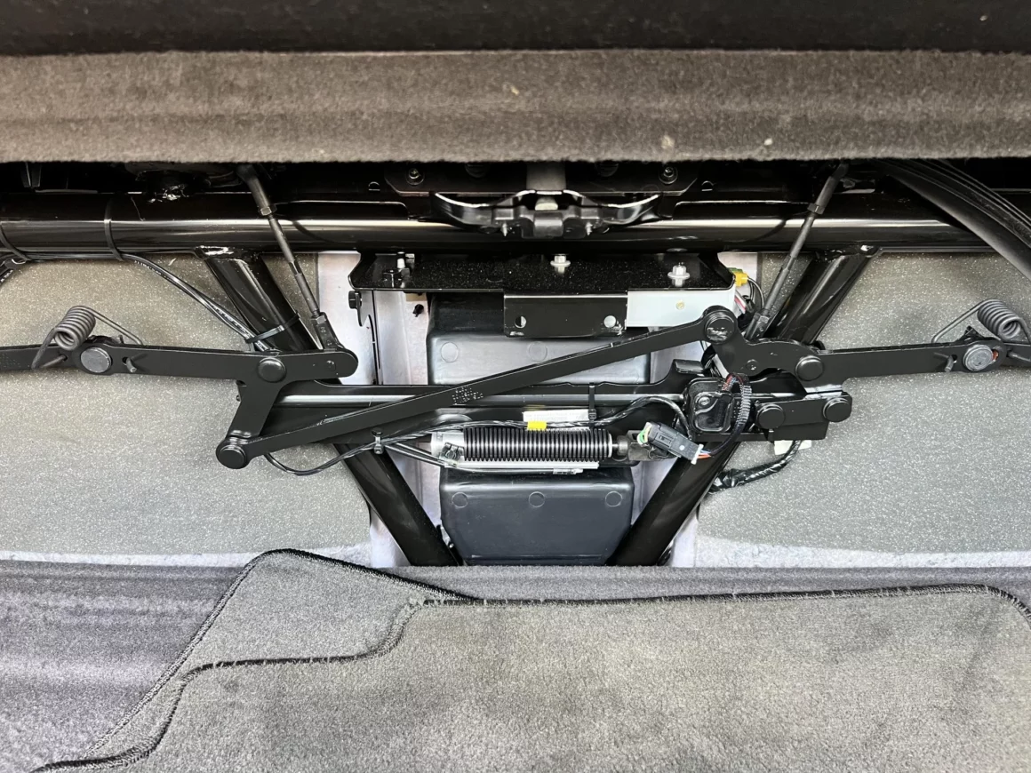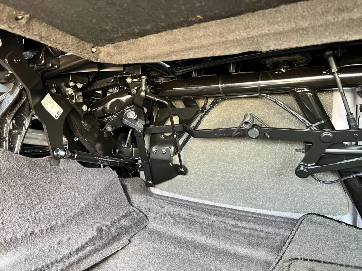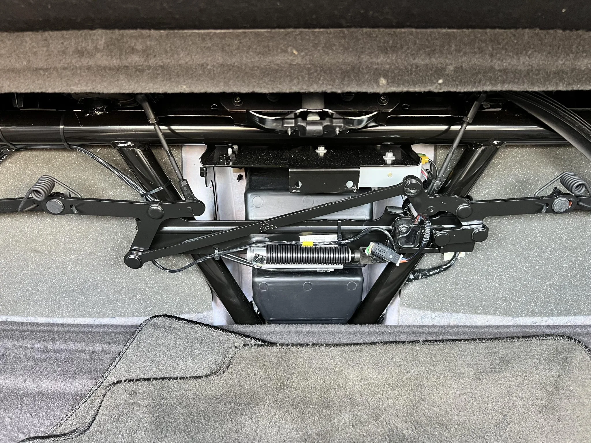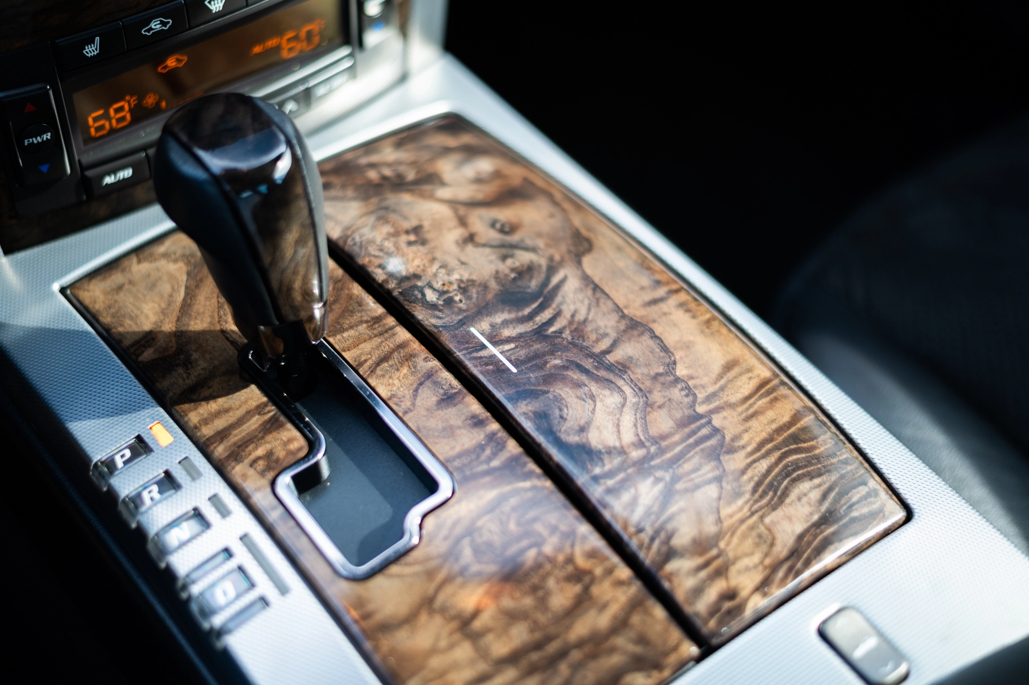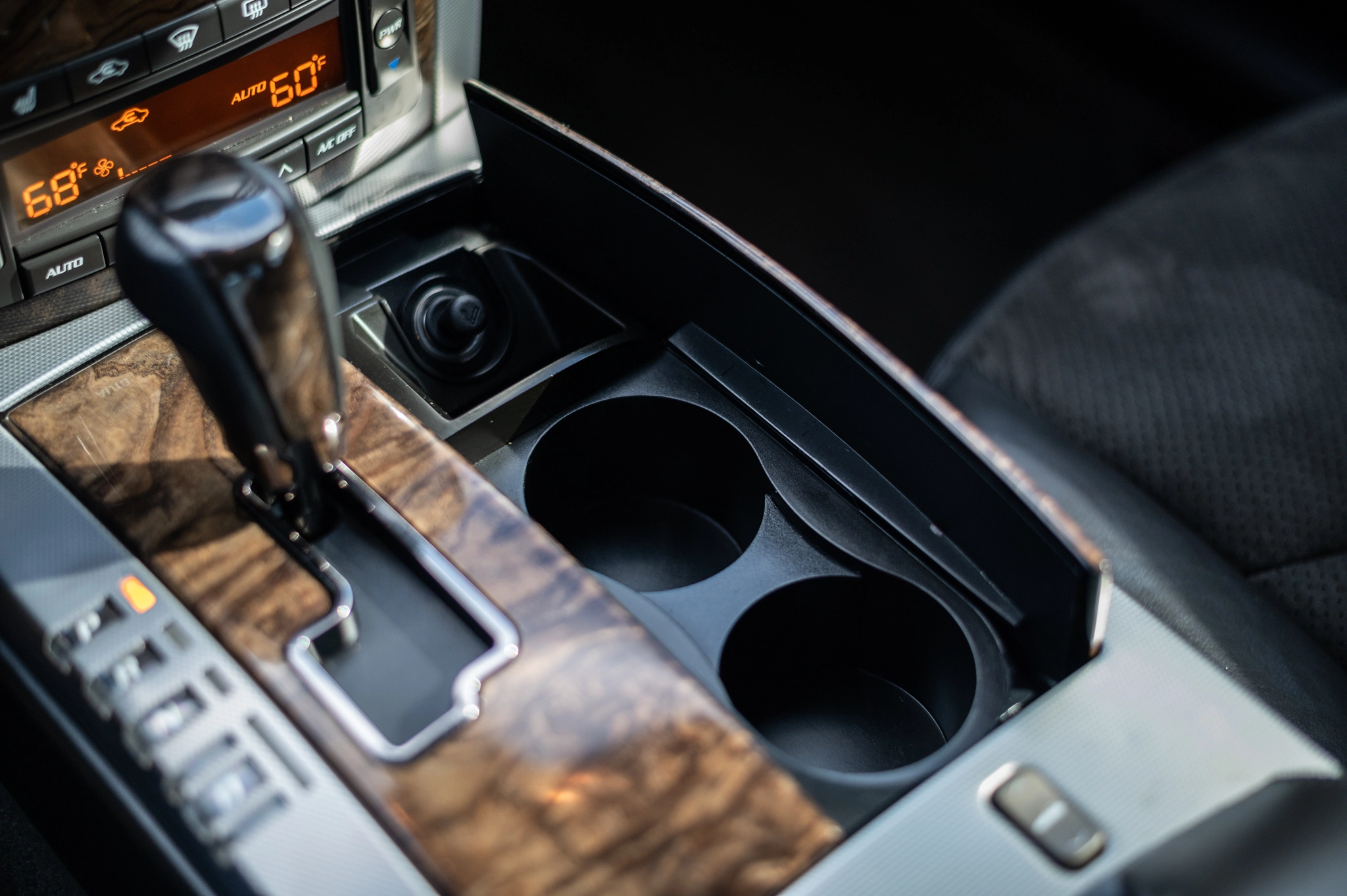 La cabine dispose de sièges chauffants et refroidis à réglage électrique recouverts de cuir d’ébène avec des inserts en daim ainsi que d’une console centrale de couleur coordonnée. Les placages de bois accentuent la console centrale, le pommeau de levier de vitesses et les tirettes de porte, tandis que les équipements comprennent un affichage tête haute, un système audio Bose, un changeur de CD à six disques, la navigation, l’accès sans clé, le démarrage par bouton-poussoir et la climatisation automatique.