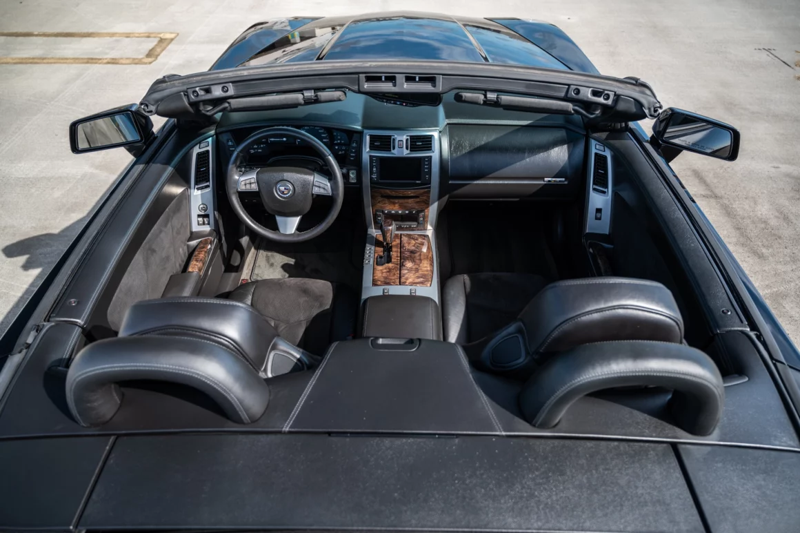 Cette Cadillac XLR-V 2009 a passé son temps aux mains de Naomi Campbell qui n’a pourtant roulé avec elle (et inversement) que 3.900 miles ! La voiture est finie en Black Raven sur cuir ébène et daim. L’équipement comprend un toit rigide rétractable électrique, des jantes multi-rayons polies de 19 pouces, un contrôle magnétique de la conduite, des phares au xénon, des capteurs de stationnement arrière, une entrée sans clé, des sièges avant chauffants et ventilés à réglage électrique, un affichage tête haute, un système audio Bose et la navigation.