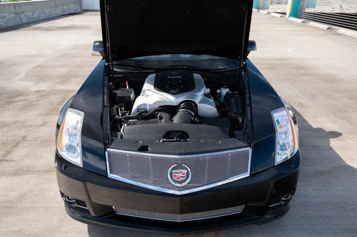 La Cadillac XLR-V est une version hautes performances de 443 chevaux. GM a donné au public un premier aperçu de la XLR-V suralimentée dans sa publicité du Super Bowl, diffusée le 6 février 2005. La voiture a été officiellement présentée au Salon international de l’auto de New York 2005. La XLR-V utilise le même V8 Northstar 4L4 suralimenté que la STS-V et certifié par la SAE comme produisant 443cv, 330 kW et 561 Nm. Le compresseur et quatre noyaux de refroidisseur intermédiaire sont intégrés dans le collecteur d’admission.