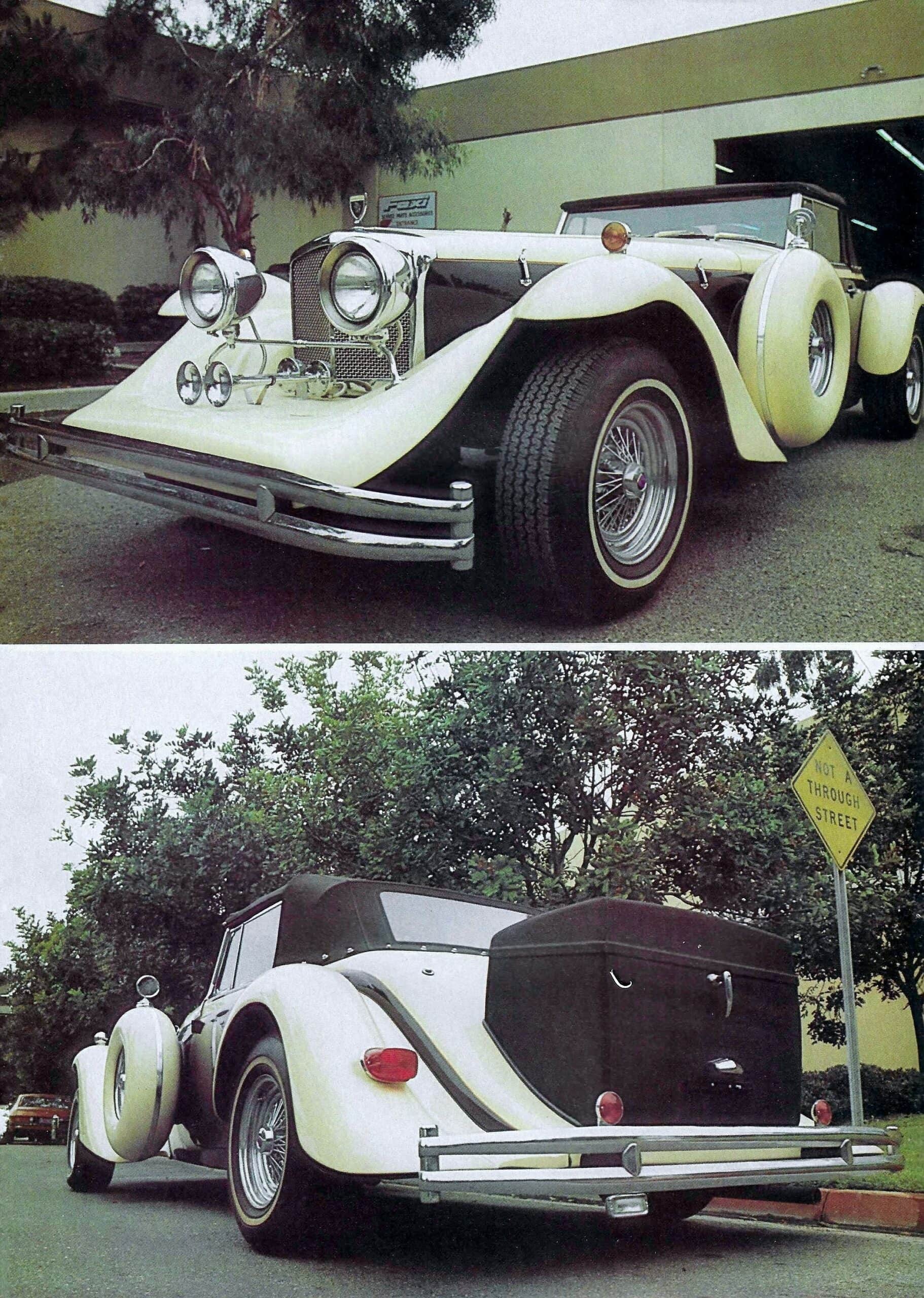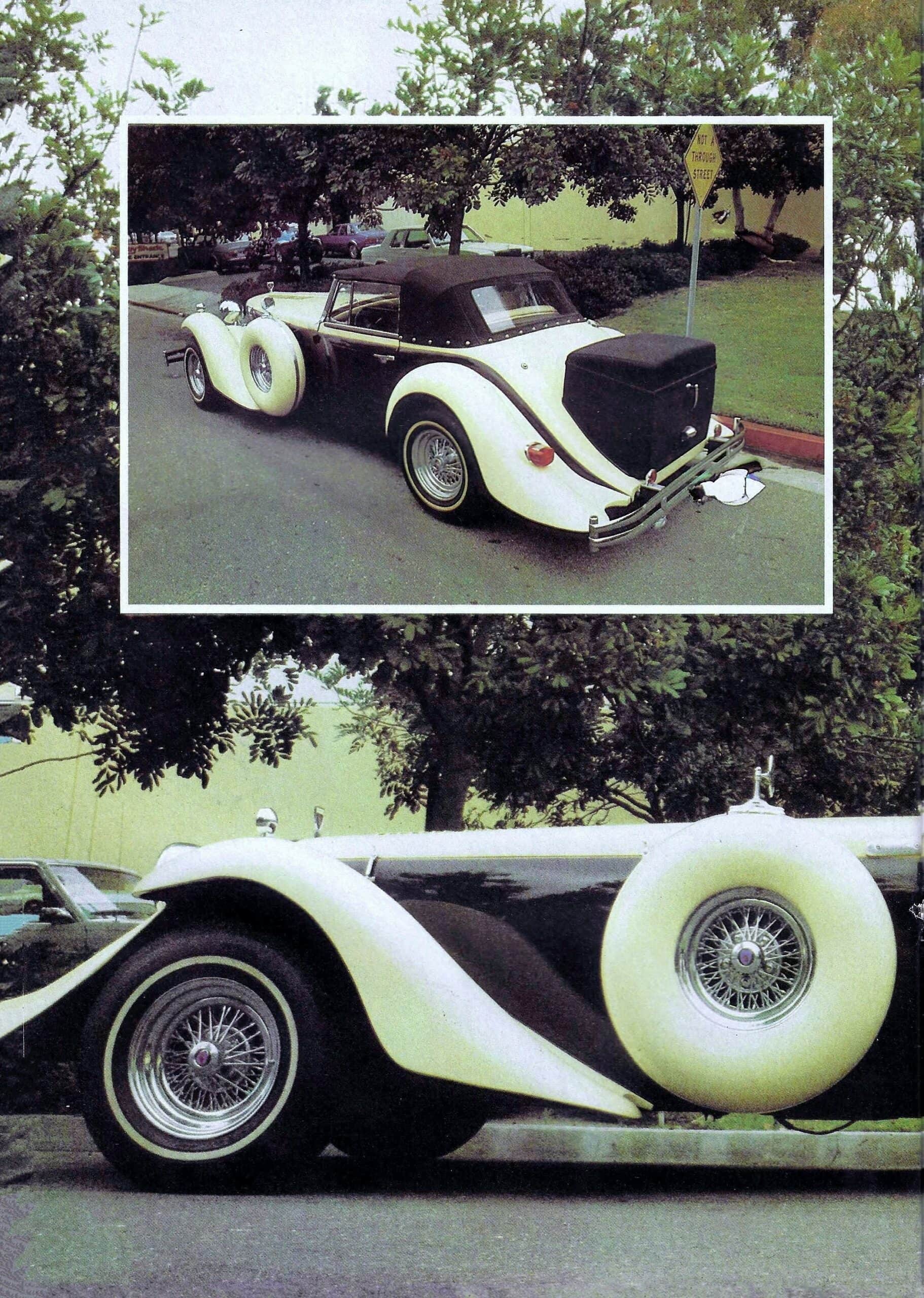 Elle a fait son apparition en 1980, personne ne savait pourquoi Franck Reisner le Boss d’Intermeccanica avait soudain décidé de pasticher Alain Clénet, qui, à cette époque était en route vers une faillite retentissante, tout comme Excalibur et la centaine de garagistes qui s’étaient lancés dans le “marché” (au départ juteux) des réplicas, renommées “Néo-Classiques” pour faire chic, choc et cher lorsque parées et alourdies de gadgets…