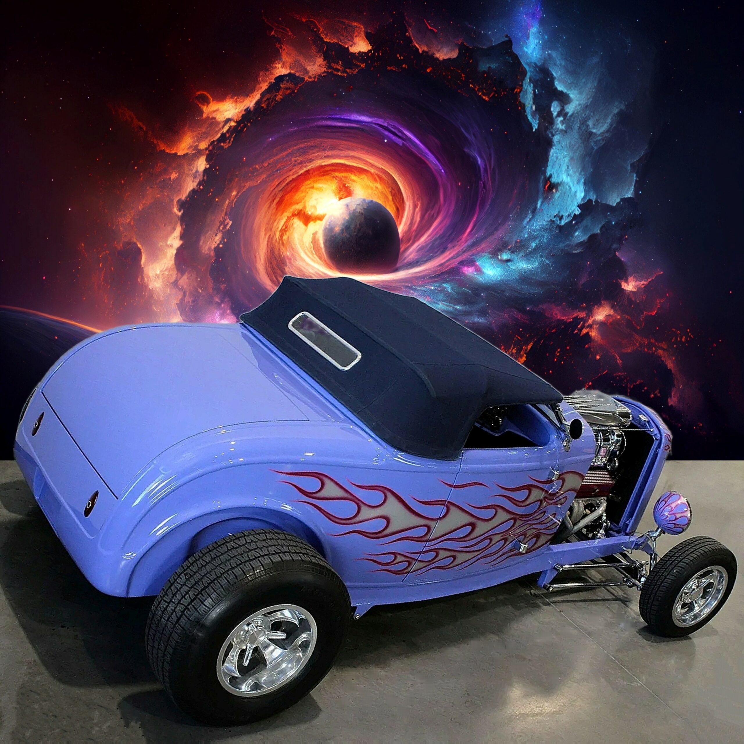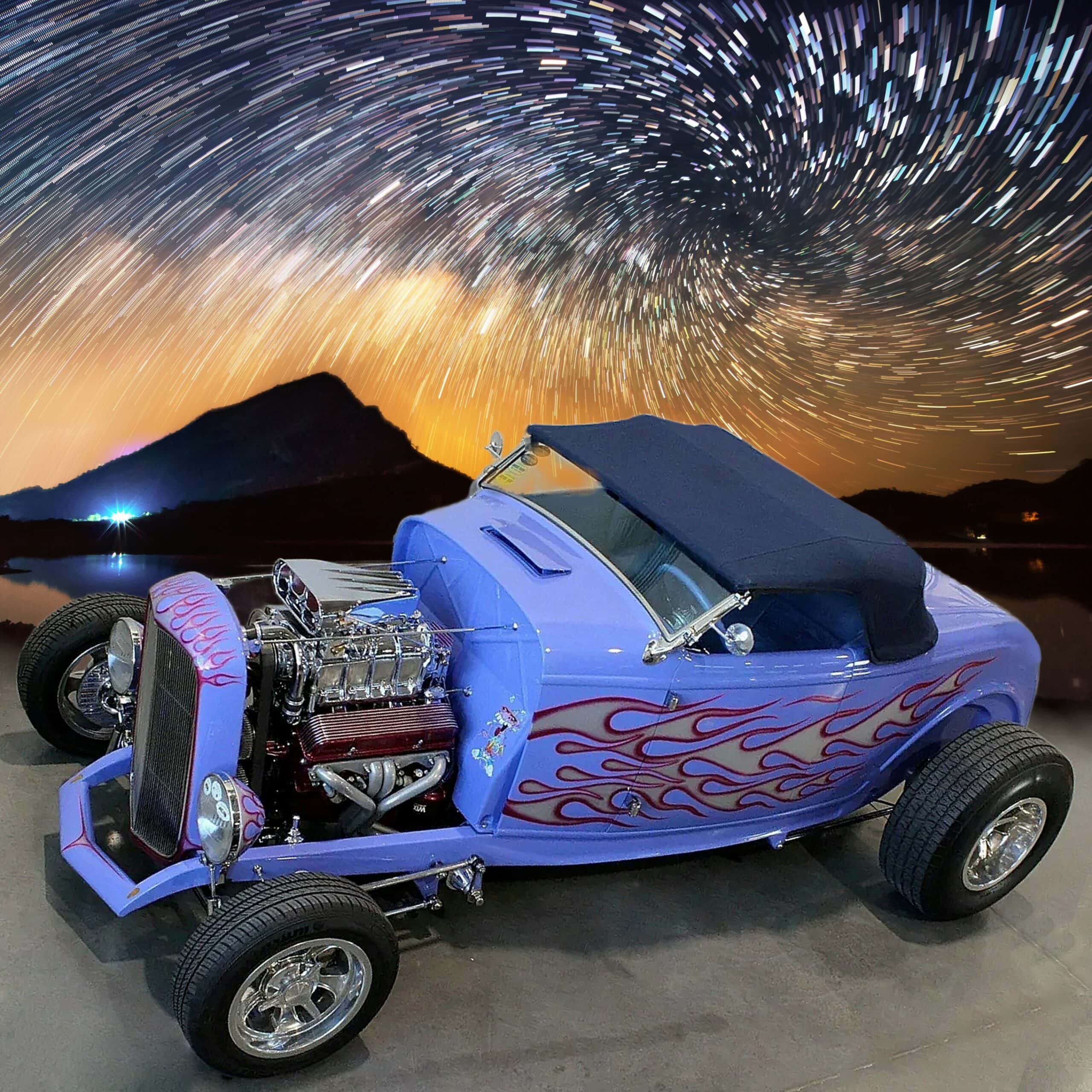 Peut-être est-ce précisément cette capacité à agir de façon irrationnelle qui nous distingue des machines. Laisser libre cours à ses humeurs et à ses émotions, voilà le véritable luxe incarné par un Hot Rod. En réalité, c’est plus qu’une folie roulable. C’est la folie à l’état pur : une liberté radicale, affranchie de toute finalité. Un Hot Rod n’a rien à faire d’autre que juste exister… Après plusieurs coups de téléphone en pleine tête se clôturant d’un uppercut sauvage dans les texticules composant la narration, nous avons enfin trouvé la bonne entrée. J’étais impatient d’en voir pluche… Lors de nos stages de pilotage, nous avons conduit toutes sortes de Hot Rod’s : des grands et des petits, des modèles légendaires aperçus dans des films hollywoodiens à l’époque où je jouais encore avec des Hot Wheels à la maternelle, des Hot Rods flambant neufs tout juste construits, des bolides capables de filer comme des missiles à la poursuite du néant, et même des modèles inexistants. À vrai dire, peu de la plouquesque mondiale a même jamais vu un Hot Rod…