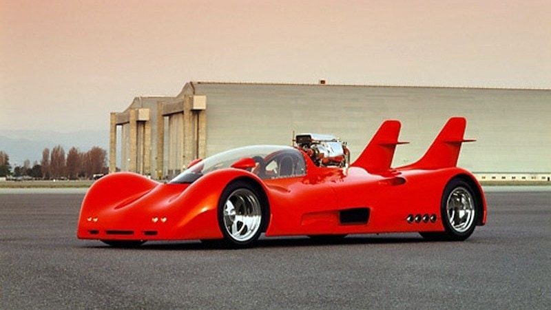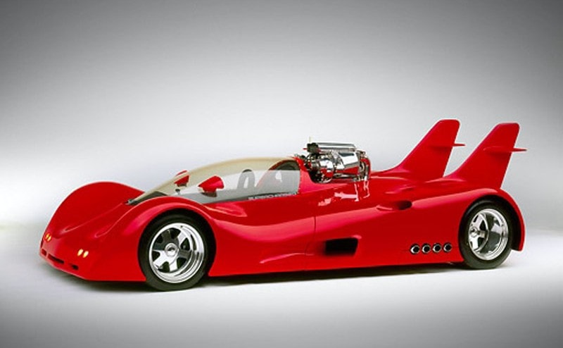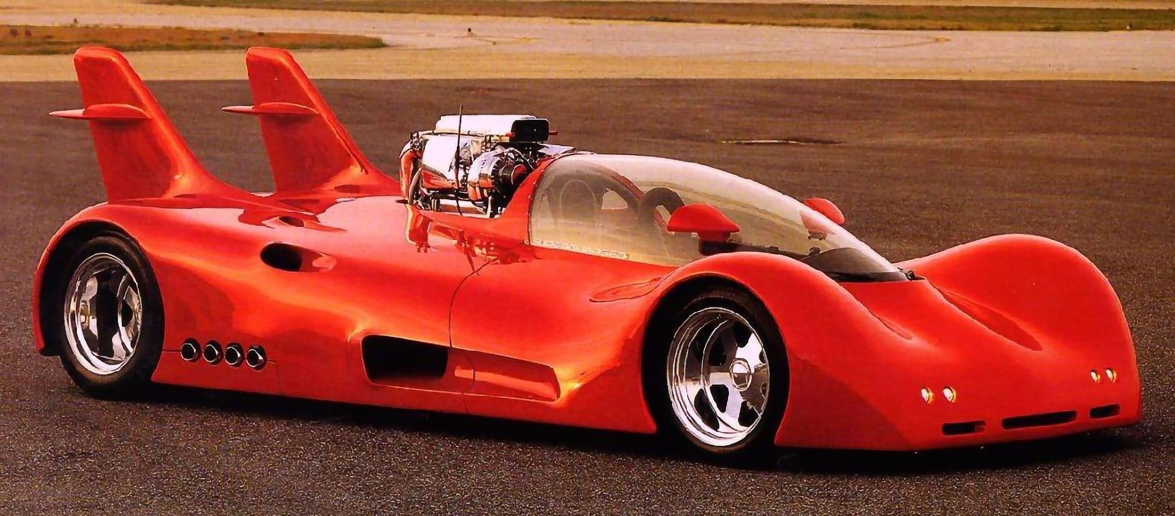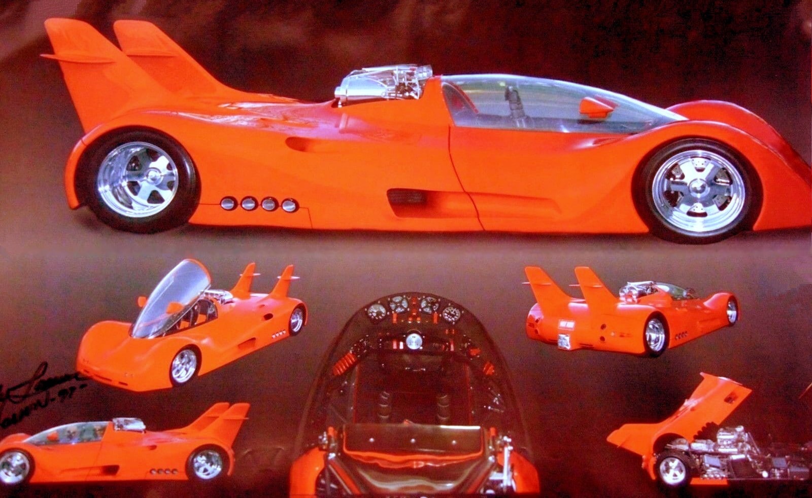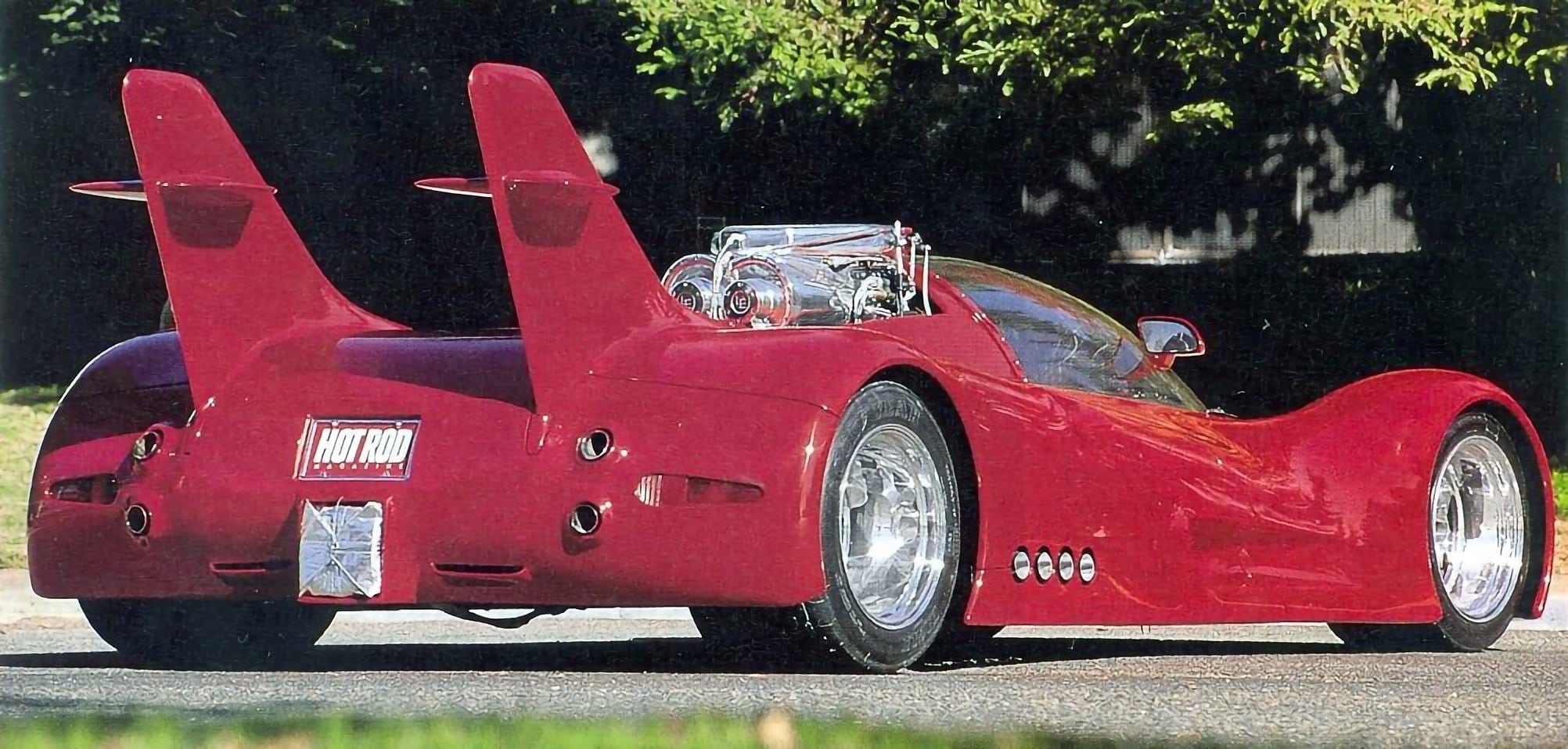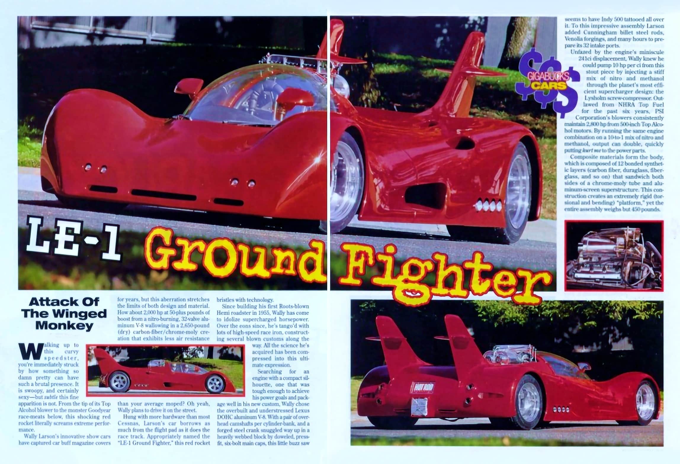 Les voitures d’exposition innovantes de Wally Larson ont fait la couverture des magazines automobiles pendant des années, mais cette aberration qu’est “LE-1 Ground Fighter” a repoussé les limites du design et des matériaux. Une sorte de fusée sur 5 roues disposant de 2.000 chevaux et plus de 50 livres de poussée provenant d’un V8 en aluminium à 32 soupapes avec combustion nitrométhane se vautrant dans une création de 2.650 livres (à sec) en fibre de carbone/chrome-molybdène qui présente moins de résistance à l’air qu’un cyclomoteur moyen ? Waouhhhhh ! Oh oui, Wally Larson avait même l’intention de la conduire en rue équipée de plus de matériel que la plupart des avions Cessna… La “chose” de Willy Larson empruntait en effet autant à l’aire de vol qu’à la piste de course. Nommée à juste titre “LE-1 Ground Fighter”, cette fusée rouge regorgeait littéralement de technologie. Depuis qu’il avait construit son premier roadster “Hemi Roots” en 1955, Wally Larson en était venu à idolâtrer la puissance suralimentée. Au fil des années, il a rivalisé avec beaucoup de bêtes de course à grande vitesse, construisant plusieurs dragsters en cours de route. Donc, toute la science qu’il a acquise a été condensée dans cette expression ultime. À la recherche d’un moteur à la silhouette compacte, suffisamment robuste pour atteindre ses objectifs de puissance et bien emballé dans sa nouvelle version personnalisée, Wally Larson a choisi le V8 Lexus en aluminium à DACT surdimensionné et sous-sollicité.