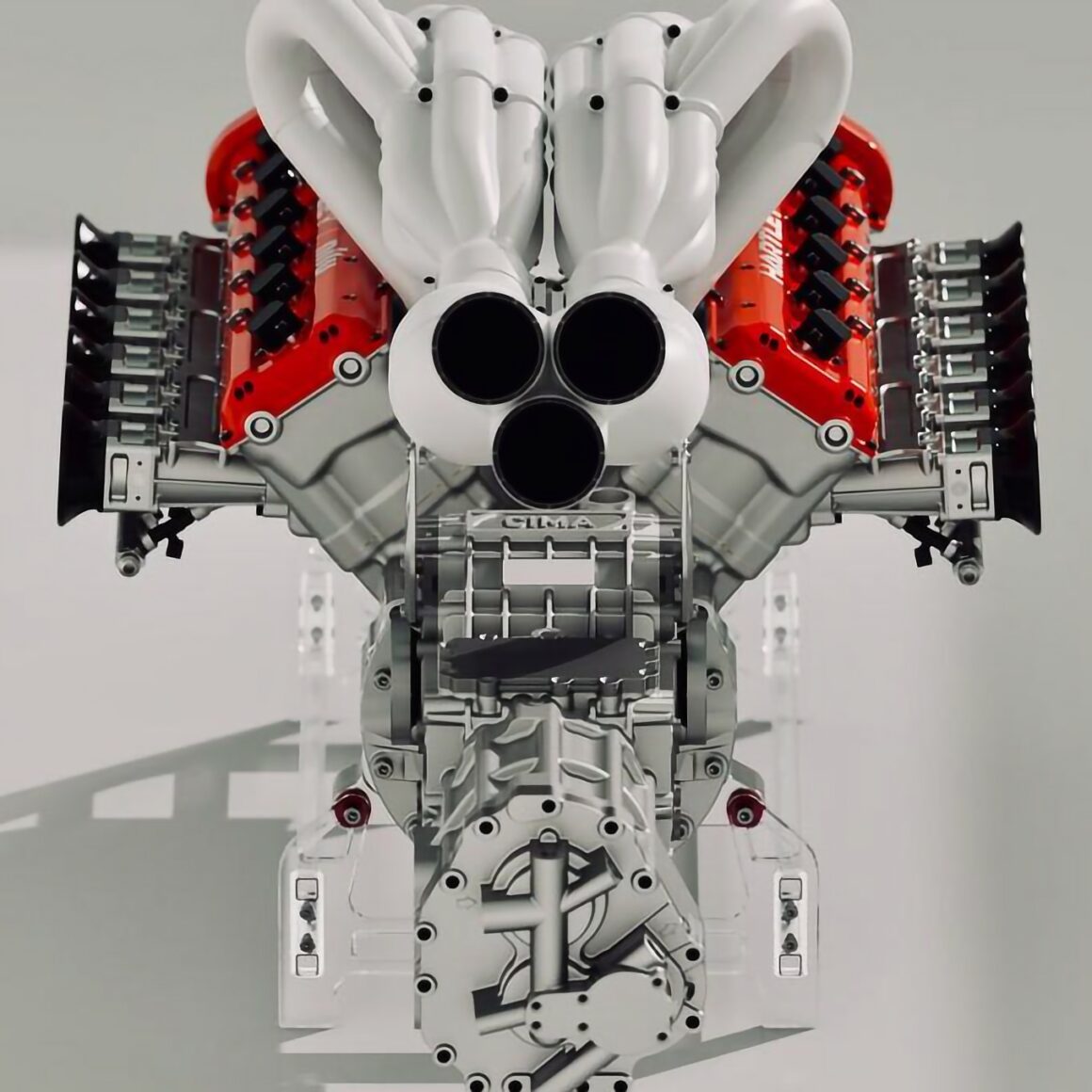 Dans cette configuration, les positions d’échappement et d’admission conventionnelles sont inversées. La configuration offrira des avantages clés en matière d’emballage (sic !), d’extraction de chaleur et d’esthétique. Et cela aurait permis aux étonnants collecteurs d’échappement 12-en-1 “Snakepit” de servir de point culminant unique du design extérieur… A nouveau, tout est fantasmé, rien n’existe qu’en illusionnement… L’ensemble du système d’échappement a été imprimé en 3D en Inconel, cela a permis de réaliser la conception complexe, une autre caractéristique unique si l’on considère ses dimensions, mais ce n’est pas fonctionnel. Couplé à la boîte manuelle CIMA à sept vitesses et logé dans le sous-châssis en alliage d’aluminium recouvert de céramique, le moteur V12 représentera la beauté fonctionnelle à son meilleur… J’en ai été “tout paf !”... Nelson Hartley, fondateur et PDG de Hartley Engines, a déclaré sur une bande enregistrée qu’on m’a fait écouter quasi de force comme étant une preuve magistrale : “Au cours des dernières années, nous avons travaillé discrètement sur la conception et l’agencement d’un moteur hypothétique en nous inspirant des voitures de Formule 1 de la fin des années ’80 et du début des années ’90. Nous nous sommes efforcés d’obtenir le genre d’ingénierie brute, attachante, émotionnelle et parfois un peu folle de ces époques. Avec la liste de souhaits de Sasha pour sa NILU27, nous avons finalement trouvé le projet parfait pour consacrer notre temps et toucher un paquet d’argent”…