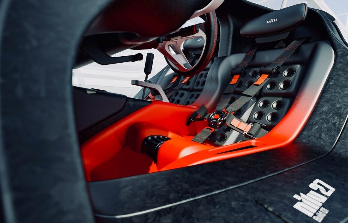 Mais n’existe-t-il pas une volonté de la part des artistes de faire connaître leur art et à le céder par le biais d’échanges financiers ? Surement ! Mais l’artiste qui vend son art est-il un artiste vendu ? Les époux Sasha et Inna Selipanov sont-ils vendus ? Examinons leur création… Le châssis de la NILU27 n’existe pas en tant que chassis classique “à l’ancienne”, c’est une vue de l’esprit… Ici, c’est mieux qu’une vision, c’est une monocoque en fibre de carbone rendue rigide par un sous-châssis de tubes en alliage d’aluminium soudés entre-eux “à l’ancienne”. Développé en interne et contrairement aux sous-châssis composites “à la mode”, le designer de la NILU27 a délibérément choisi une approche “tubesque” pour prétendre améliorer l’accès aux composants de la transmission tout en facilitant sans effort l’extraction de la chaleur et la célébration de l’esthétique mécanique. Faudrait-il enlever la carrosserie…. Ahhhhhhh ! Oui… Si non comme accéder à tout ? Personne ne ma répondu, si ce n’est me dire que la NILU27 a été conçue pour offrir des angles de vision parfaits avec une ergonomie et une sécurité idéales… Ok… Mais ma réflexion dérangeante n’a pas reçu de réponses… Le designer m’a par contre “bassiné” les oreilles en soutenant qu’il a été en mesure d’obtenir une ligne de toit incroyablement basse et des dimensions compactes de l’habitacle sans sacrifier le confort…. Ok… Ok… La NILU27 peut accueillir deux adultes dans une disposition traditionnelle côte à côte, avec une entrée et une sortie rendues possibles par des portes papillon…