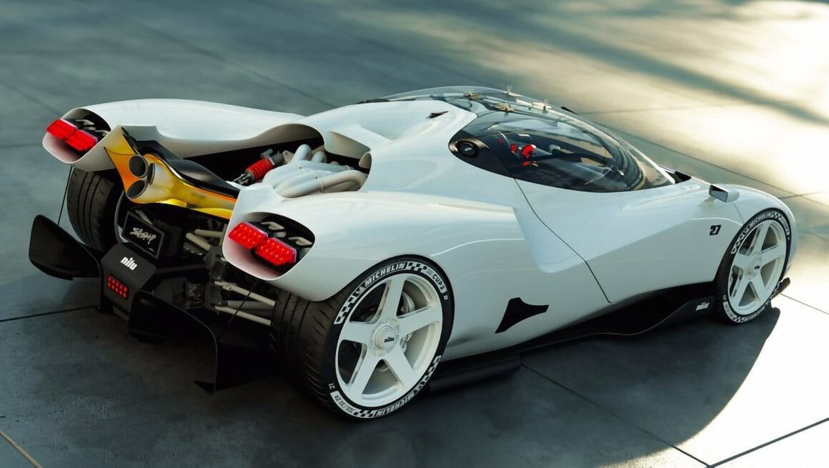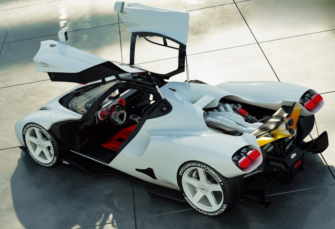 Ne vous y trompez pas ; il ne s’agit pas d’un moteur OEM d’un autre fabricant converti au “Hot V”… Il s’agit d’un monstre imaginaire sur mesure, de gros calibre et à course courte réalisé en 3D non réel mais en donnant l’illusion… Il est donc fictivement doté de cames agressives, d’un débit de port fictivement agressif, de composants légers et de matériaux exotiques imaginaires pour avoir des sueurs froides à chaque fois que le V12 démarrera dans la tête et tournera à vide dans une autre vie… Il est juste pour moi de tapoter (d’écrire) que maintenant que je suis informé de la non réalité de tout ce souk, je suis très enthousiaste et heureux que Sacha soit Russe et pas Ukrainien… Toujours dans la fantasmagorie, son on hypercar NILU27 utilisera une suspension à double triangulation visible de l’arrière… C’est encore des histoires qui contribuent aux caractéristiques de manipulations exceptionnellement précises façon KGB. Un ensemble de pneus Michelin Pilot Sport Cup 2 R a été monté, spécifié à 265/35 R20 à l’avant et 325/30 R21 à l’arrière. Ils chaussent des jantes “Nilu27Centerlock” de 10x20po et 13×21 po, qui ont été conçues en interne avec des détails légers complexes pour réduire le poids non suspendu. Elles ont été produites par AppTech en Italie. L’équipement de freinage en carbone-céramique provient de Brembo. Les étriers BM sont montés à l’avant et à l’arrière dans une finition blanche personnalisée. Ils offriront des performances exceptionnelles et une résistance à la décoloration.