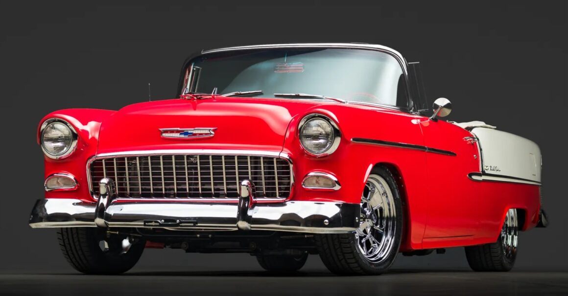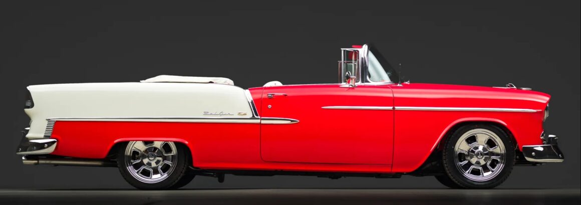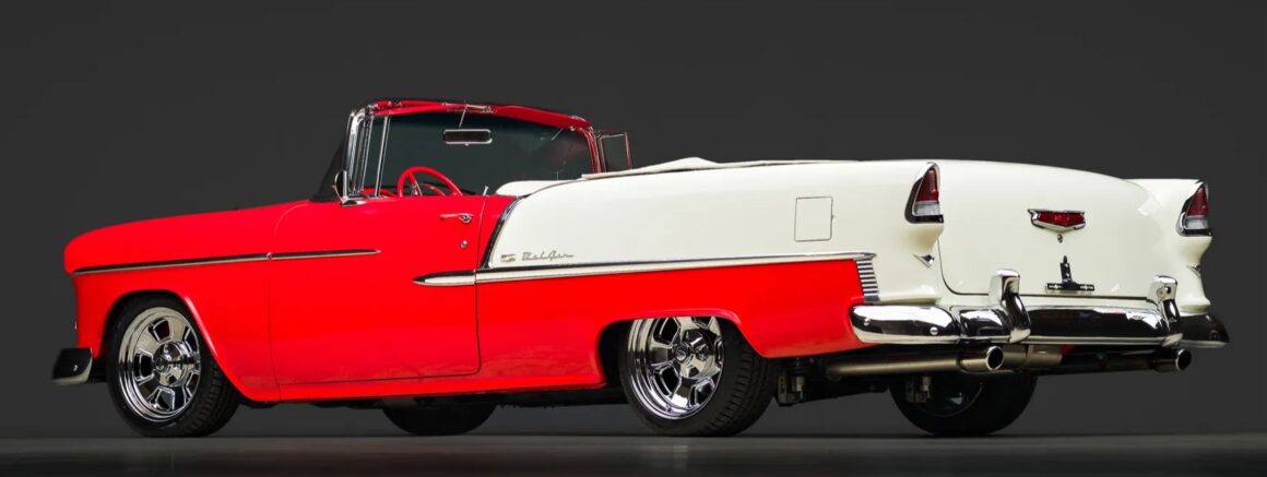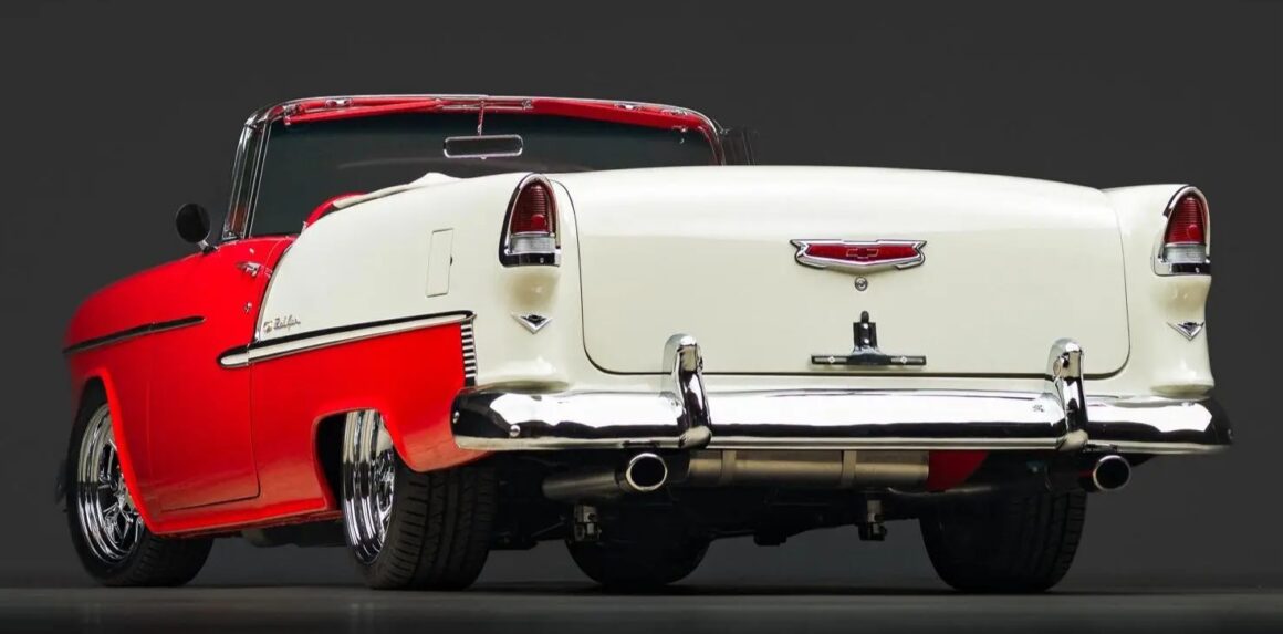 Ce cabriolet Chevrolet Bel Air de 1955 a été précédemment modifié et remis à neuf par l’ancien joueur de la NBA Steve Blake et son père en 2004. Les travaux comprenaient la finition de la carrosserie en rouge et blanc, le rembourrage de l’habitacle, l’installation d’un châssis Morrison GT Sport et l’installation d’un V8 LS1 de 5,7 litres ainsi qu’une transmission automatique à quatre vitesses avec overdrive.