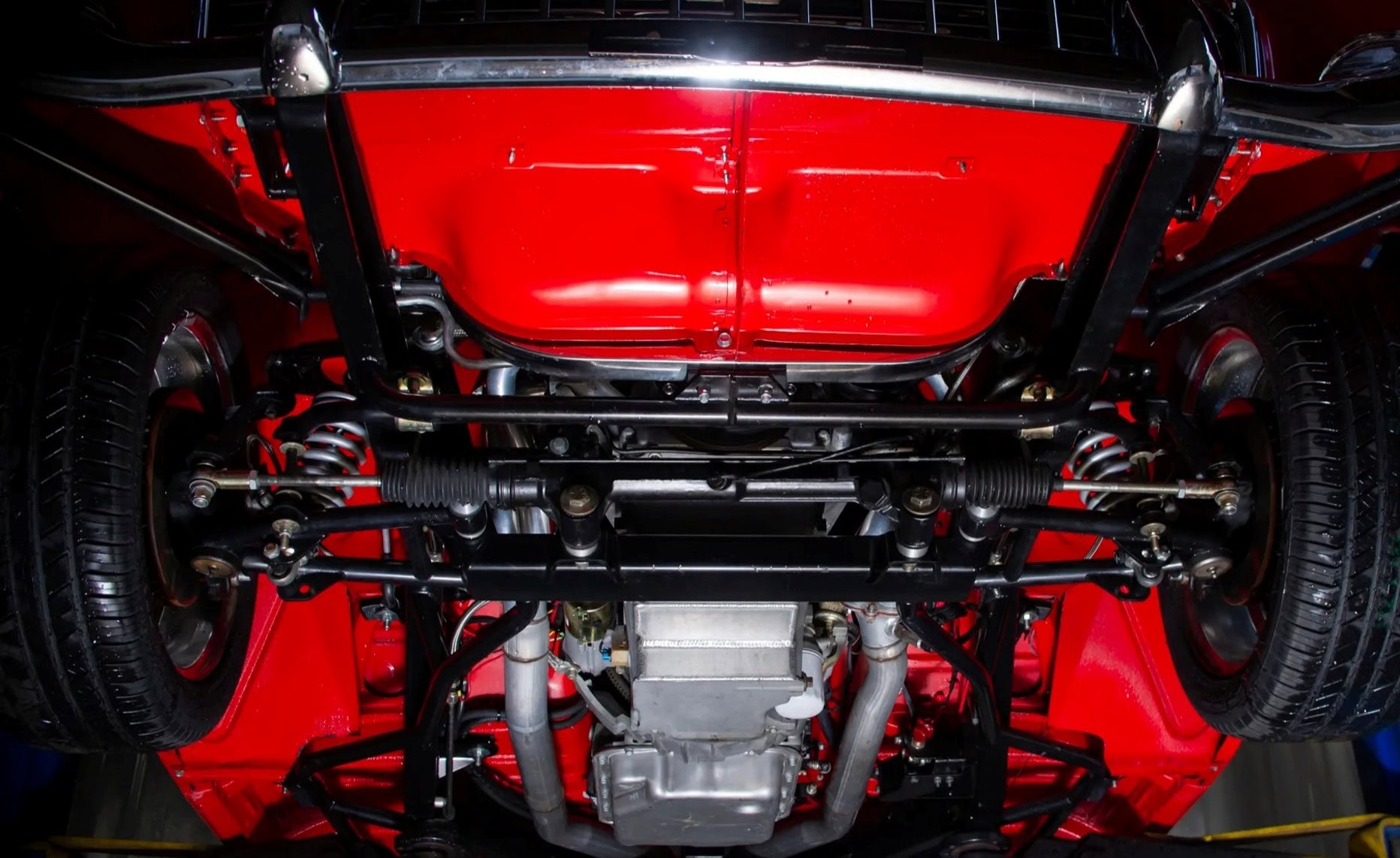 Le pare-feu a été modifié et rasé, et l’équipement supplémentaire comprend un alternateur et un compresseur de climatisation chromés ainsi qu’un radiateur en aluminium avec un ventilateur électrique. L’entretien en novembre 2022 a consisté à effectuer une vidange d’huile et à rincer le liquide. La puissance est transmise aux roues arrière par l’intermédiaire d’une transmission automatique à quatre vitesses avec surmultiplication.